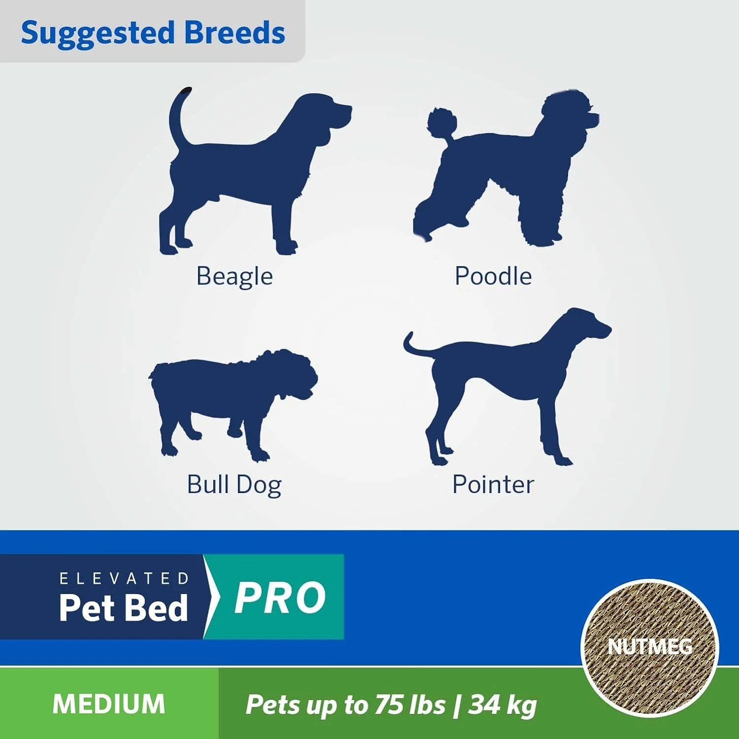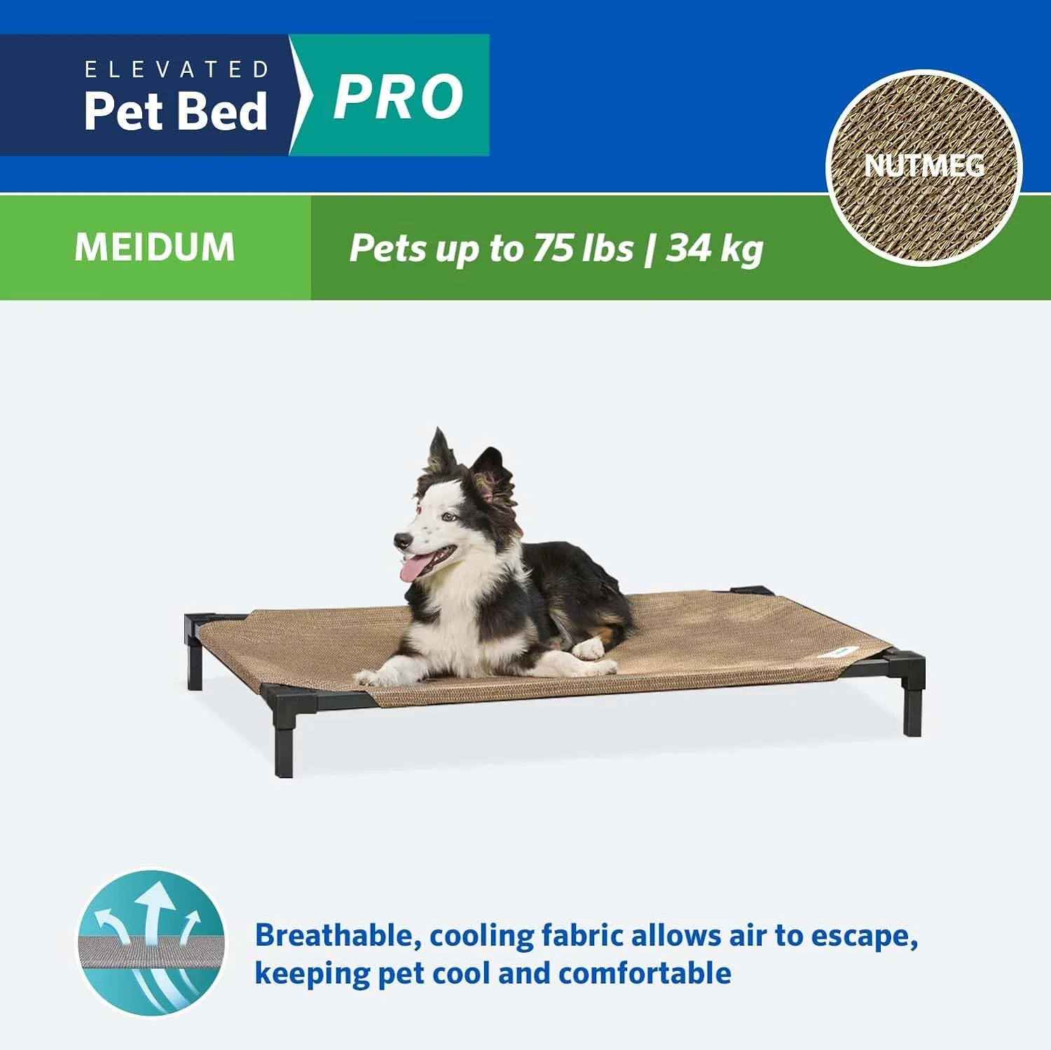 Cooling Elevated Dog Bed PRO Medium, Fits In 42In Crate, Easy Assembly Frame, Nutmeg