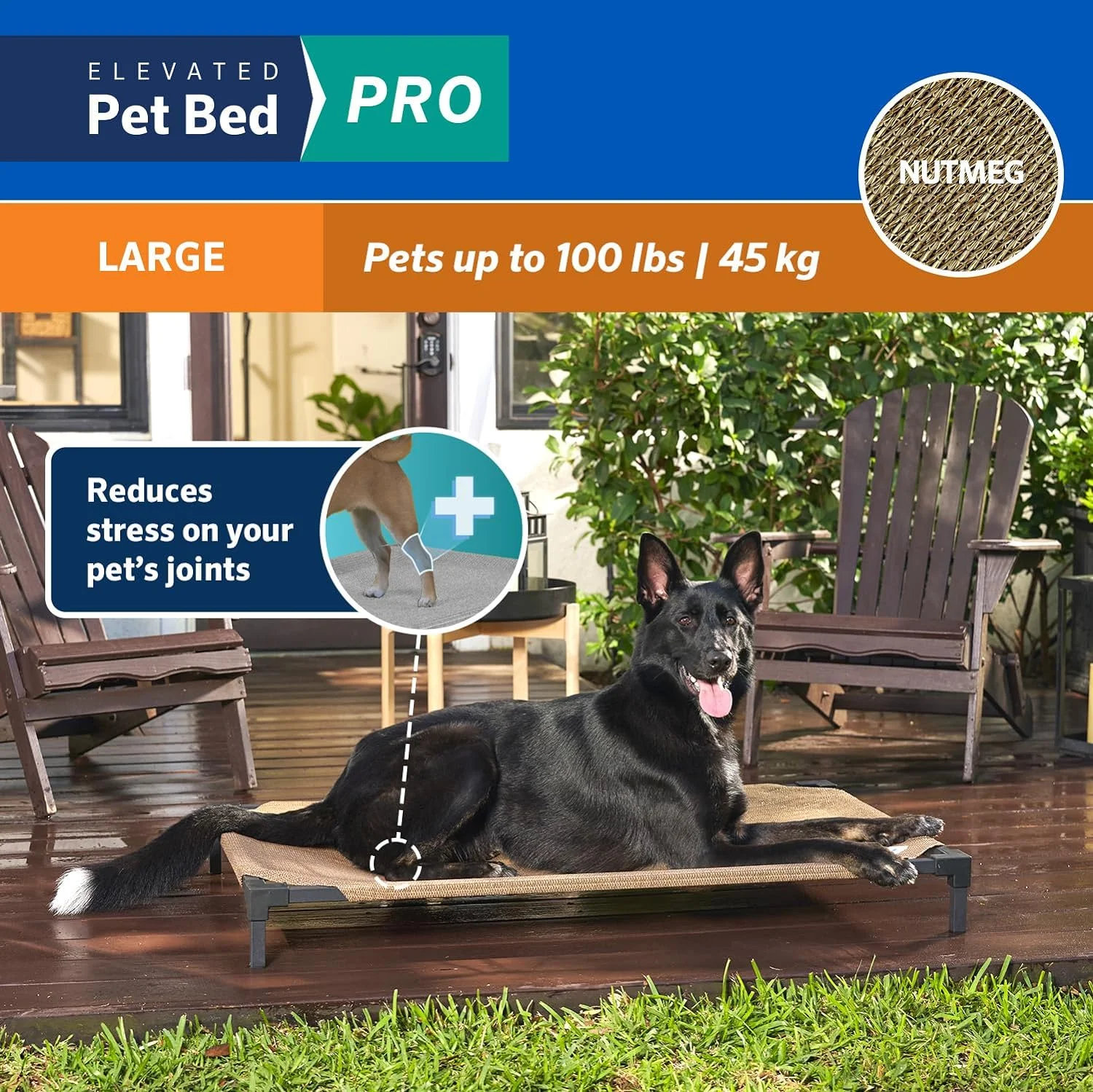 Cooling Elevated Dog Bed PRO Large, Fits In 48In Crate, Easy Assembly Frame, Nutmeg
