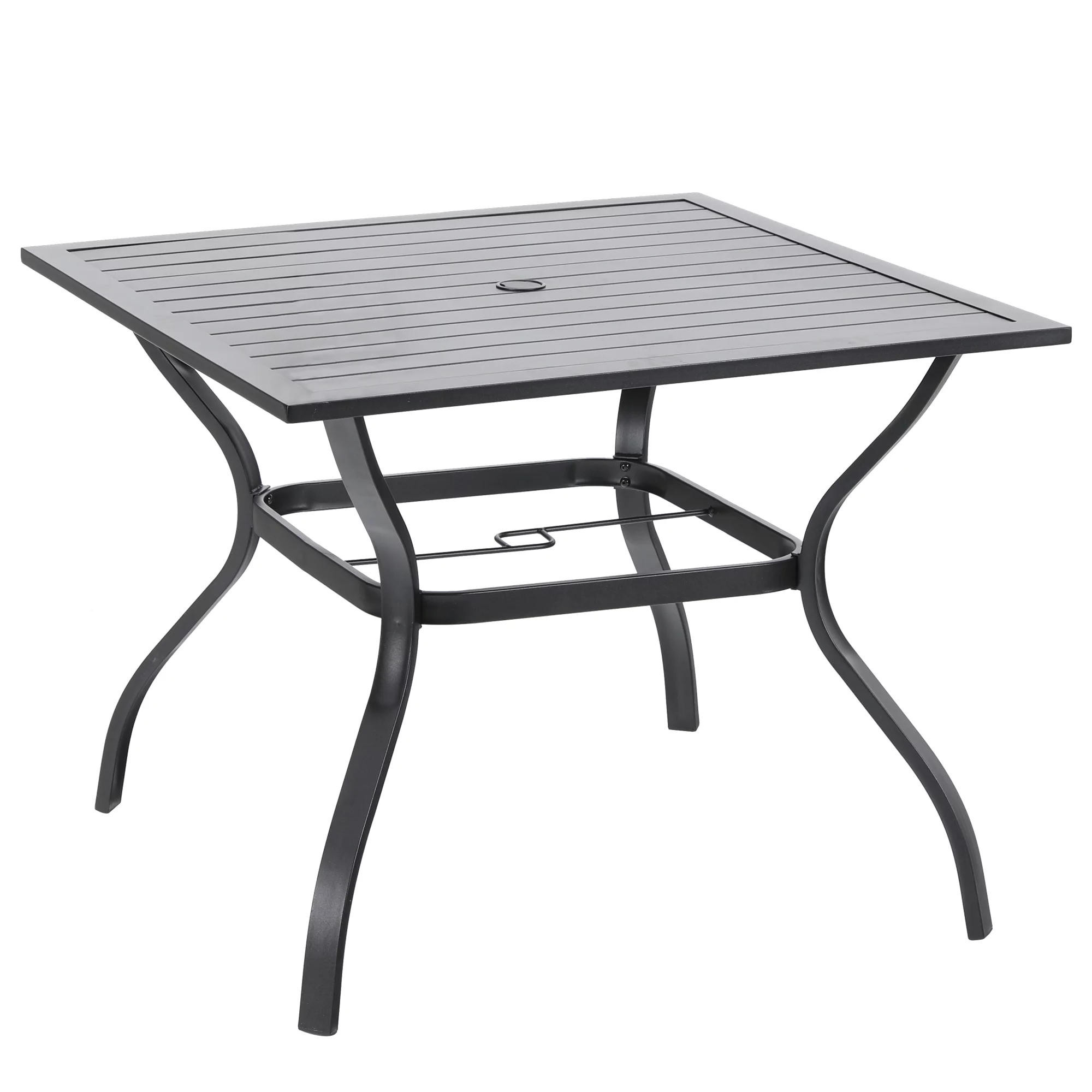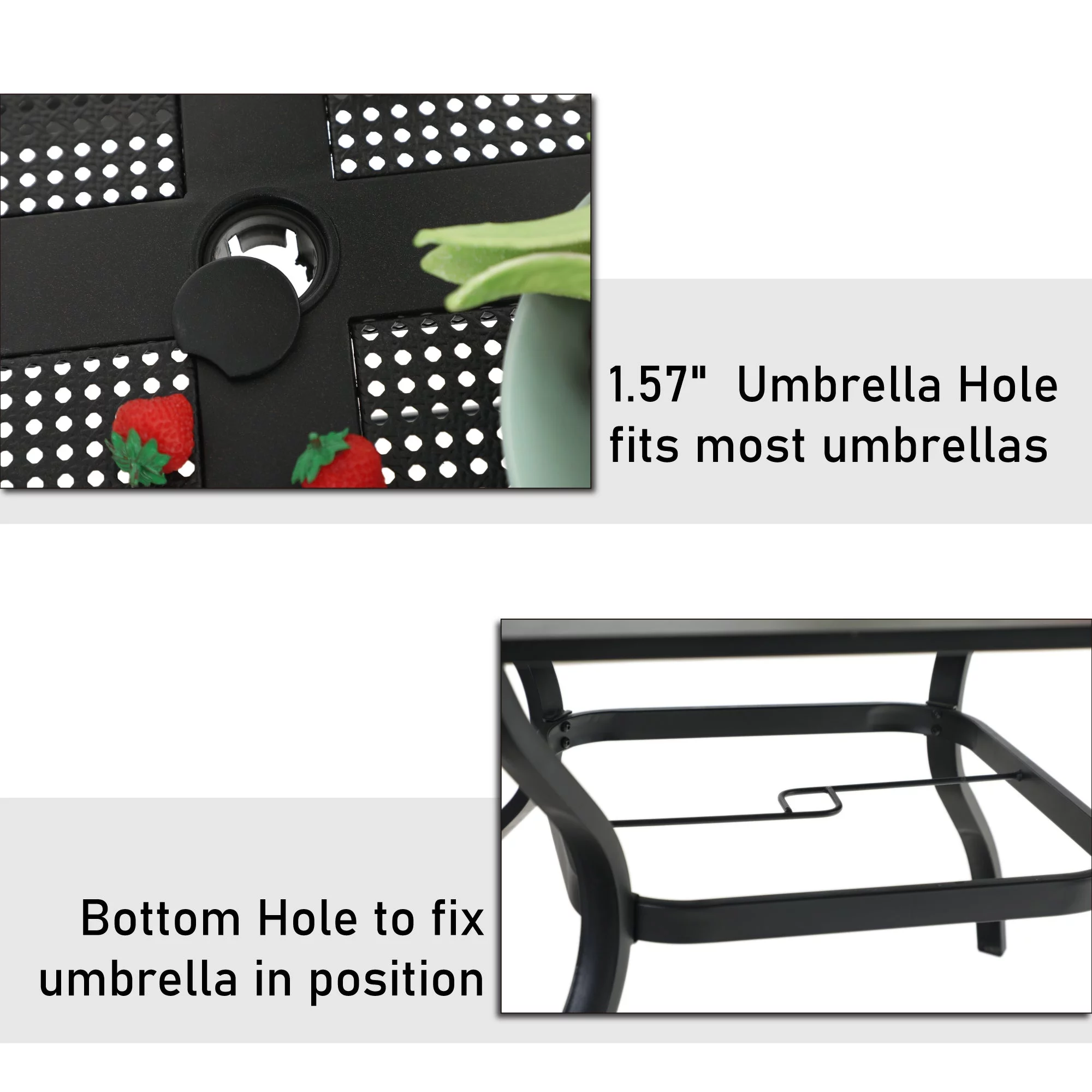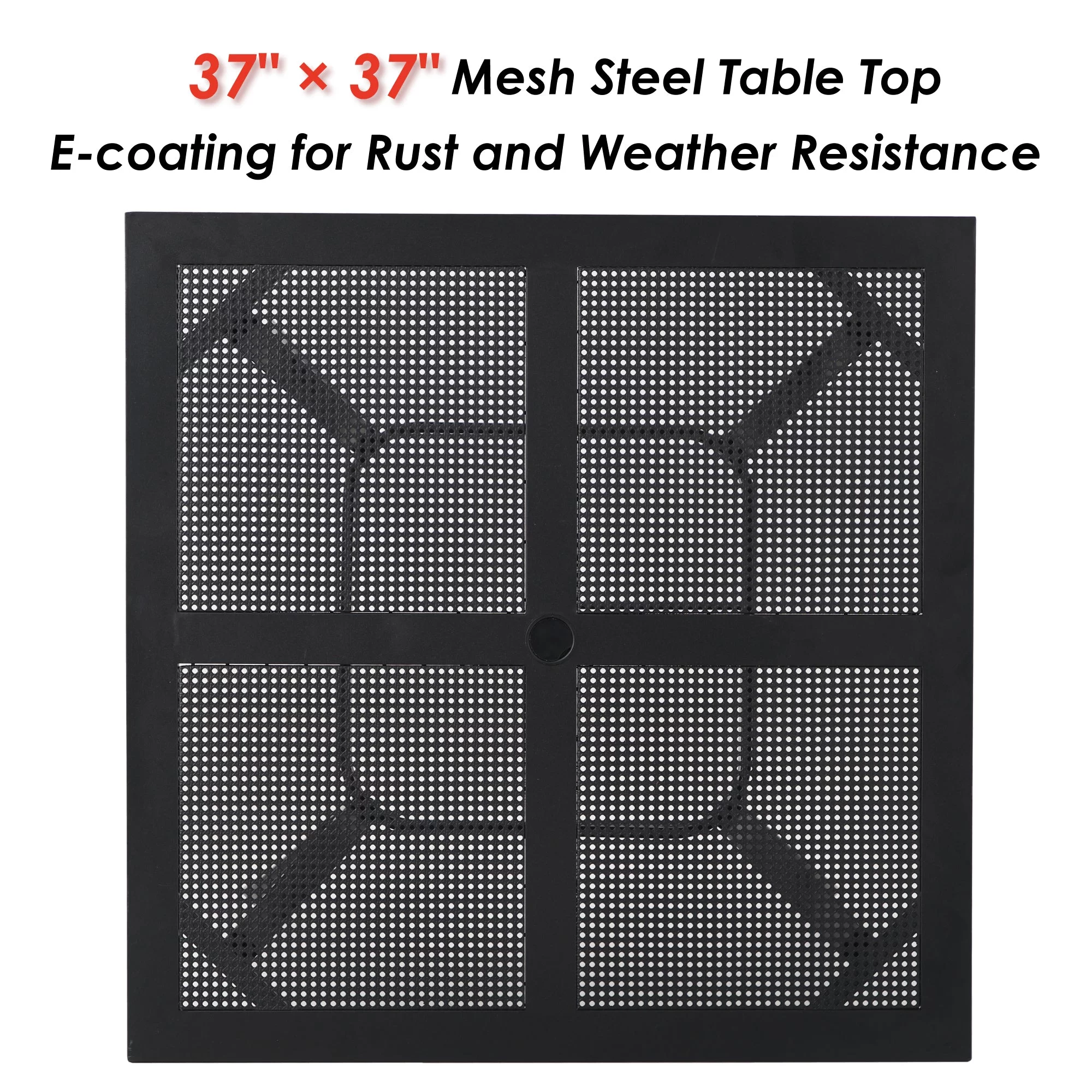 Alpha Joy 9 Piece Outdoor Metal Patio Dining Set 60" Square Table and Chairs Furniture Set for 8, Black