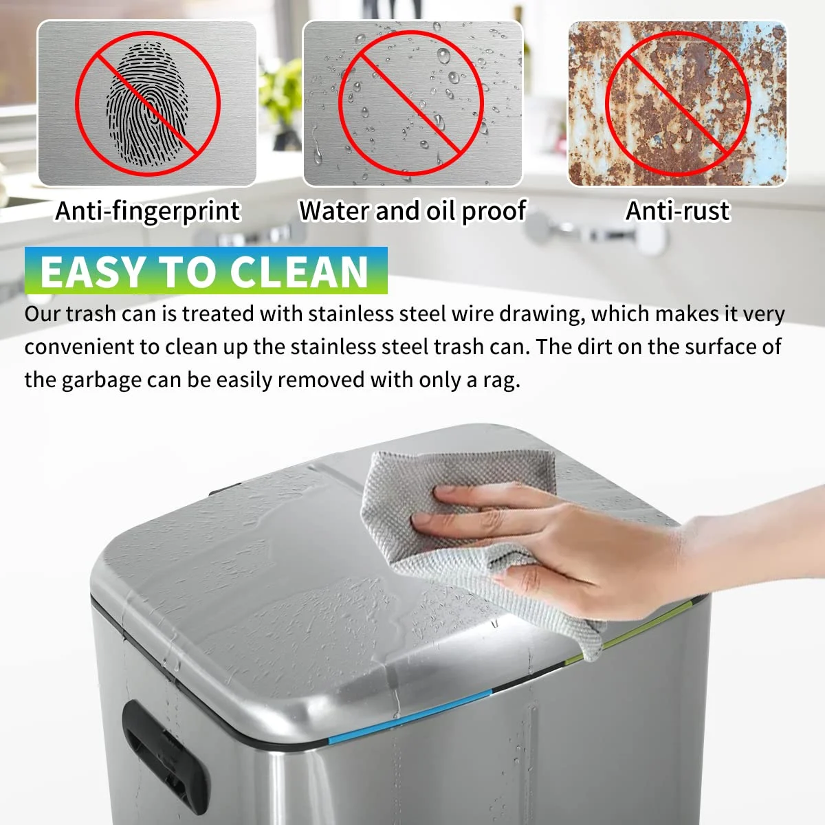 10 Liter / 2.6 Gallon Stainless Steel Bathroom Slim Profile Trash Can, Brushed Stainless Steel
