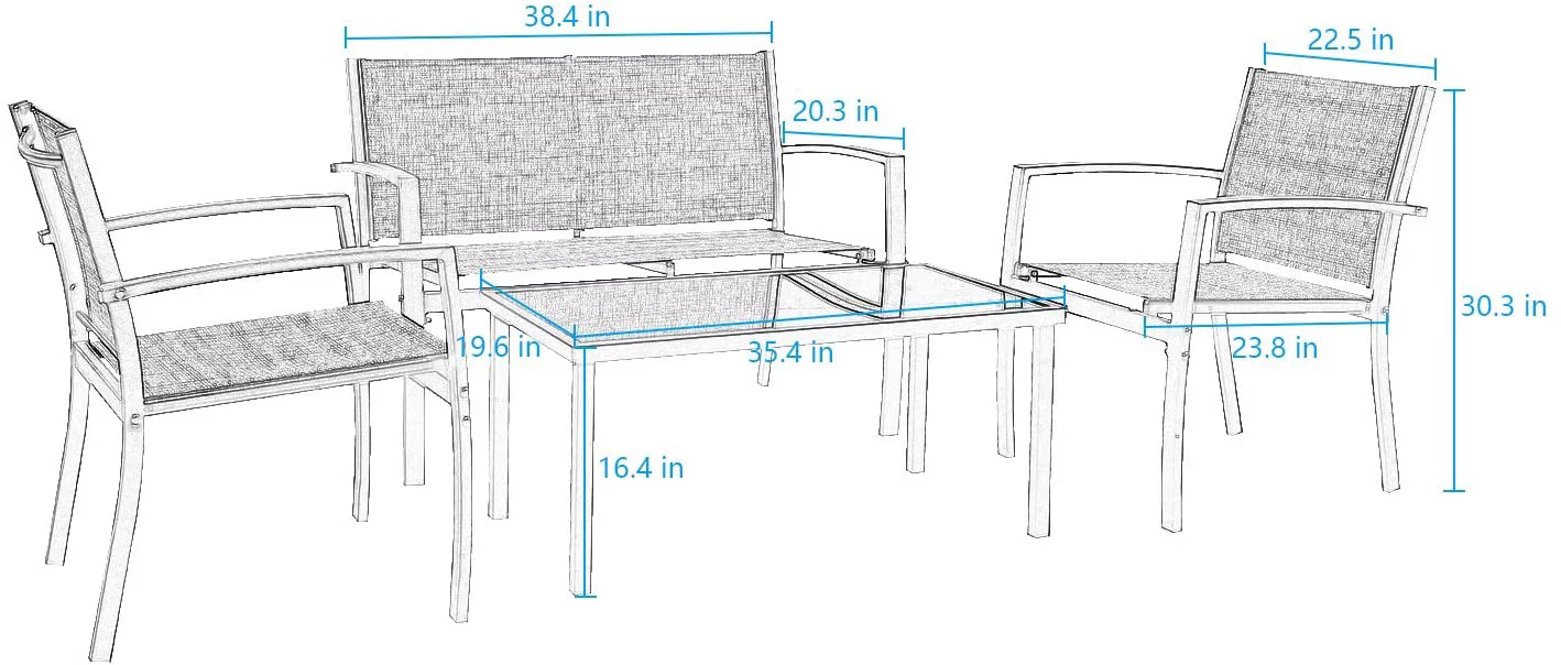 Vineego 4 Pieces Patio Furniture Outdoor furniture Modern Conversation Set Black Bistro Set, Beige, Steel