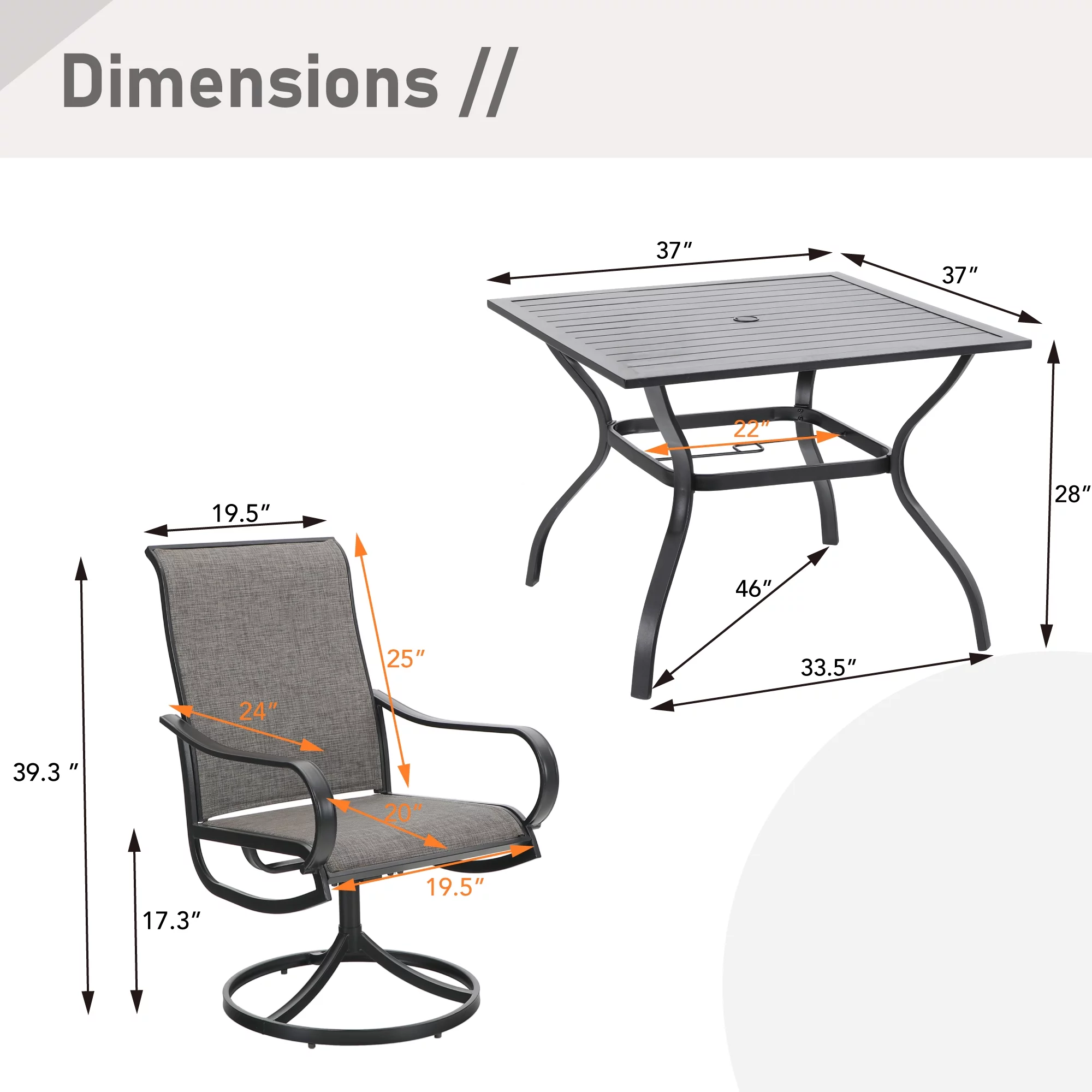 Sophia & William 5 Pieces Metal Patio Dining Set Swivel Padded Chairs and Table Set