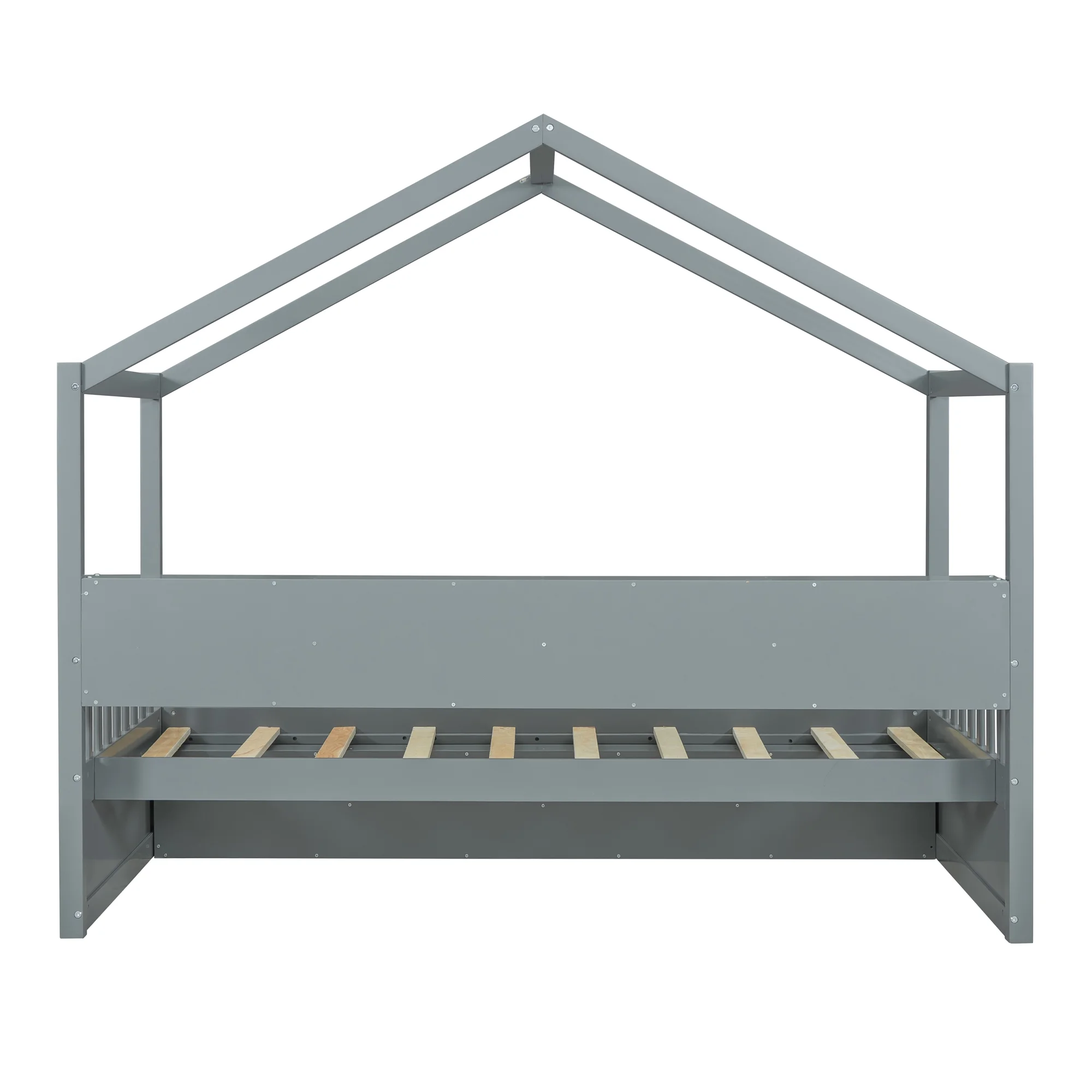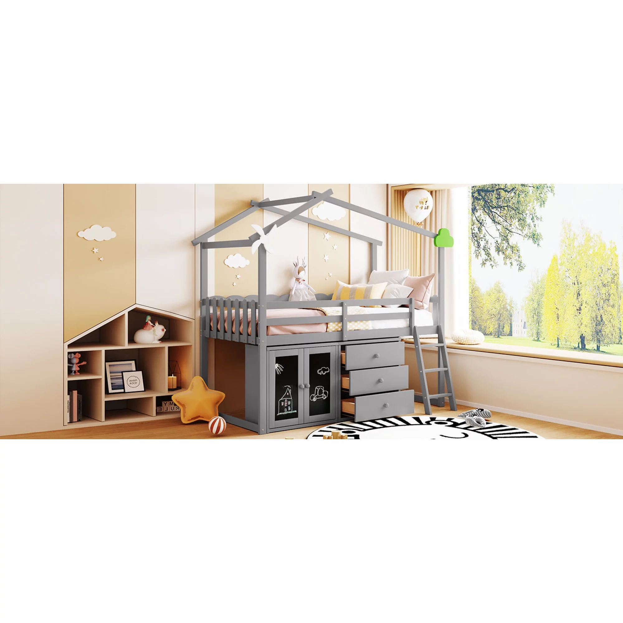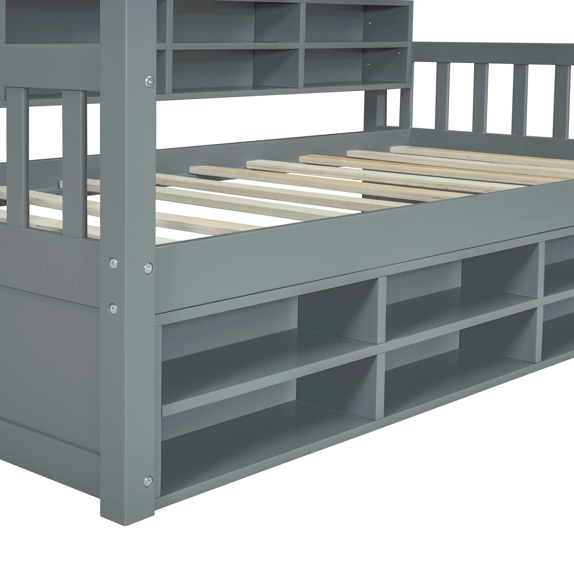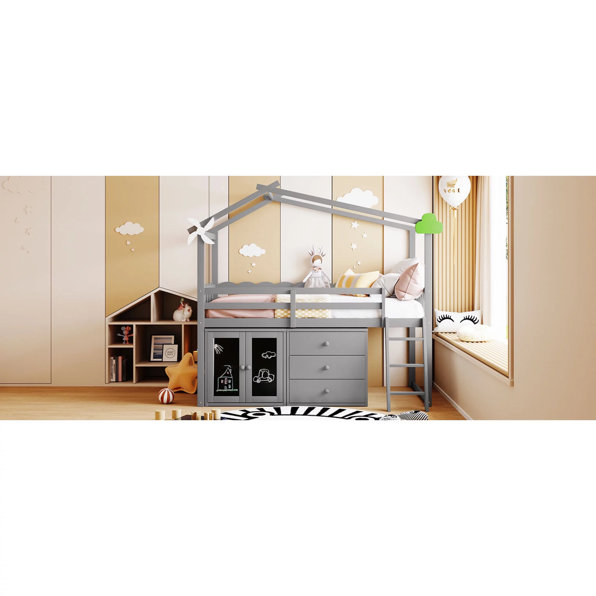 CoSoTower Twin Size Wooden House Bed with Shelves and A Mini-Cabinet, Gray