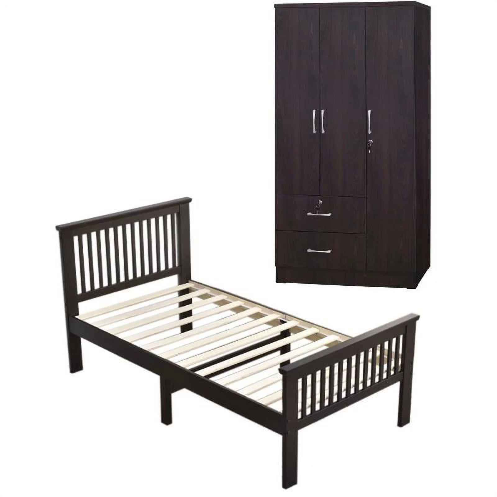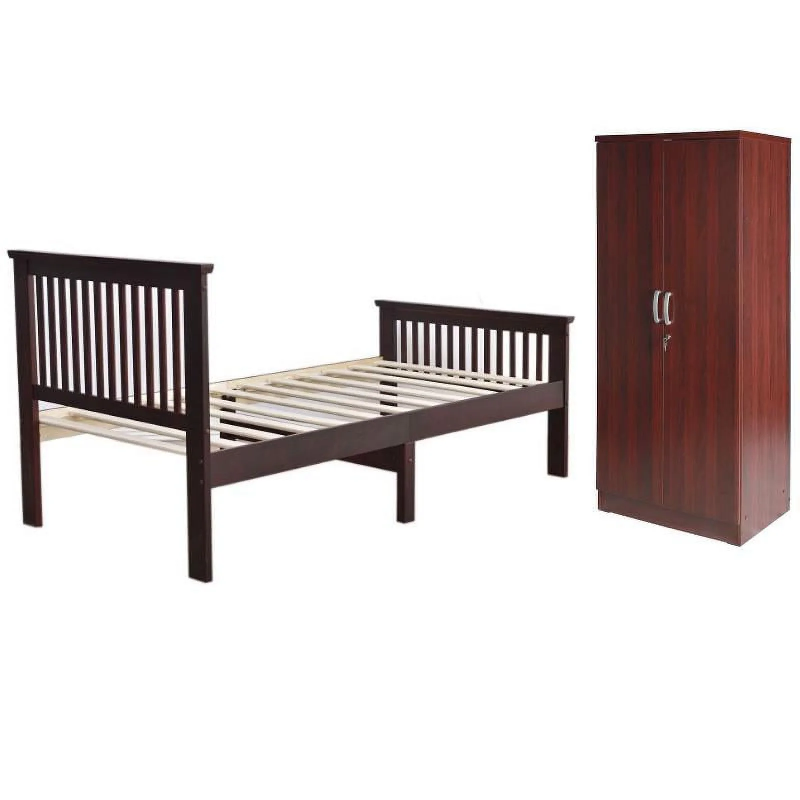 Home Square 2-Piece Set with Armoire Wardrobe Cabinet and Platform Pine Twin Bed