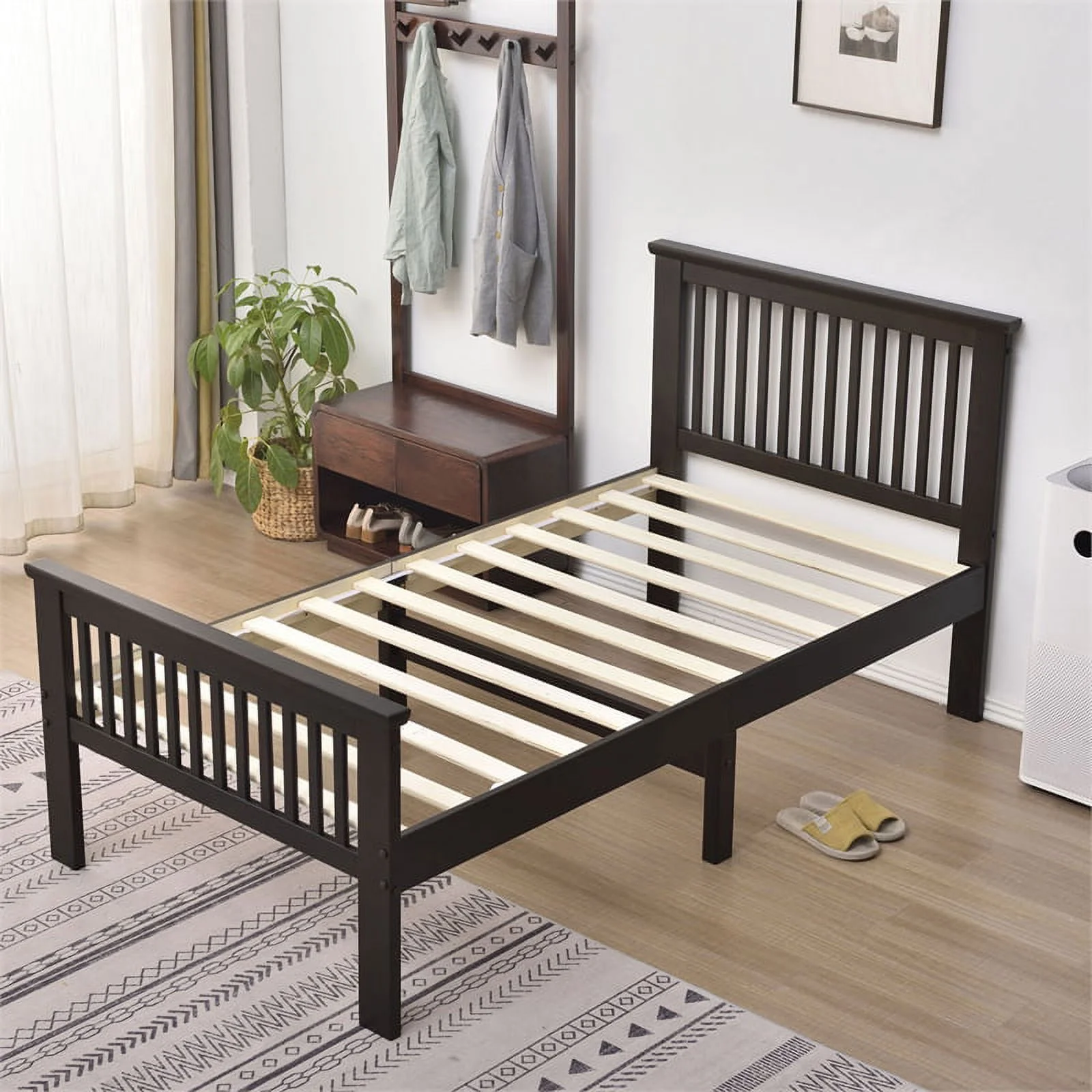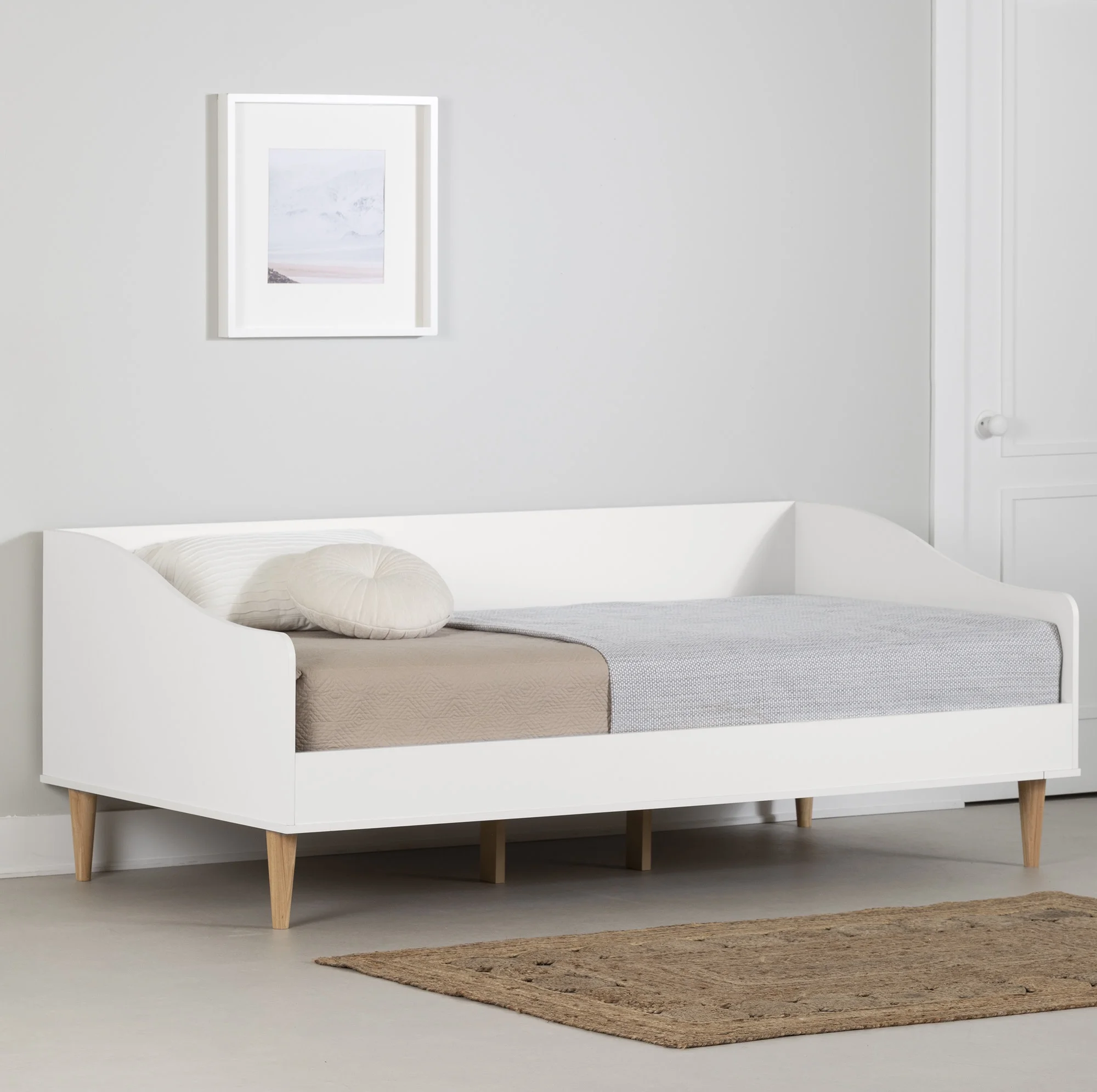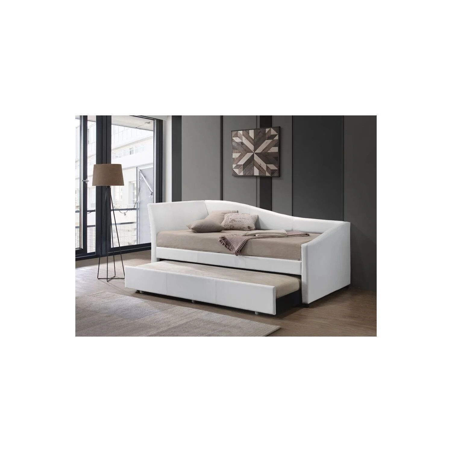Unbranded Full size Daybed, Wood Slat Support, Espresso / Grey / White White Antique