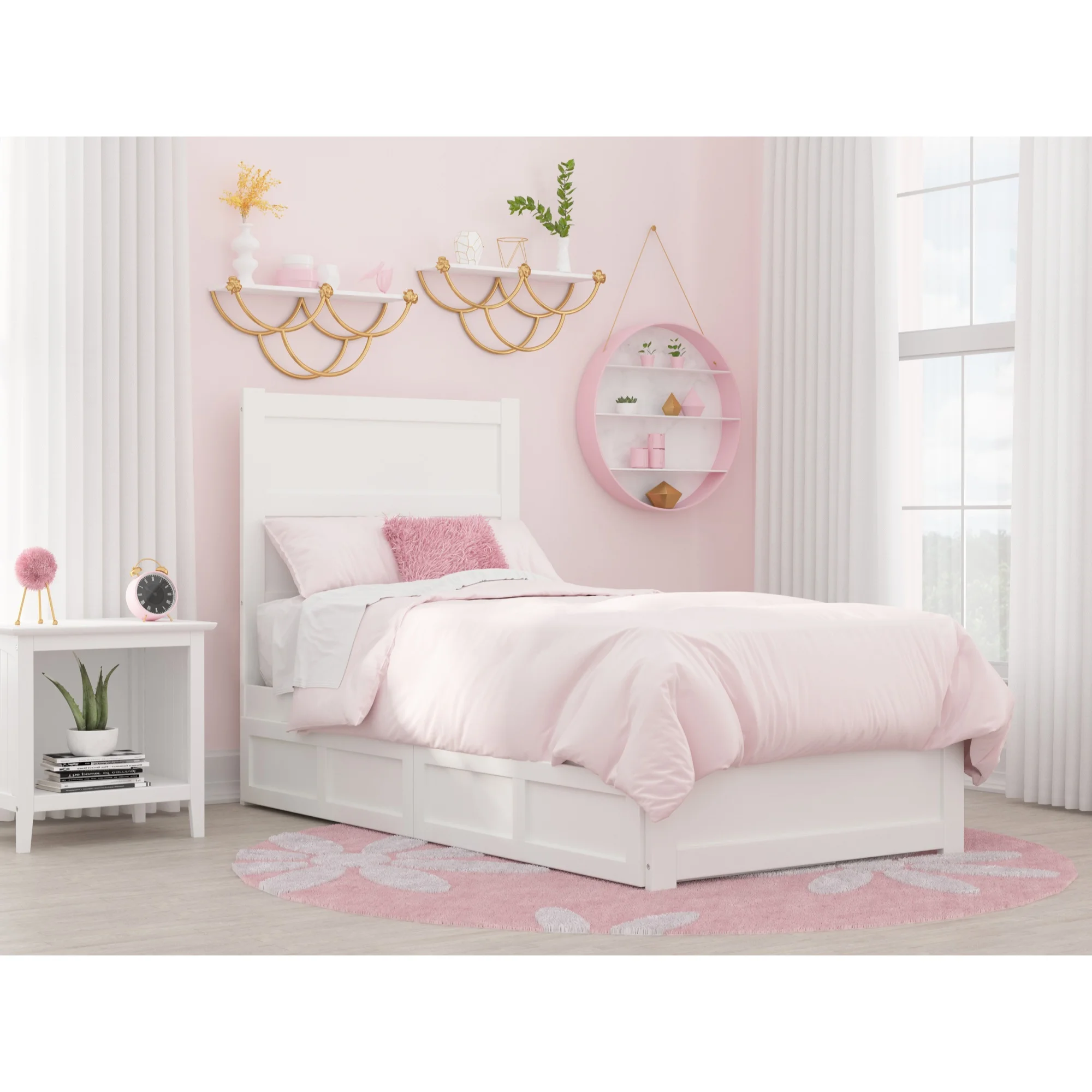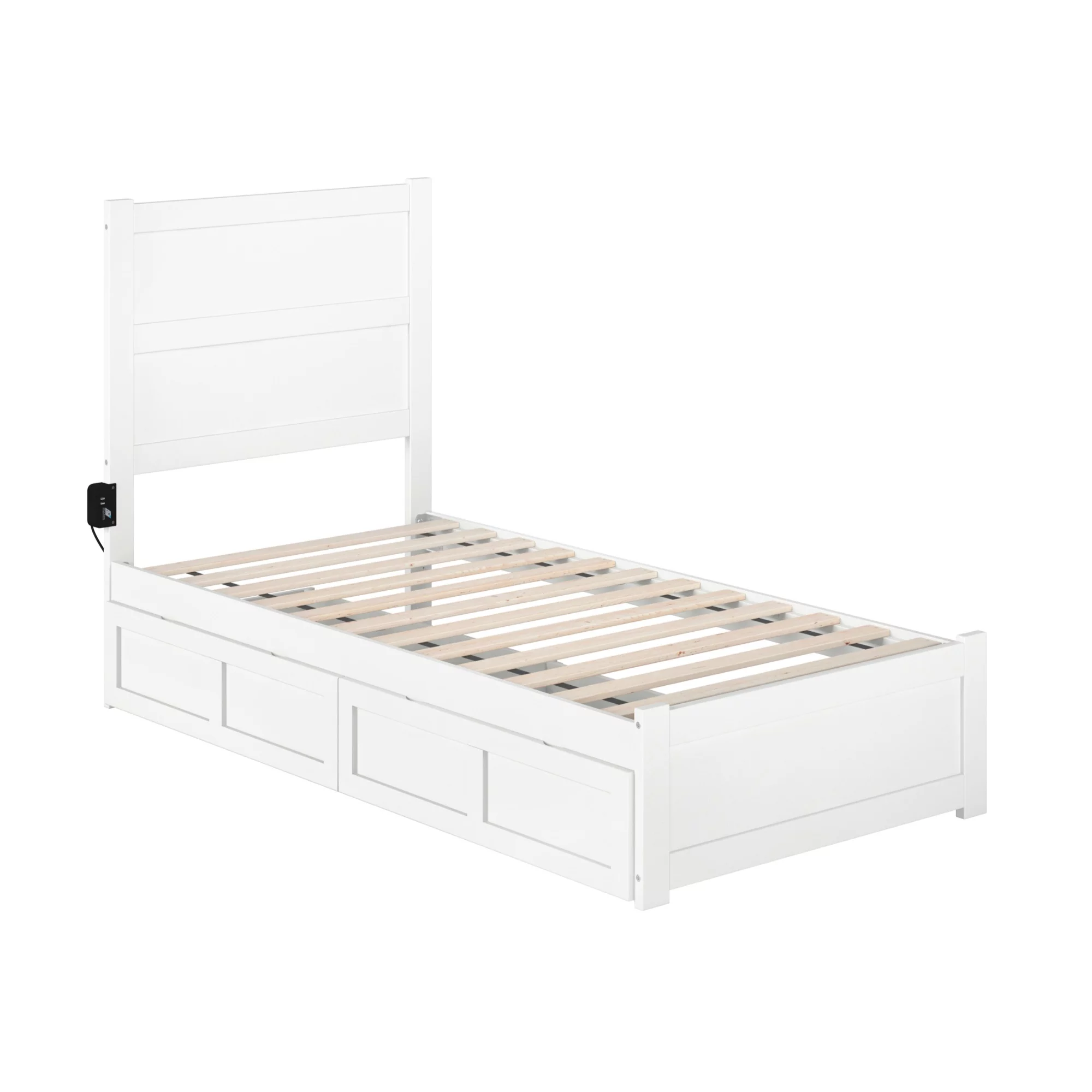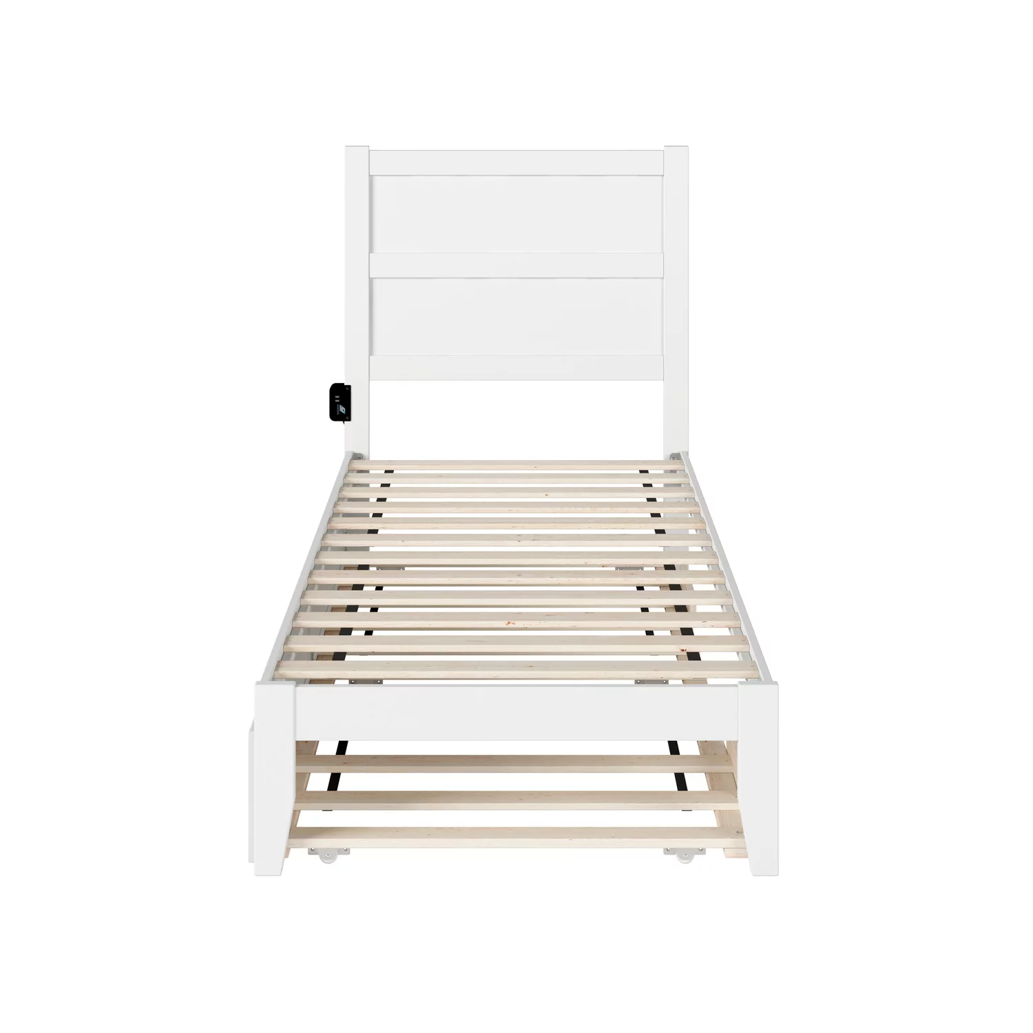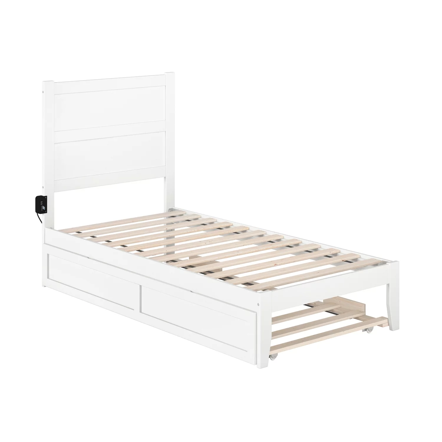 AFI NoHo Coastal Solid Wood Twin Bed with Twin Trundle and USB Charger in White