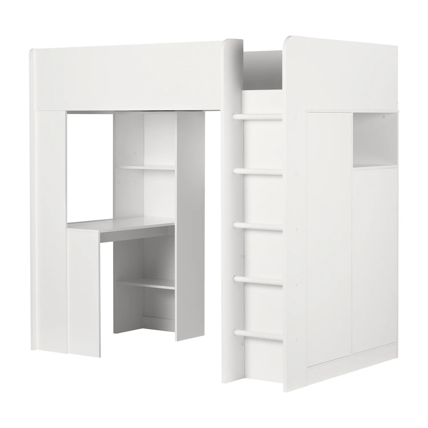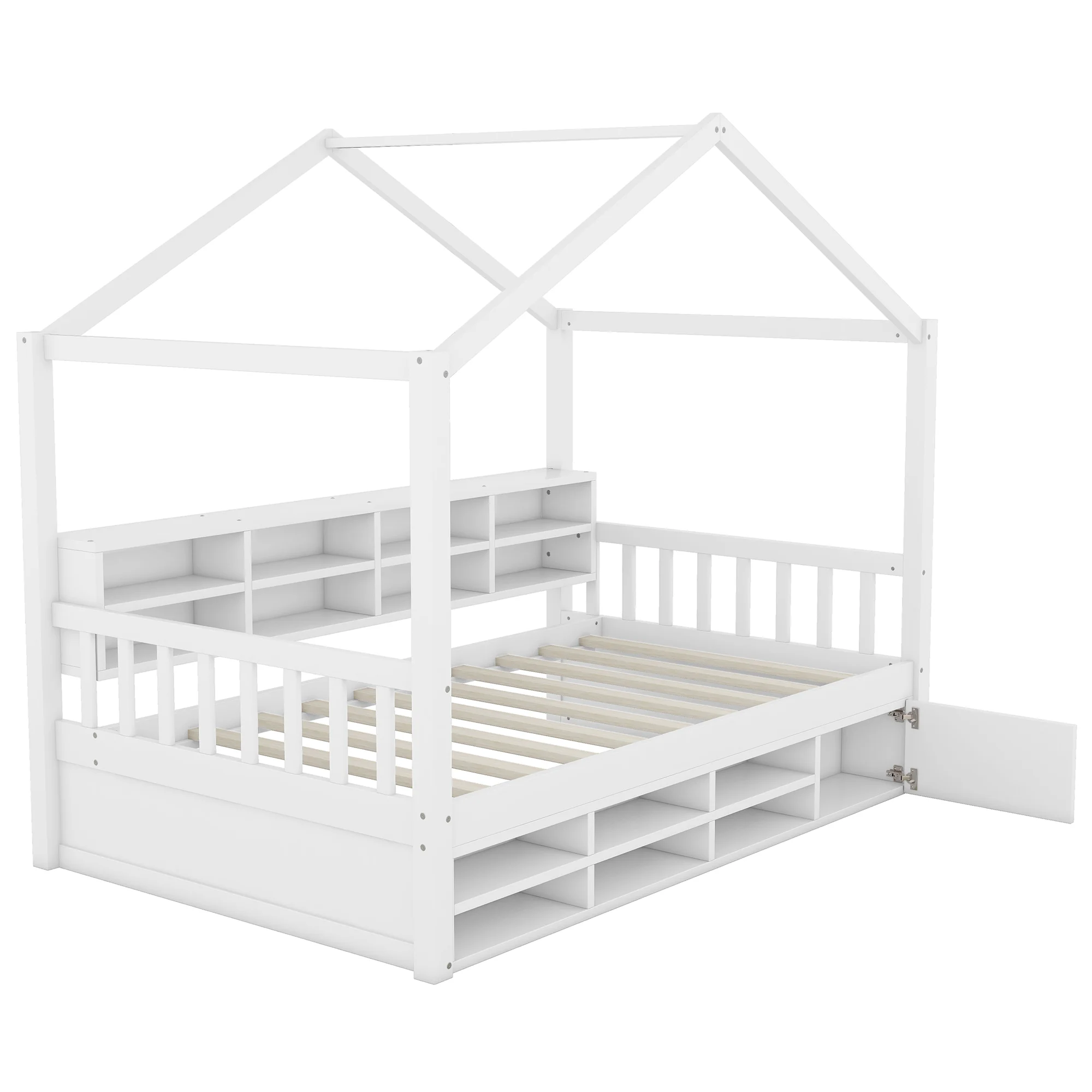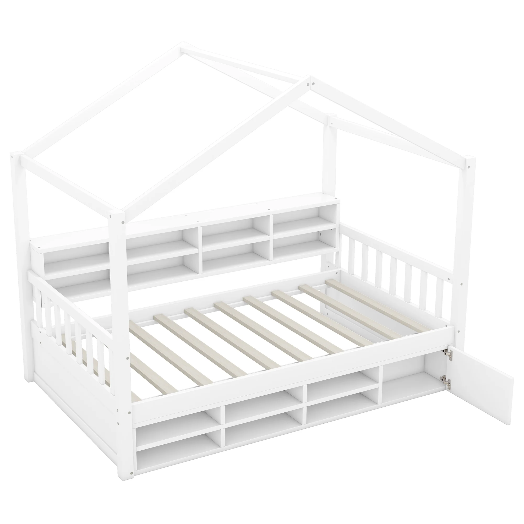 CoSoTower Twin Size Wooden House Bed with Shelves and A Mini-Cabinet, White