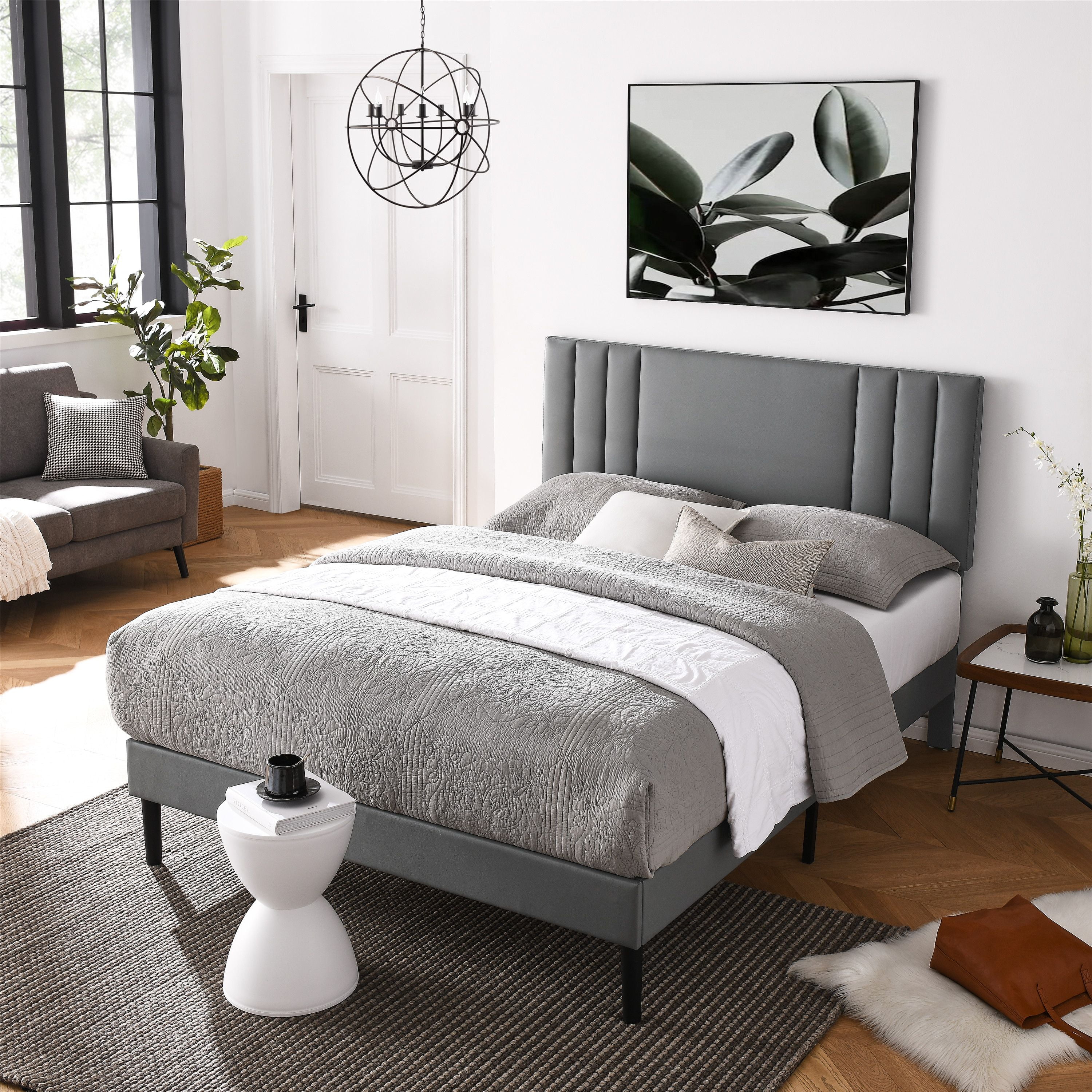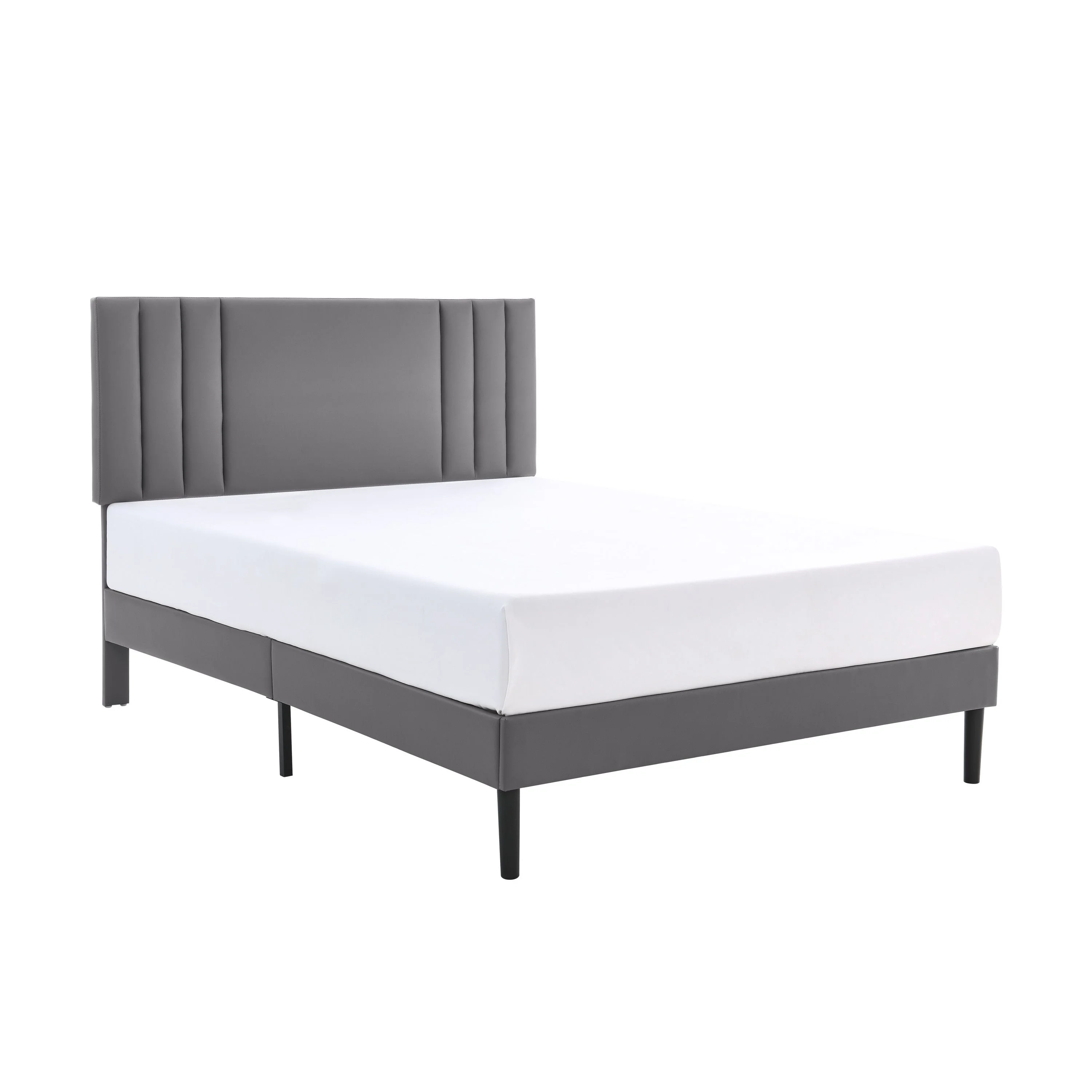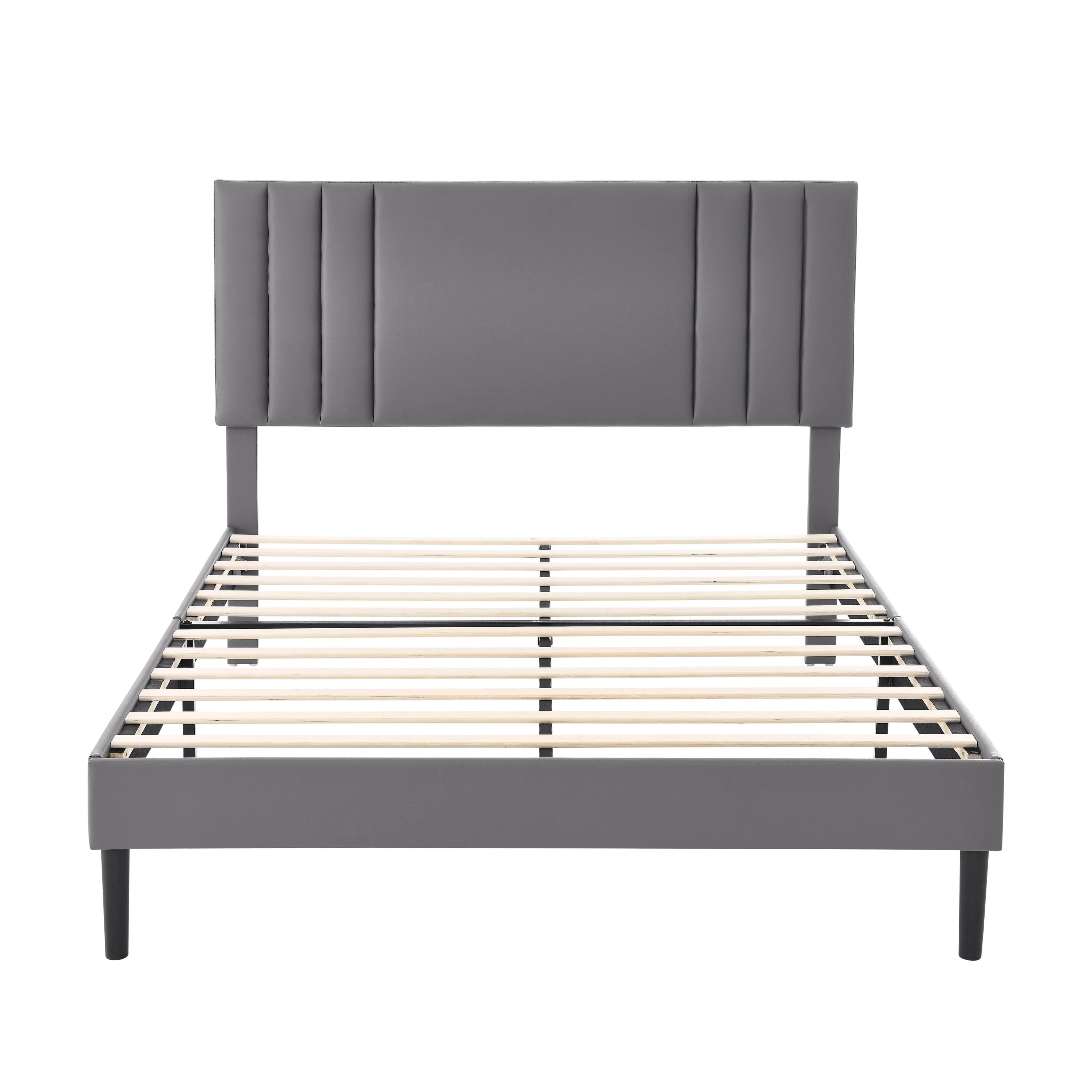 Javlergo Upholstered Platform Bed Frame with Nailhead Trimmed Adjustable Height Headboard Grey - Queen