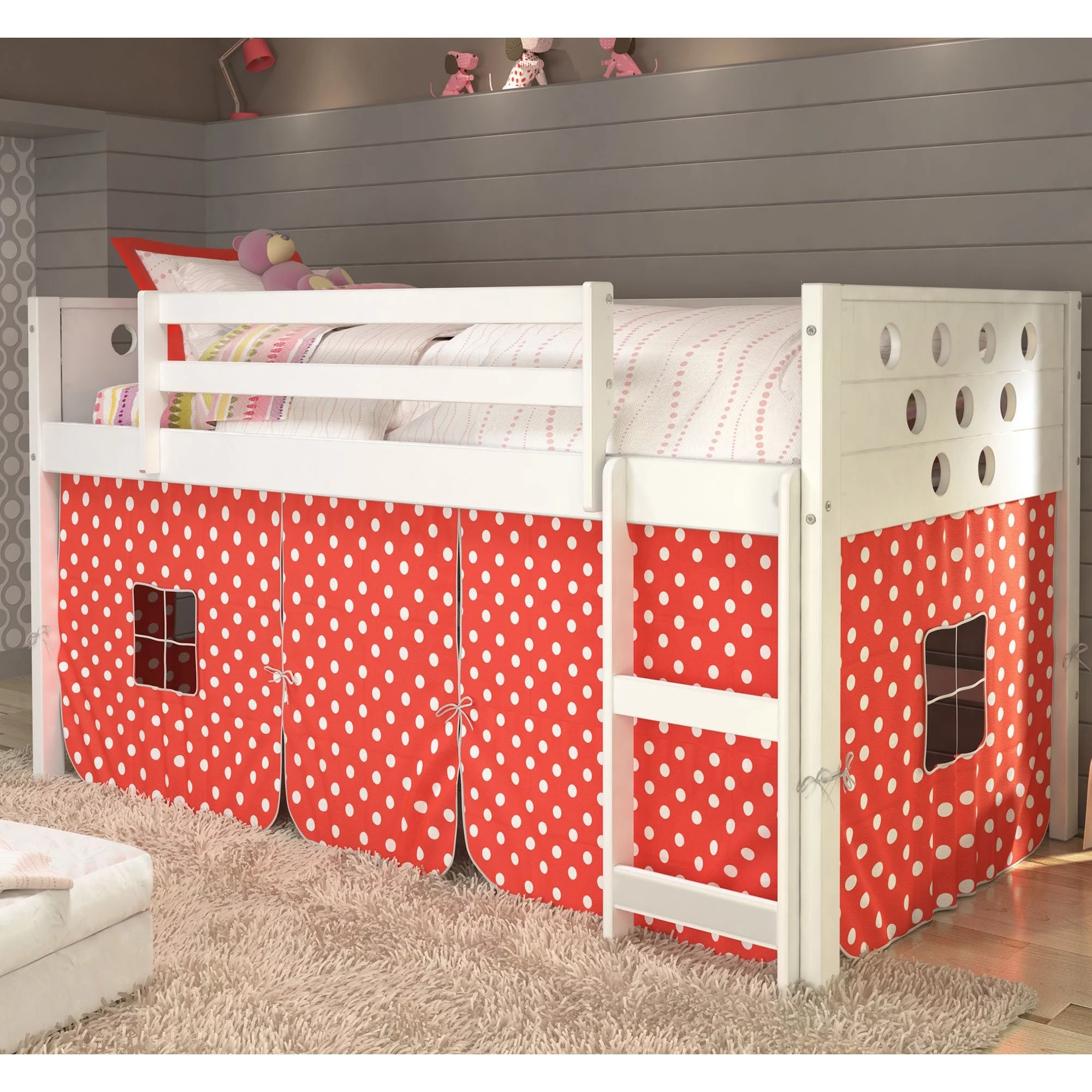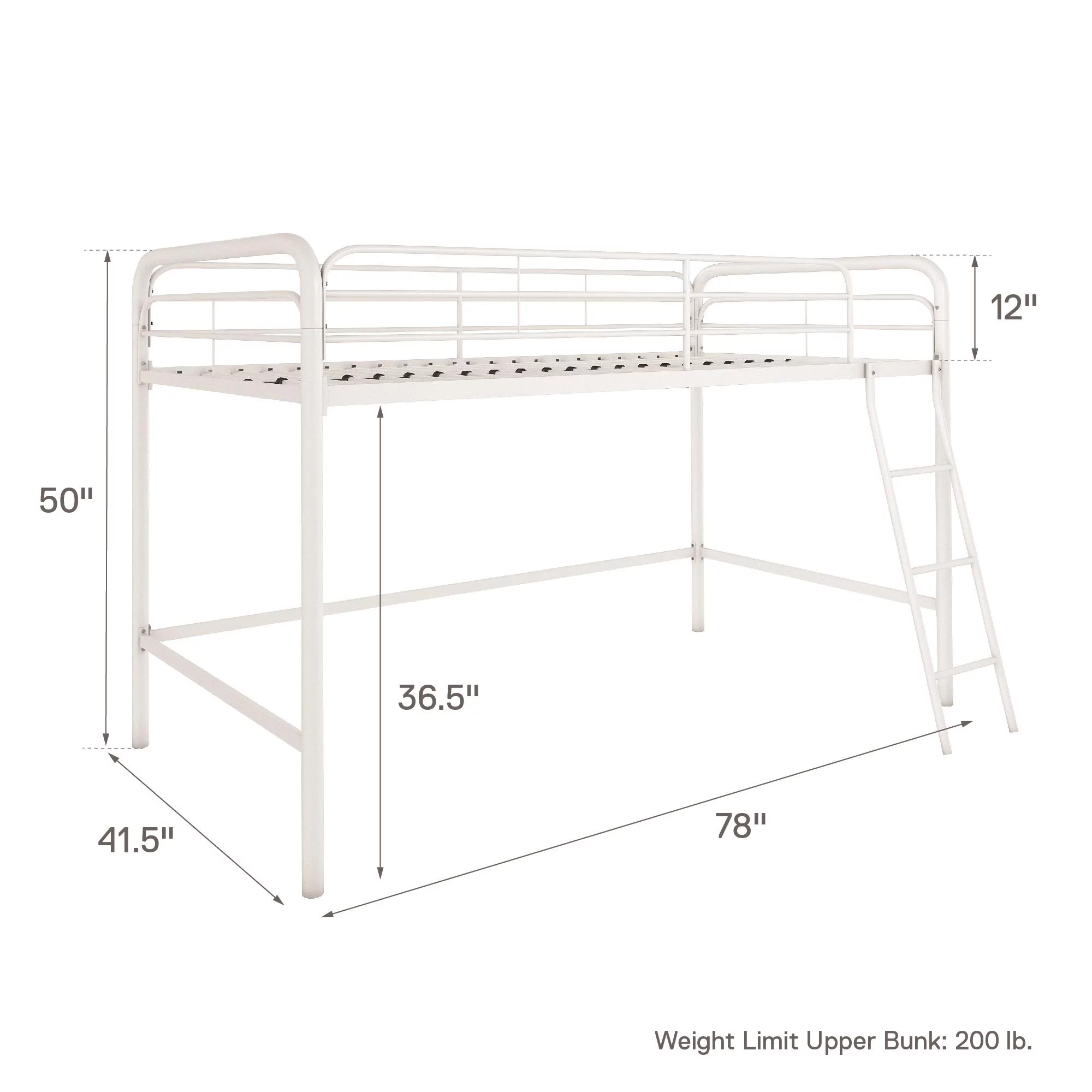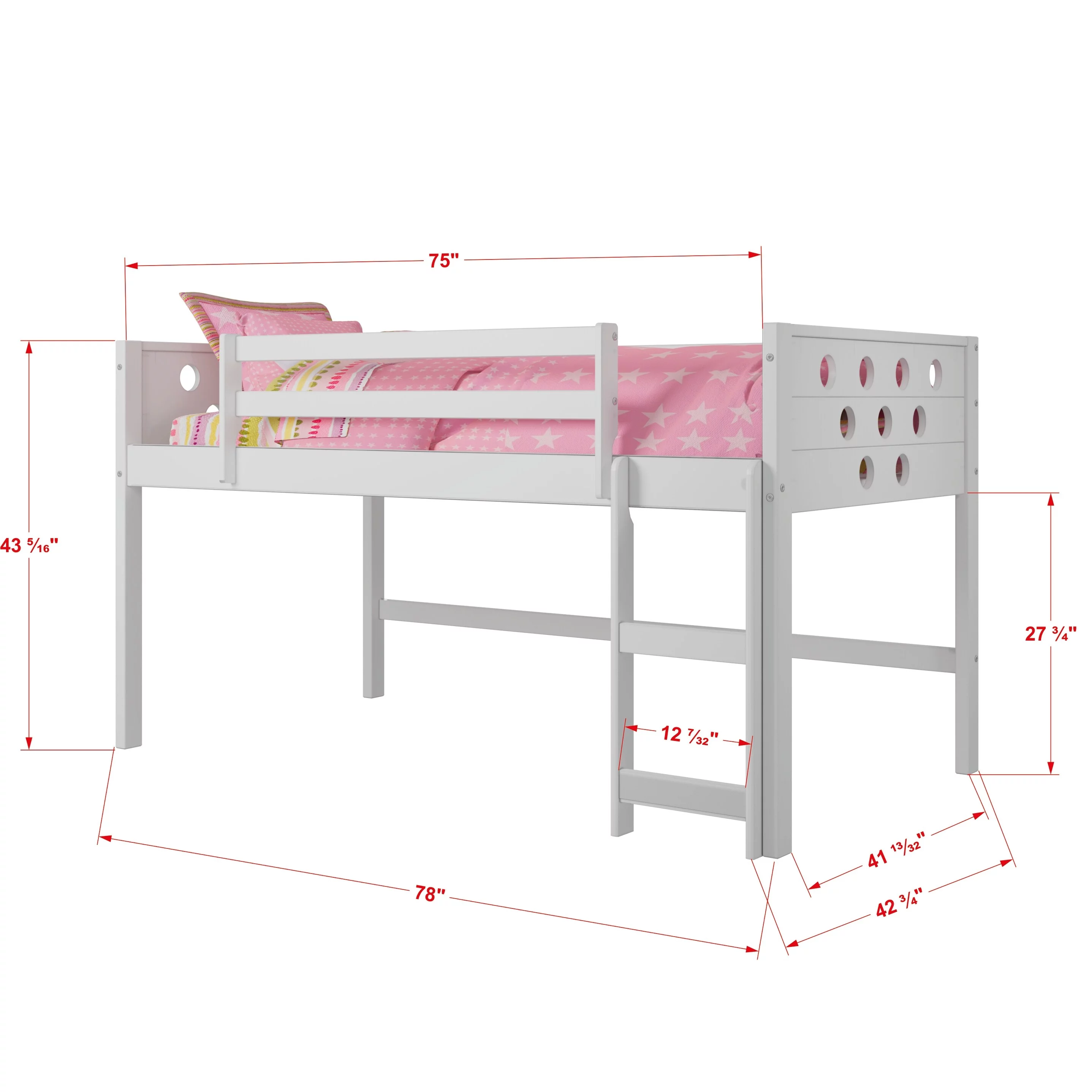 Kunkle Holdings LLC Pine Twin Mission Loft Bed with End Ladder White Painted