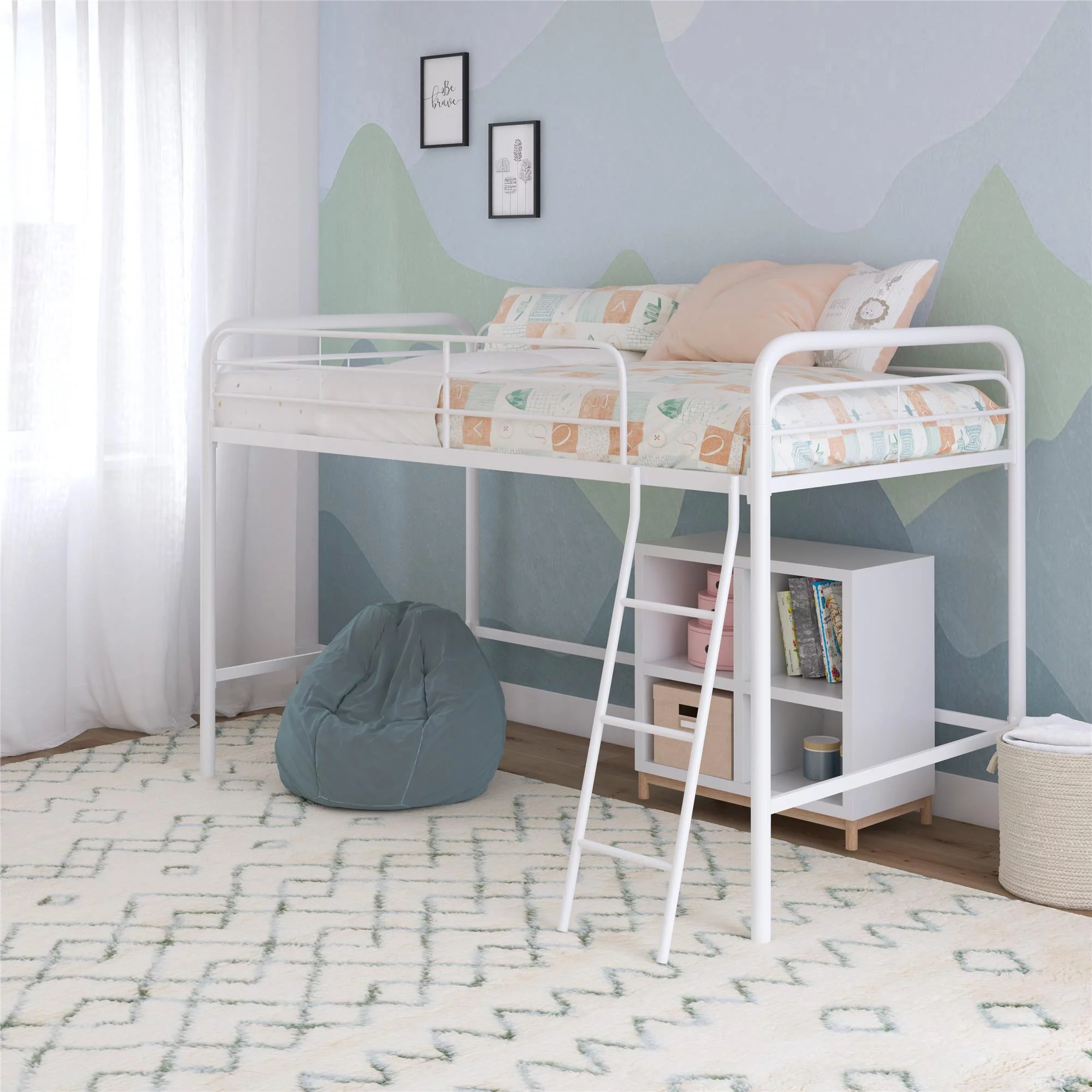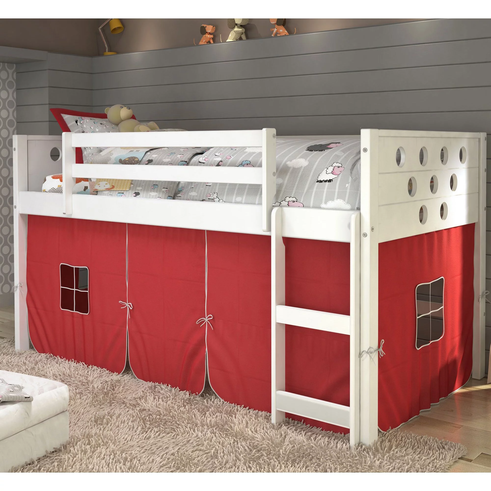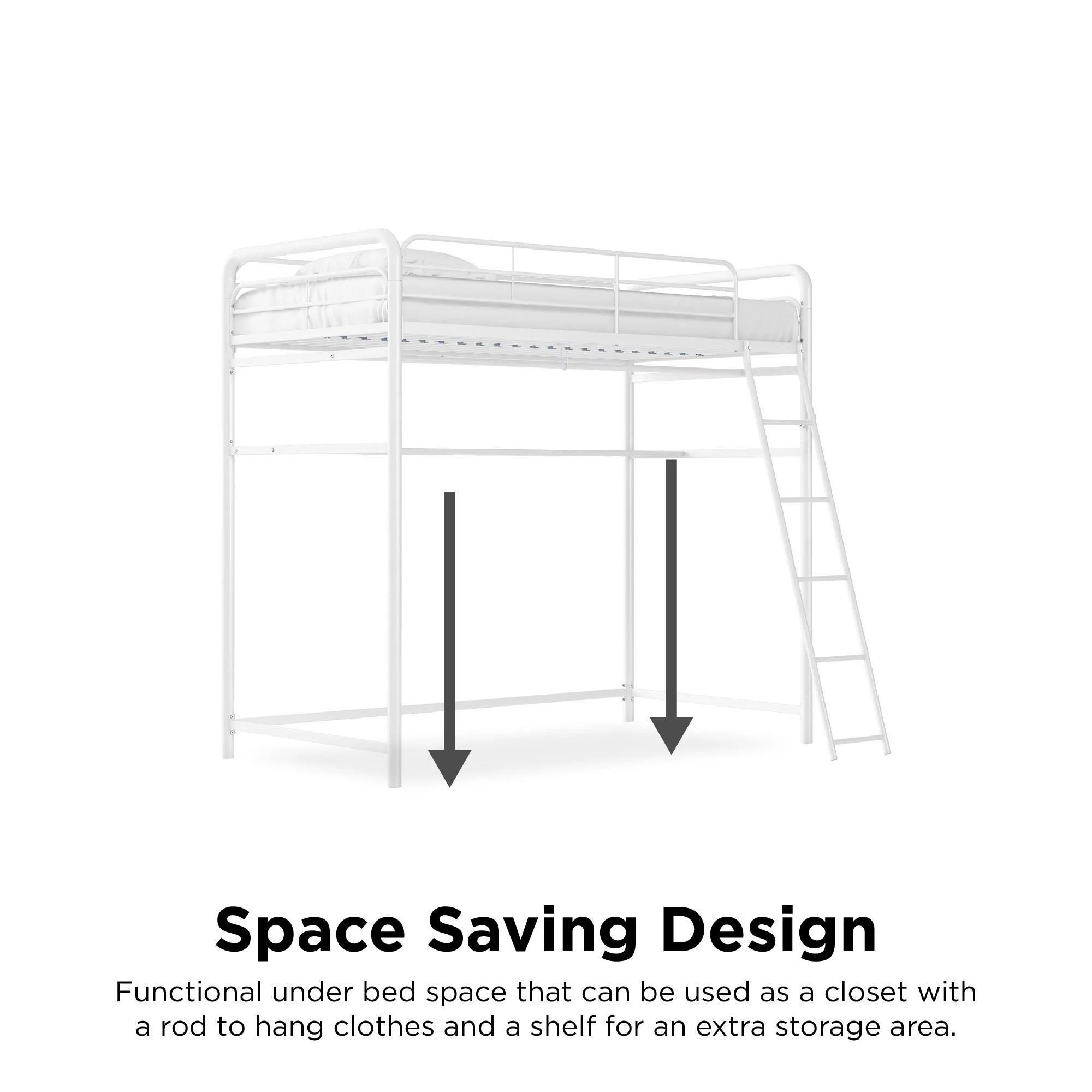 Kunkle Holdings LLC Pine Twin Mission Loft Bed with End Ladder White Painted