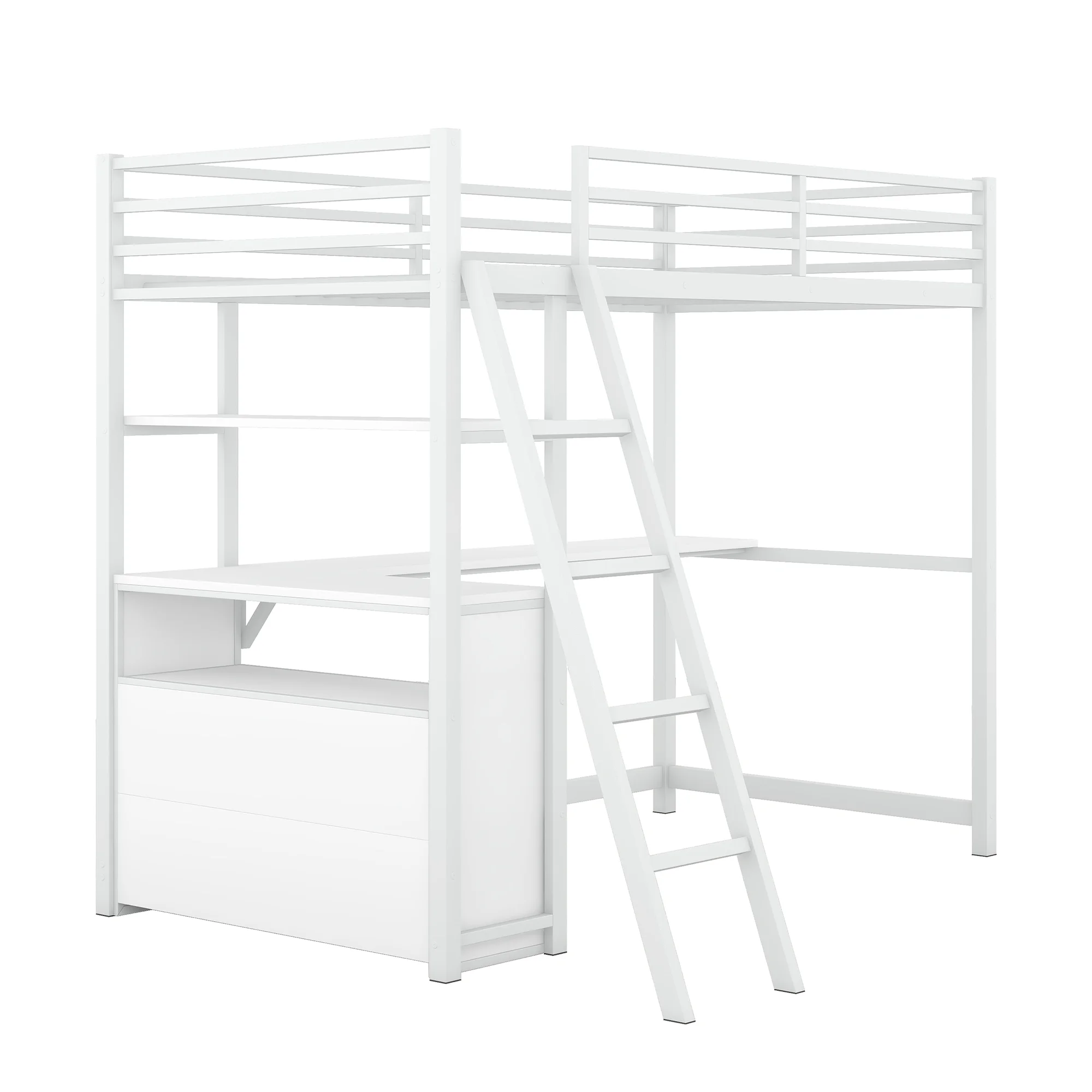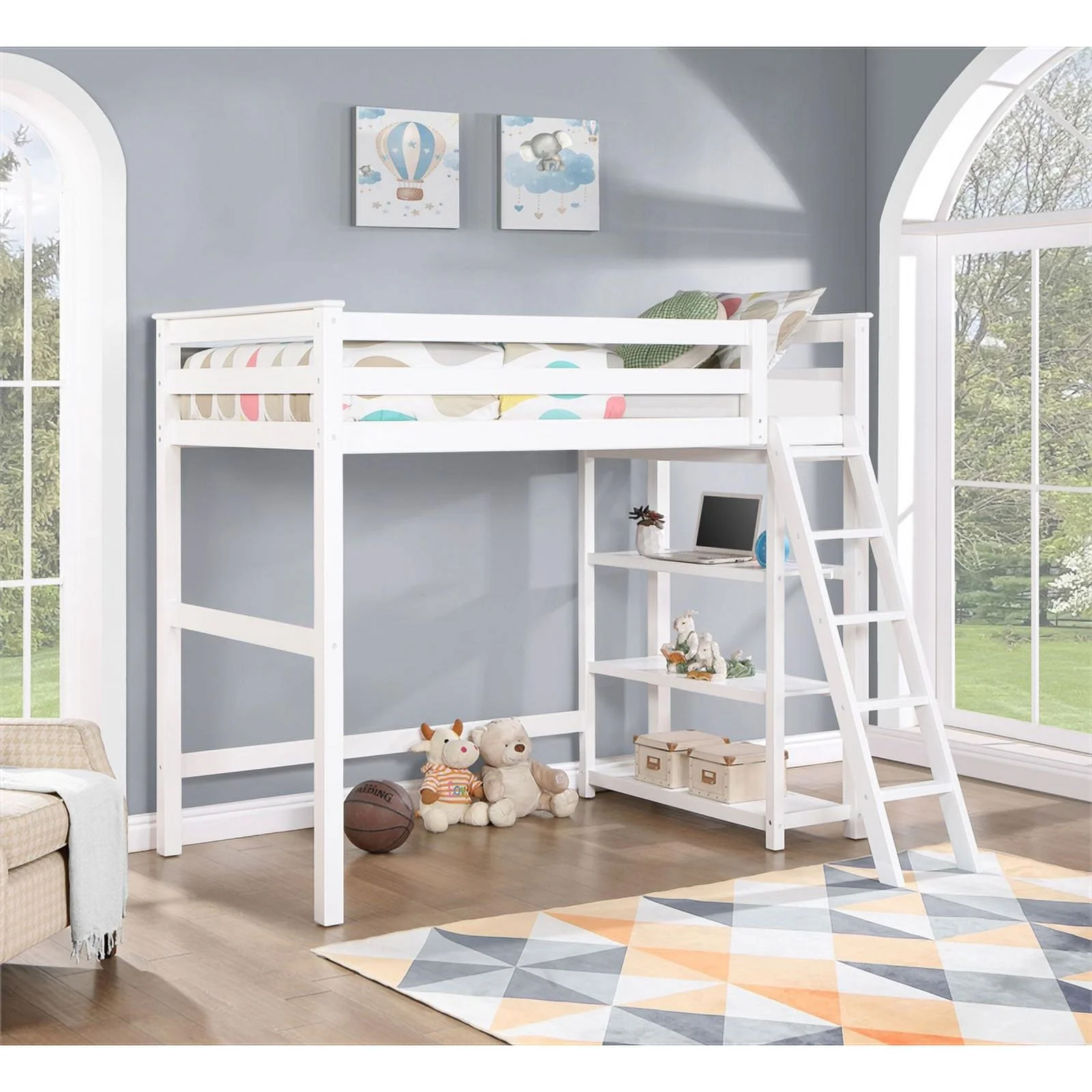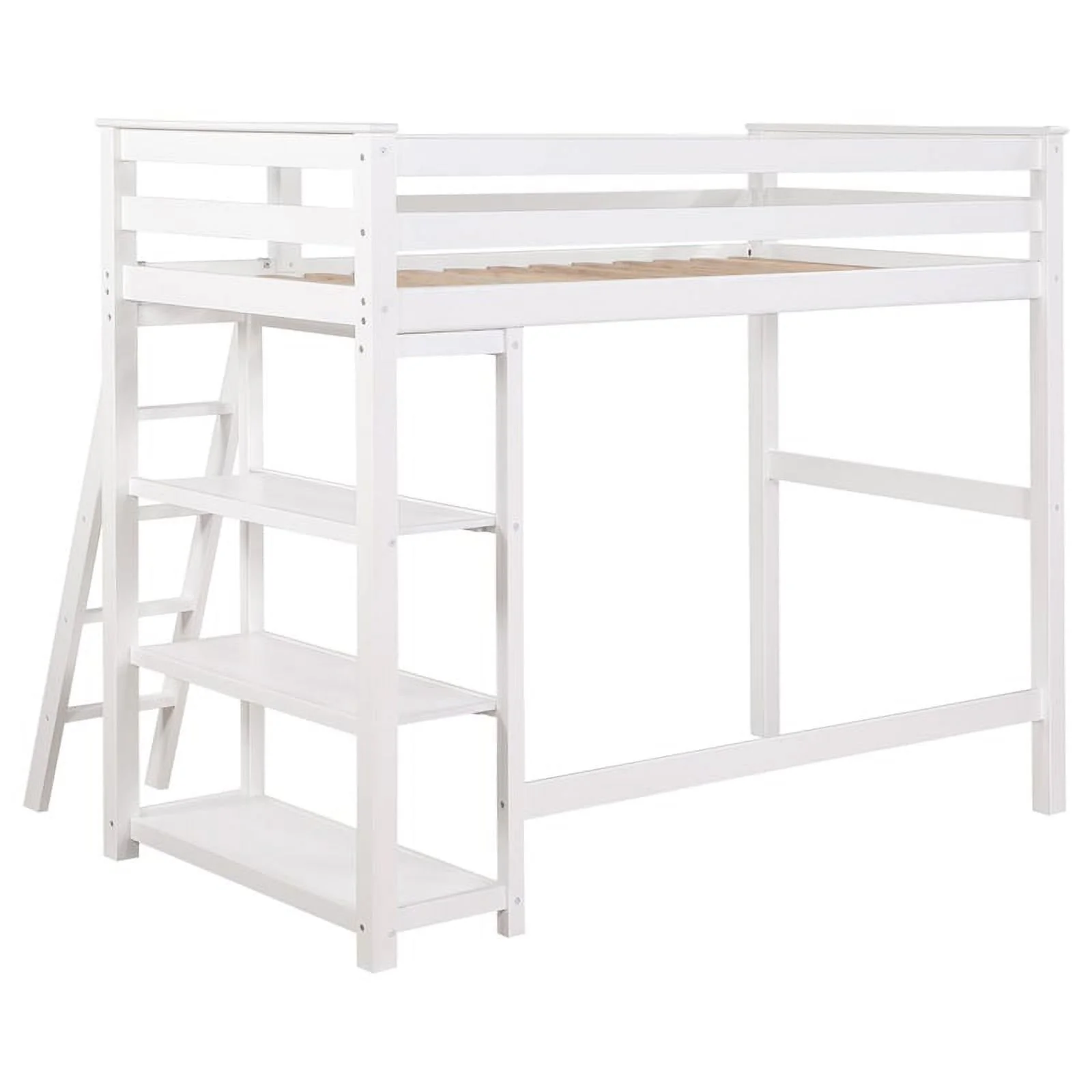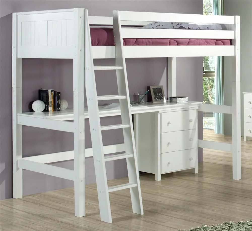 Coaster 3-Shelf Transitional Wood Twin Workstation Loft Bed in White