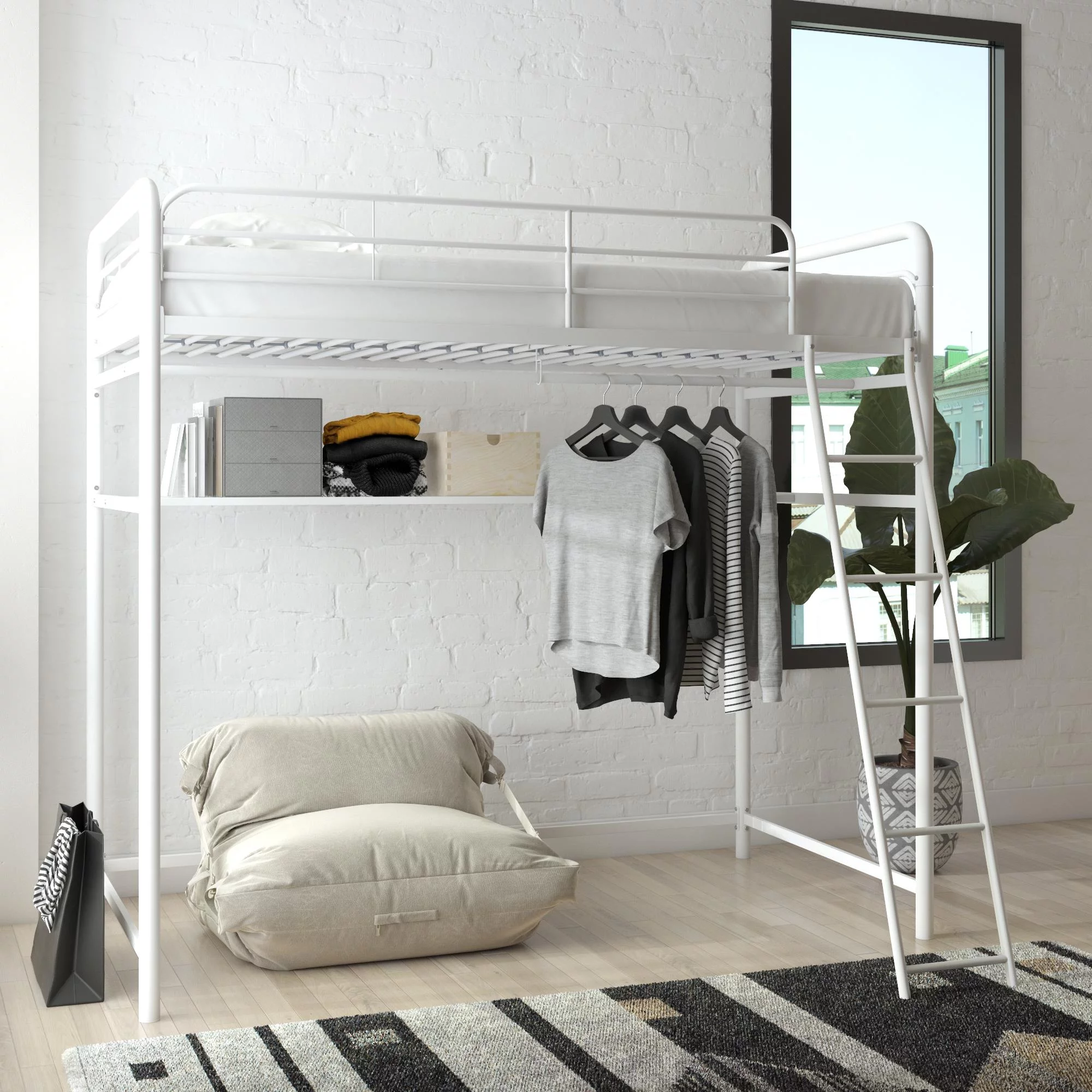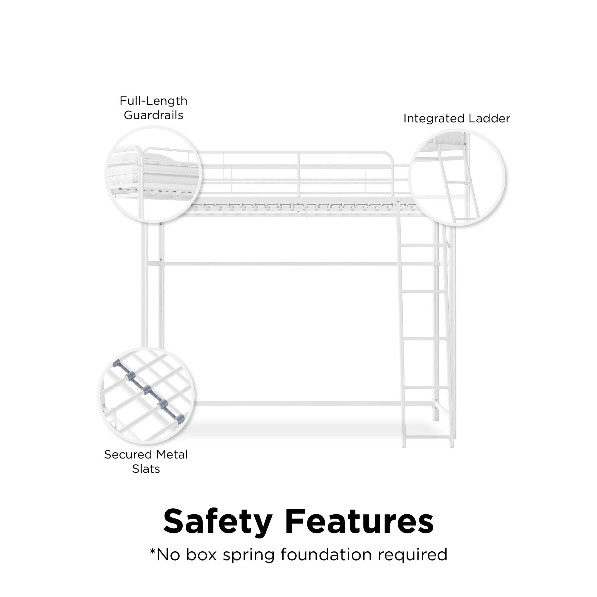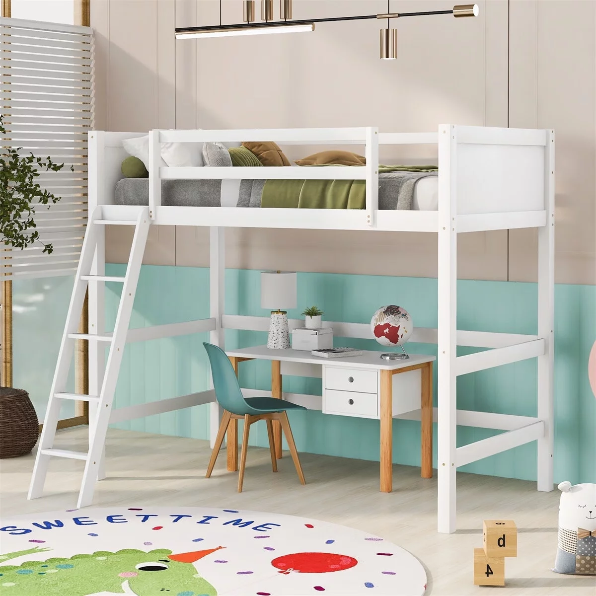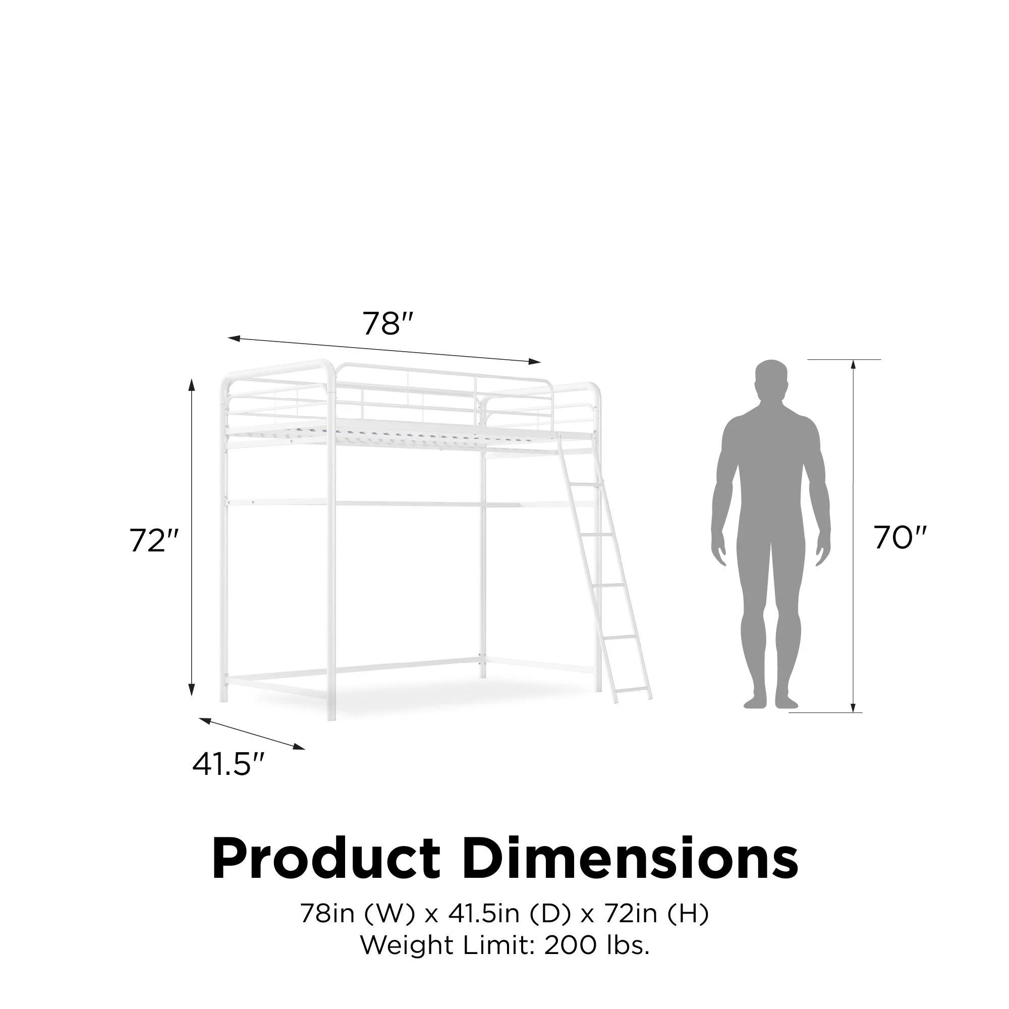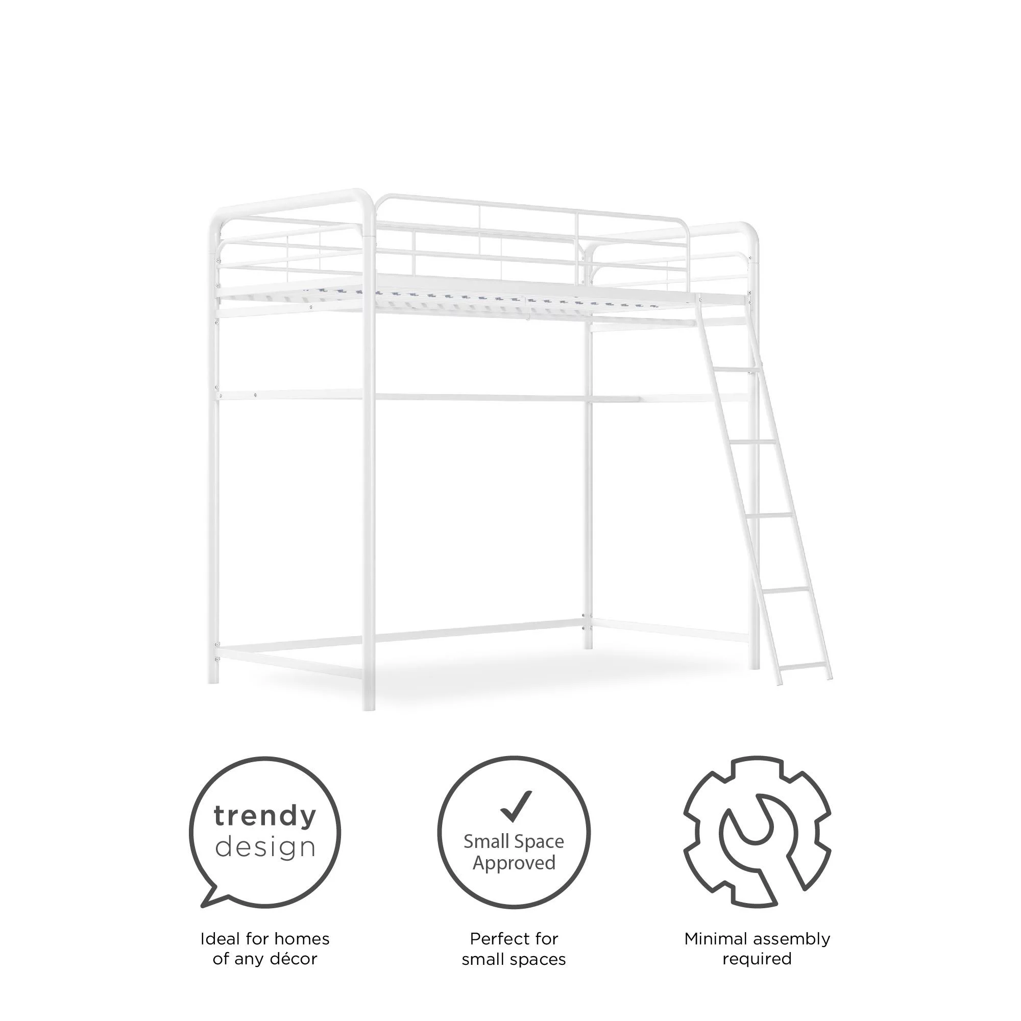 Max & Lily Modern Farmhouse High Loft Bed, Solid Wood Twin Loft Bed Frame for Kids, White Wash