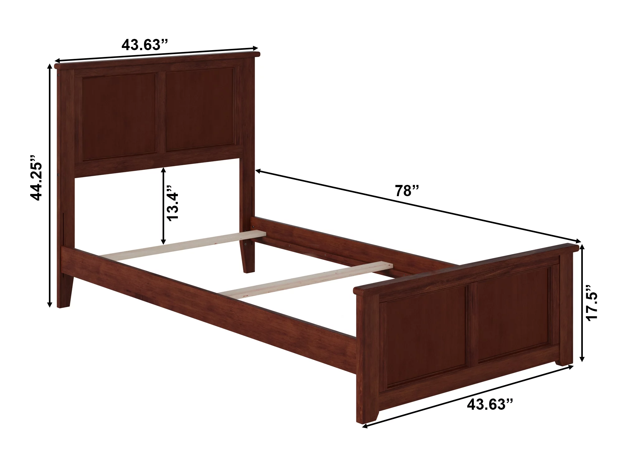AFI Madison Twin Wood Traditional Bed with Matching Headboard Footboard Set in Walnut