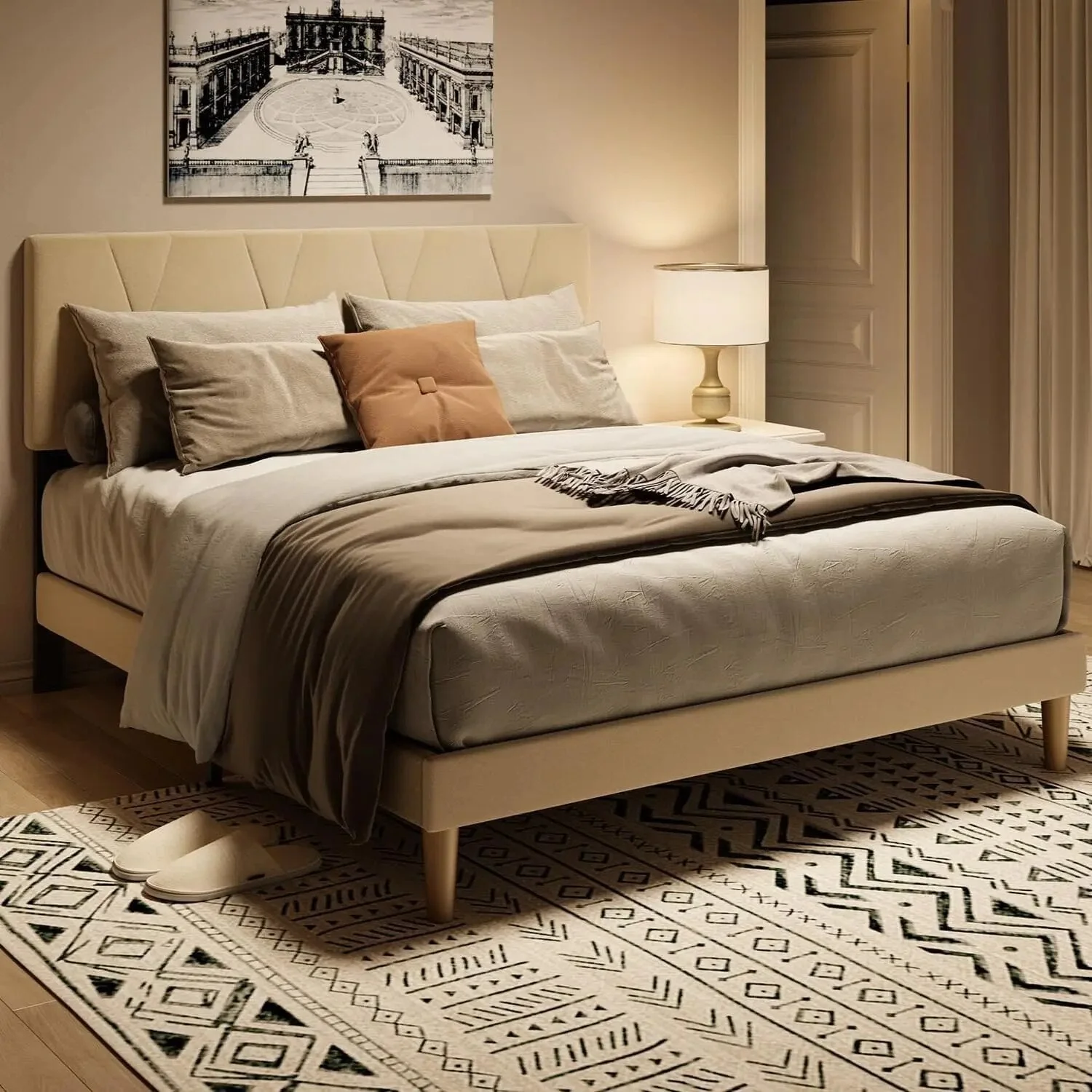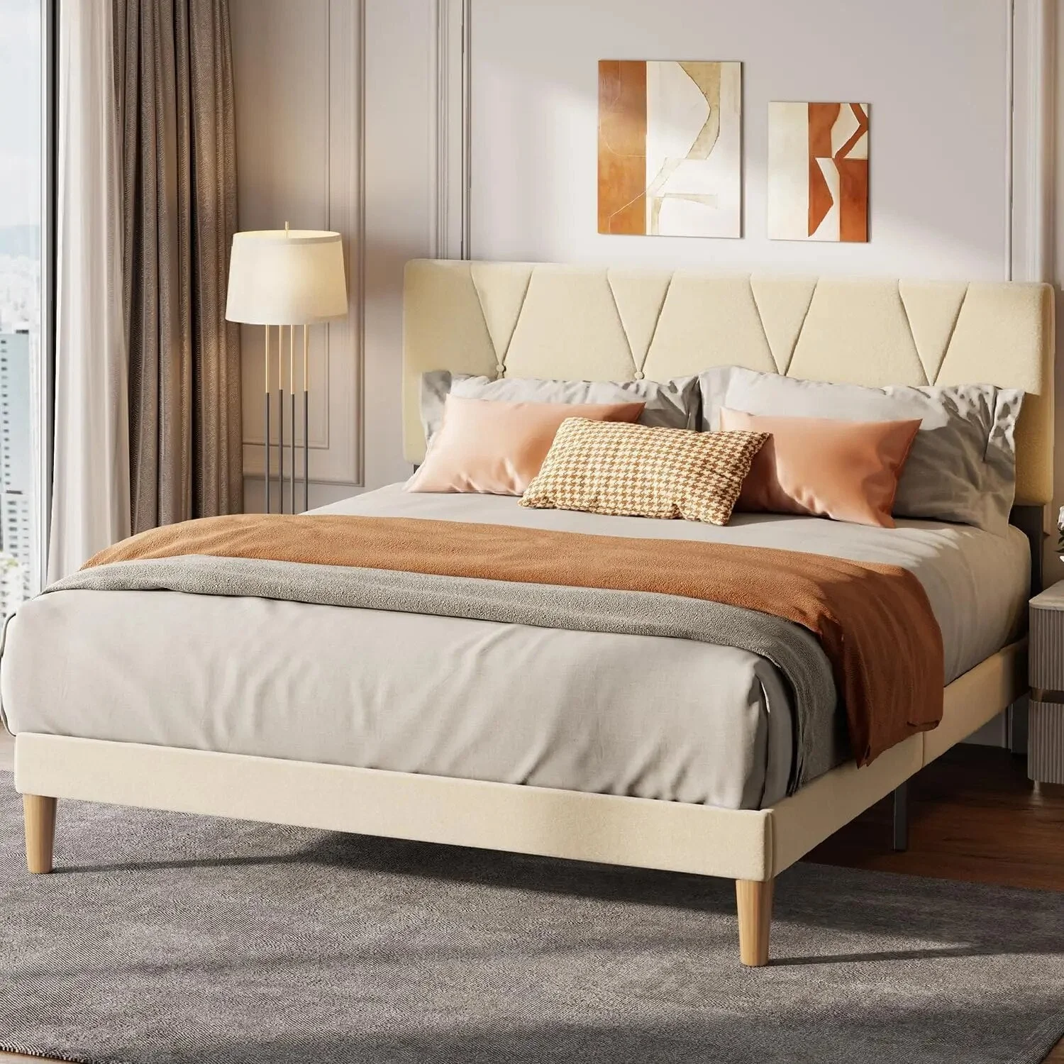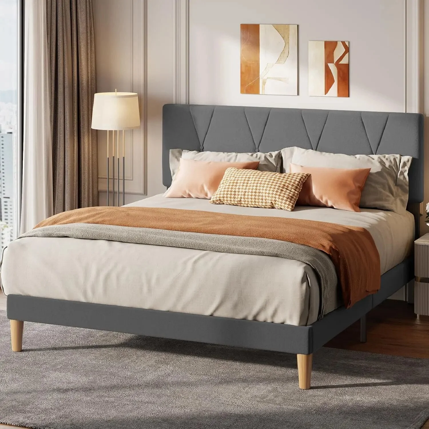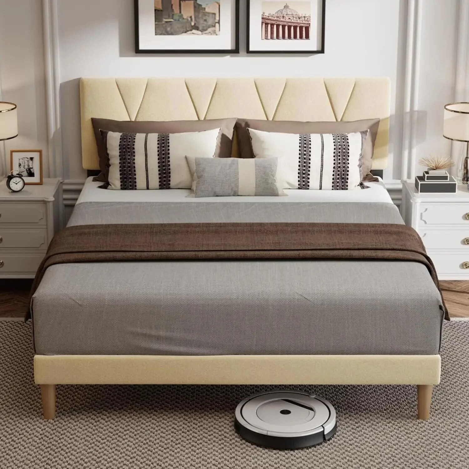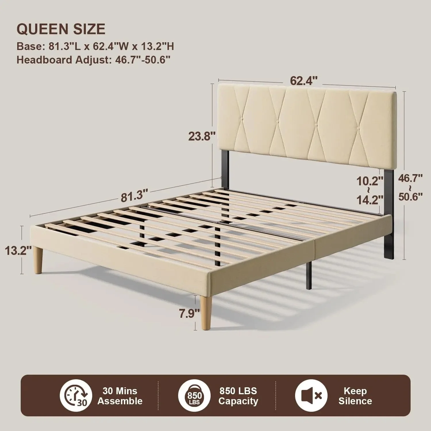 Upholstered Platform Bed Frame with Adjustable Headboard Available in Queen size