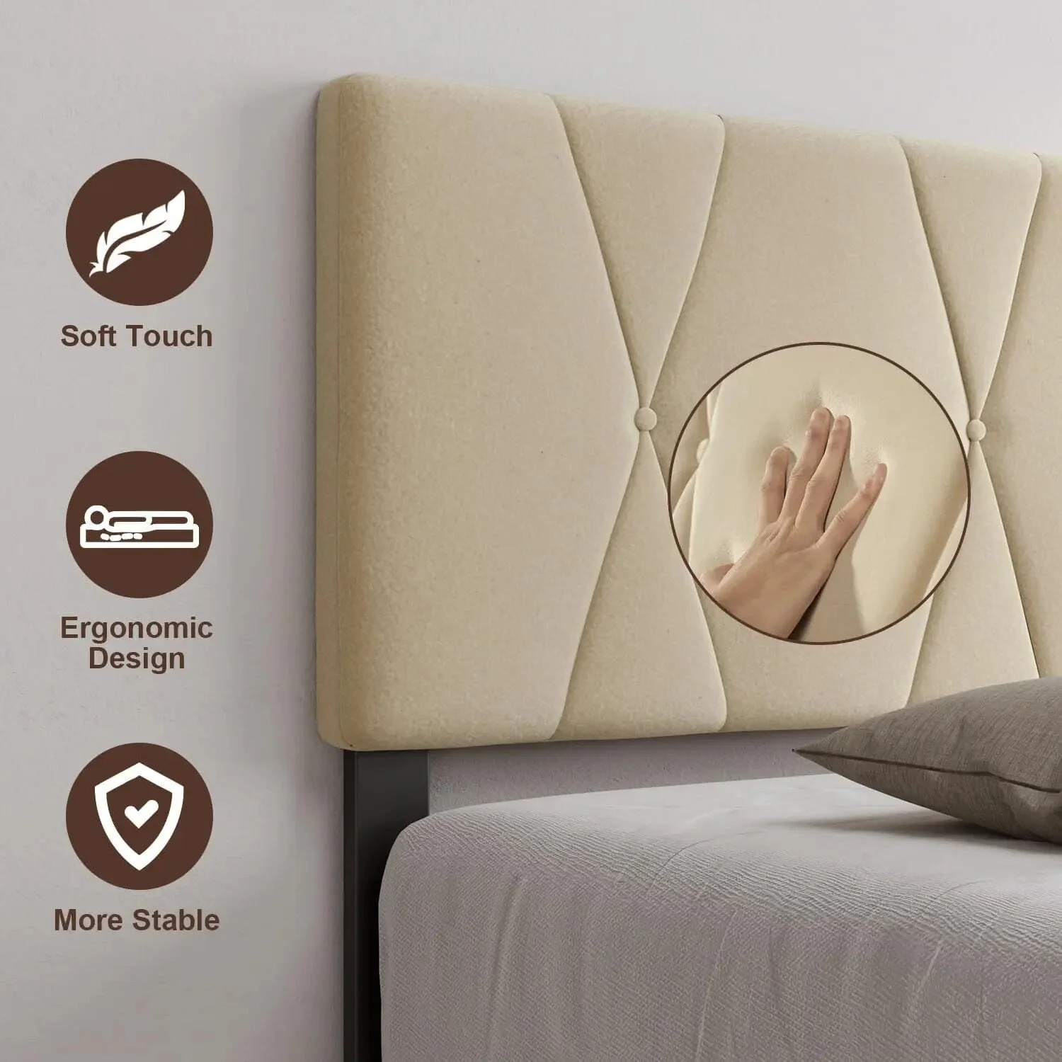 Gizoon Queen Bed Frame with Adjustable Velvet Headboard, Upholstered Platform Bed Frame with Sturdy Metal Frame