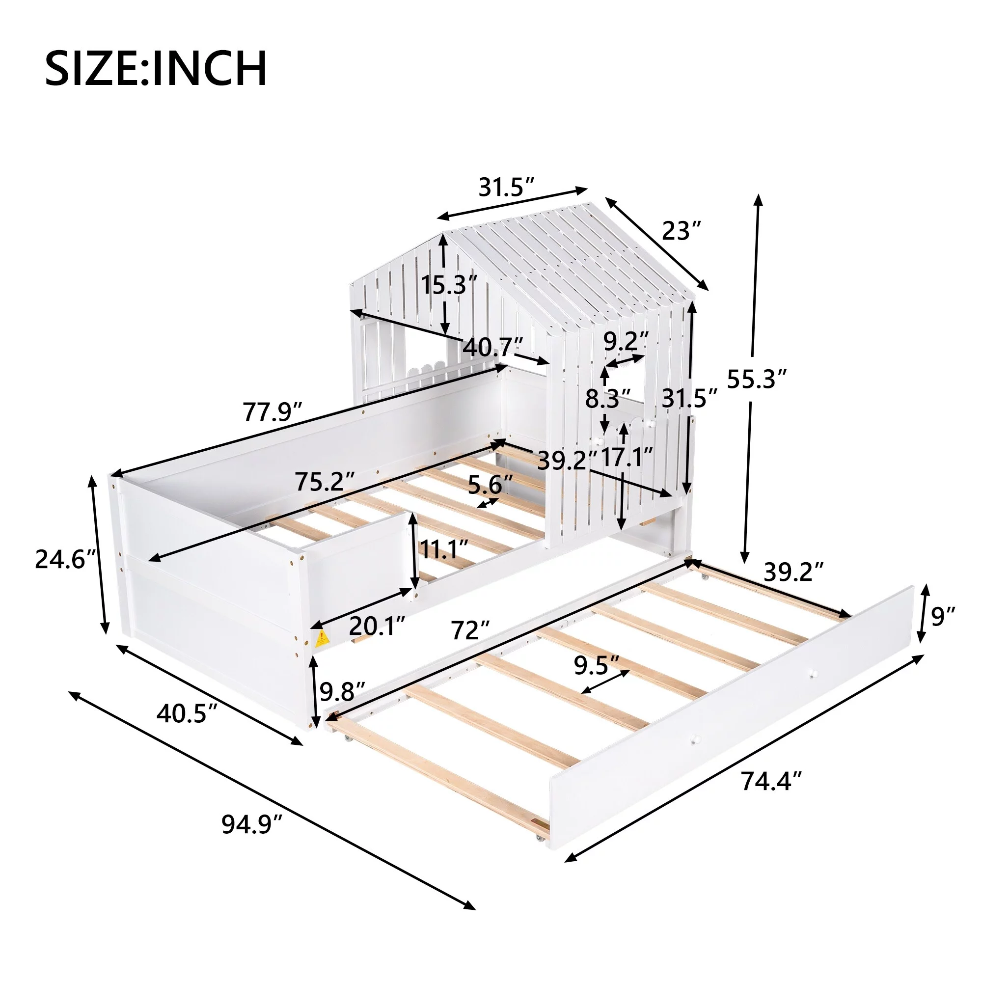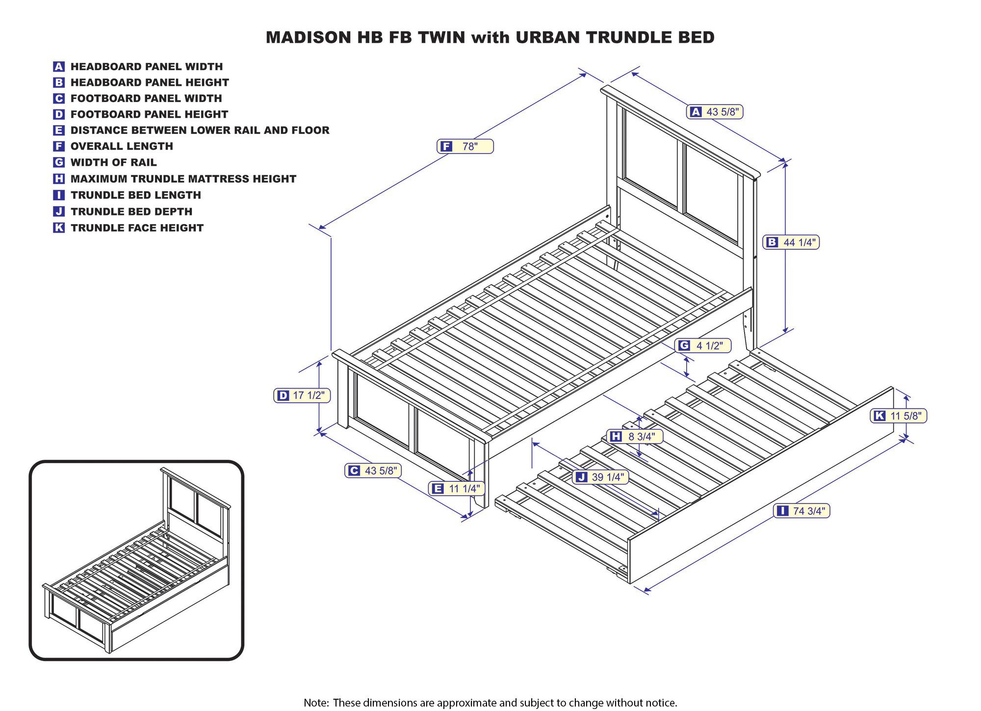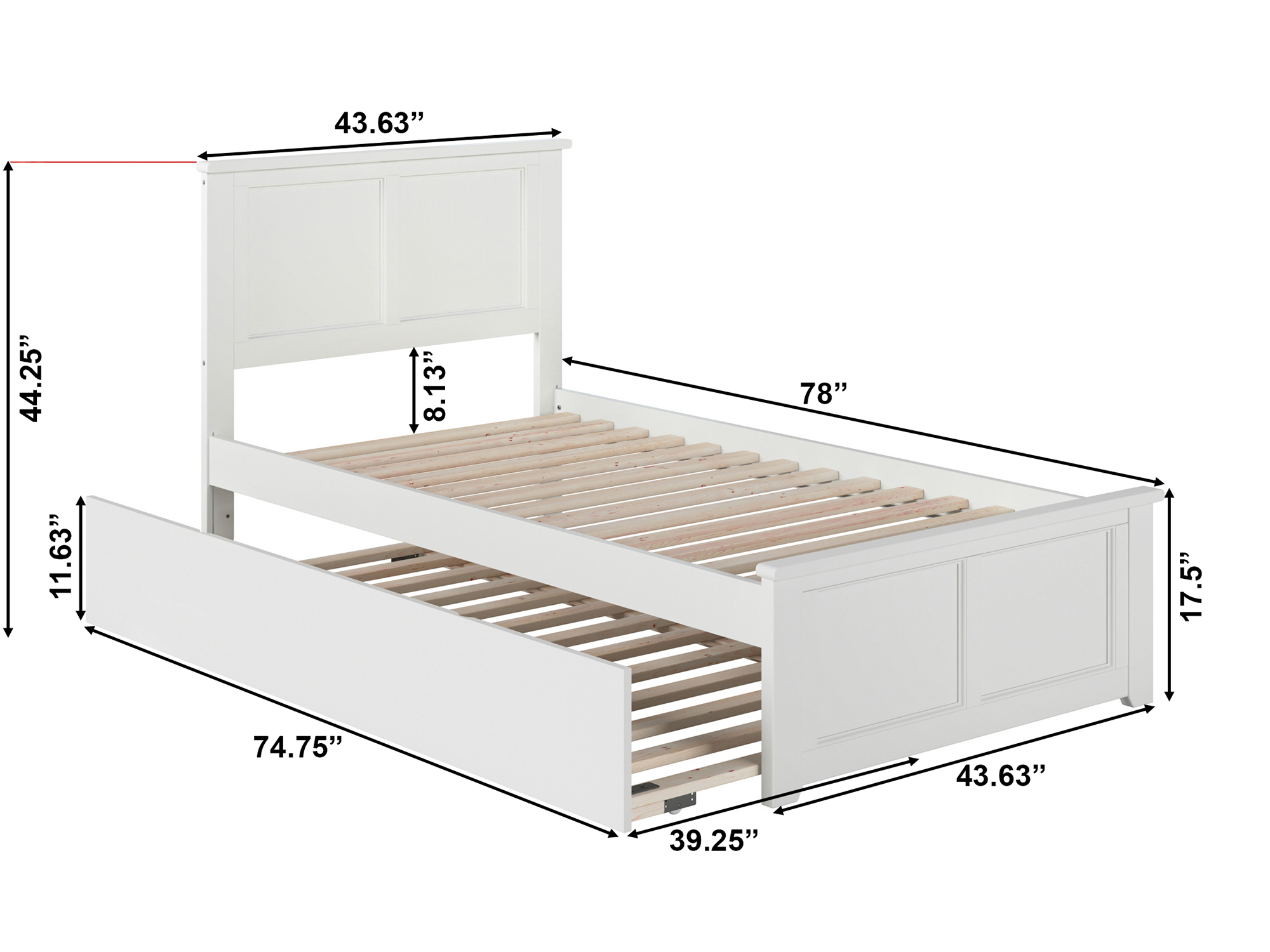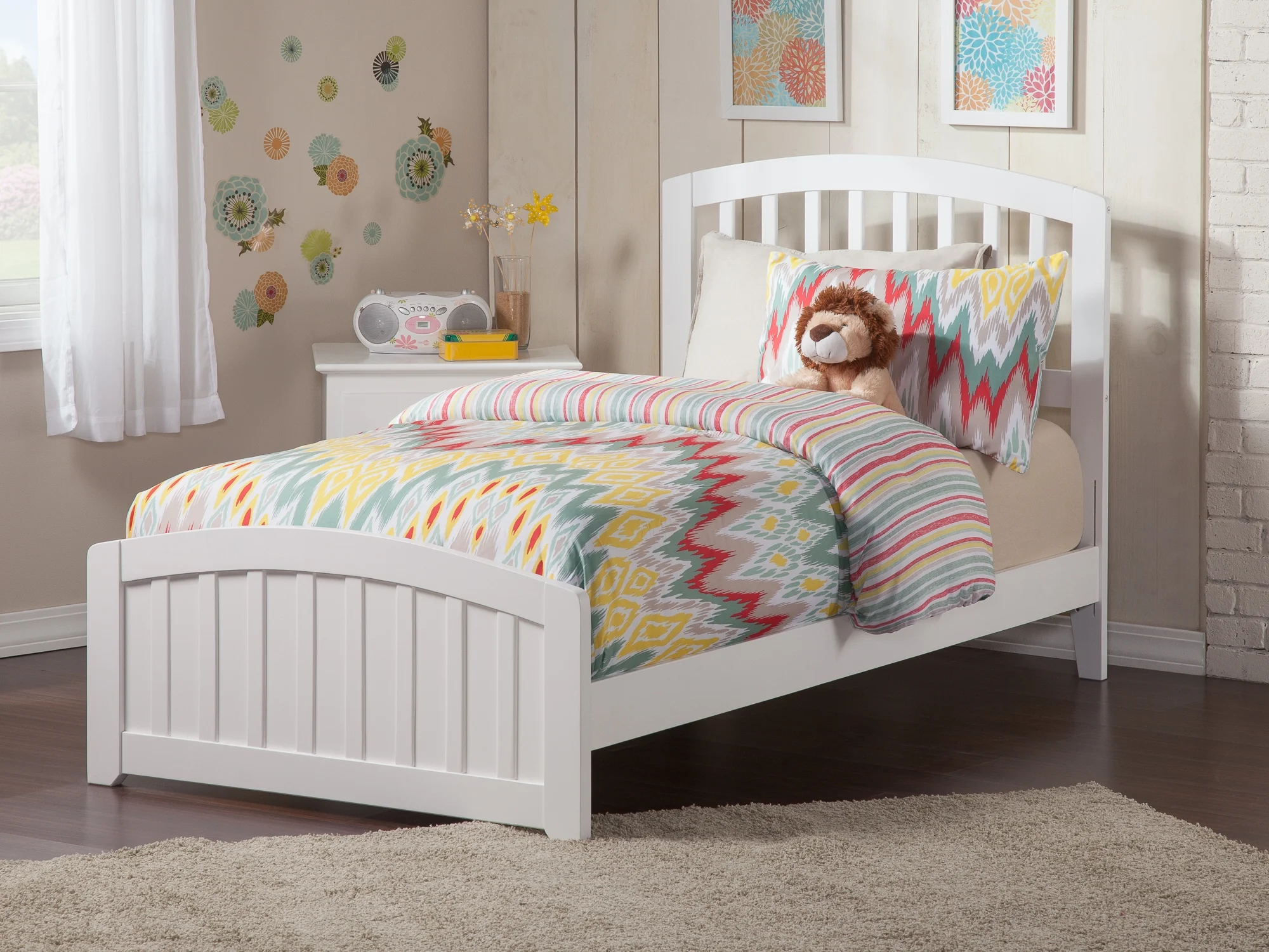 AFI Madison Twin Wood Platform Bed with Matching Footboard & Twin Trundle in White