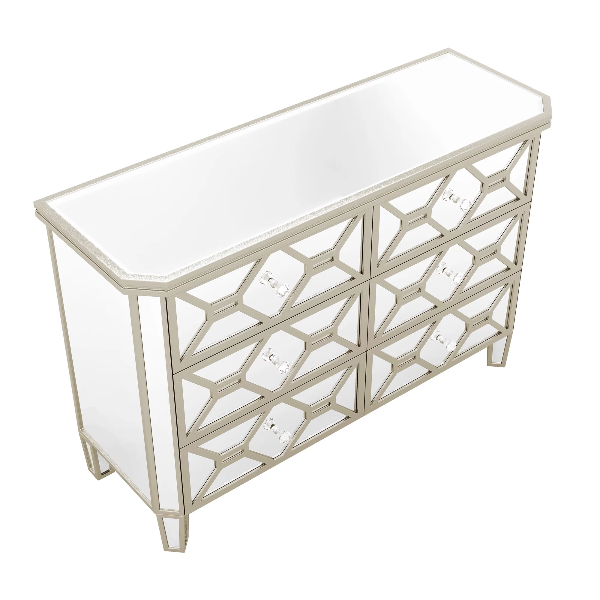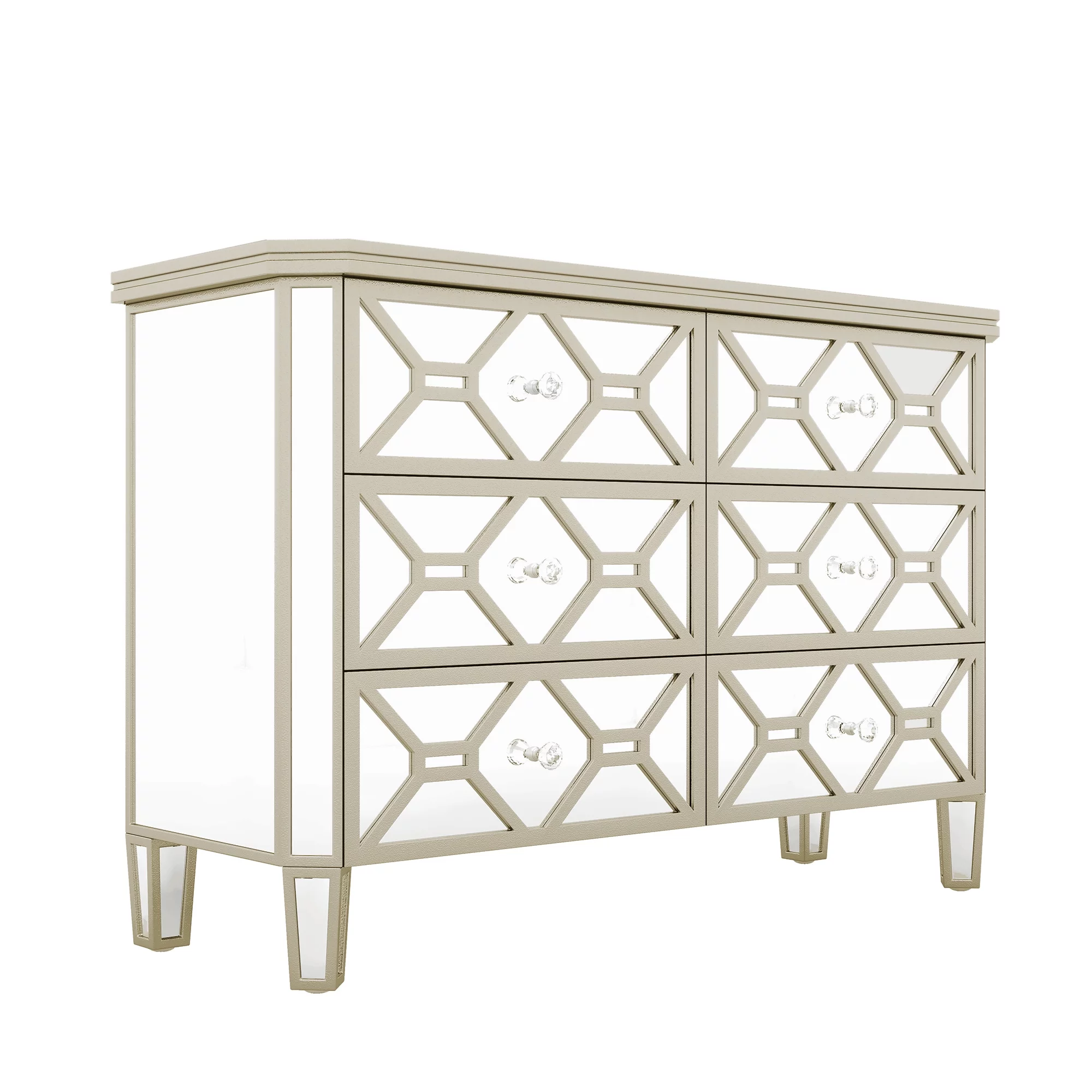 Elegant Mirrored 6-Drawer Dresser with Golden Lines for Living Room, Bedroom