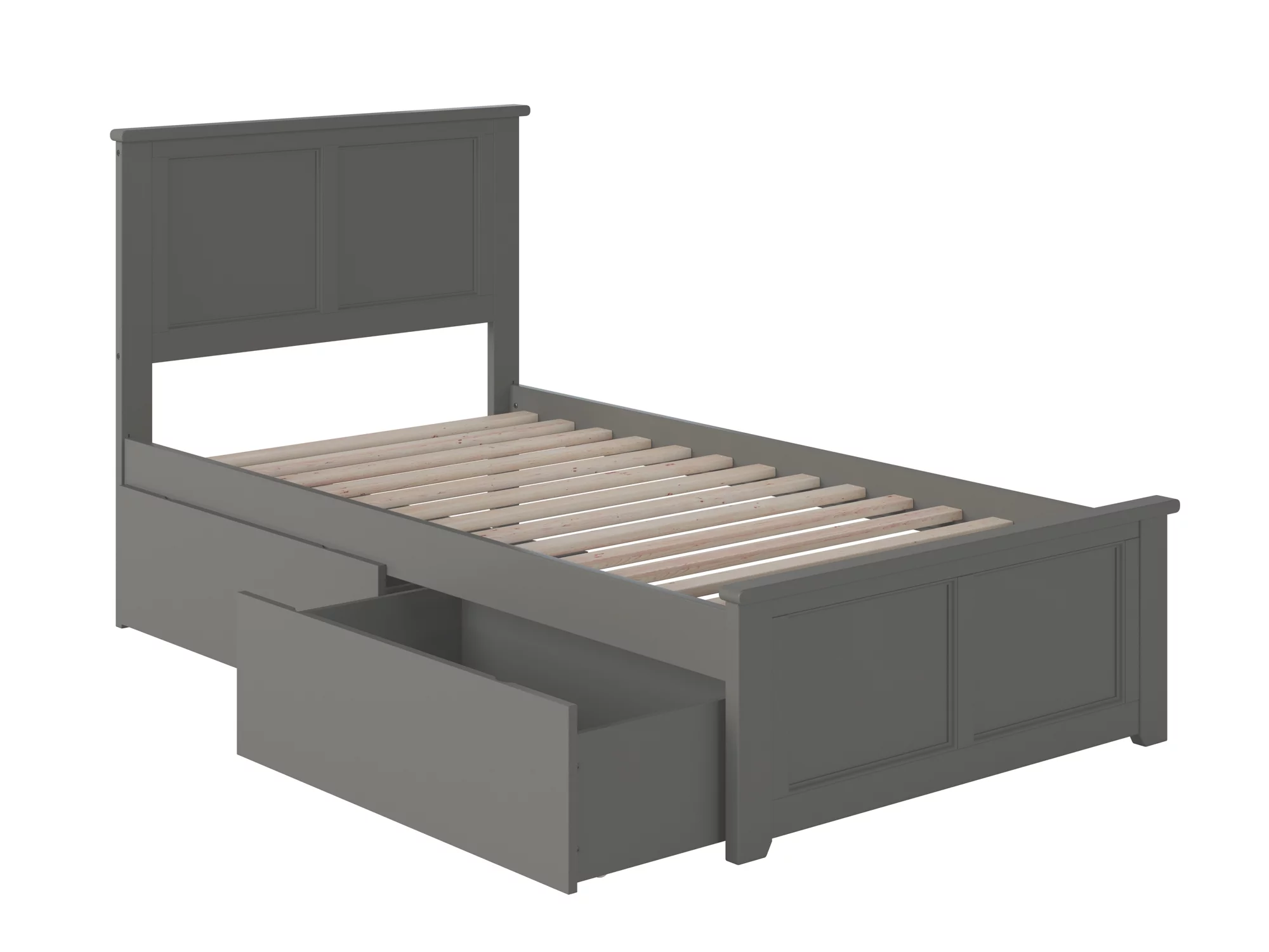 AFI Madison Twin Wood Platform Bed with Matching Footboard & 2 Storage Drawers in Grey