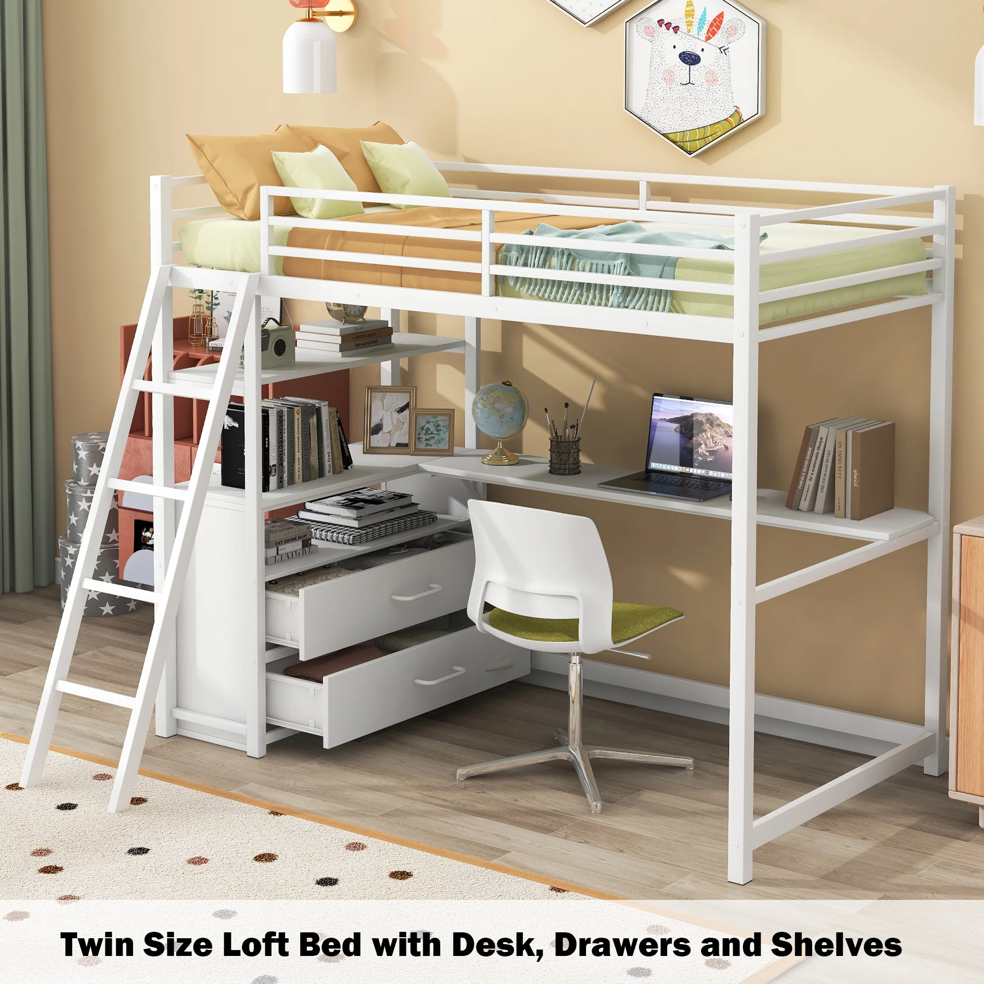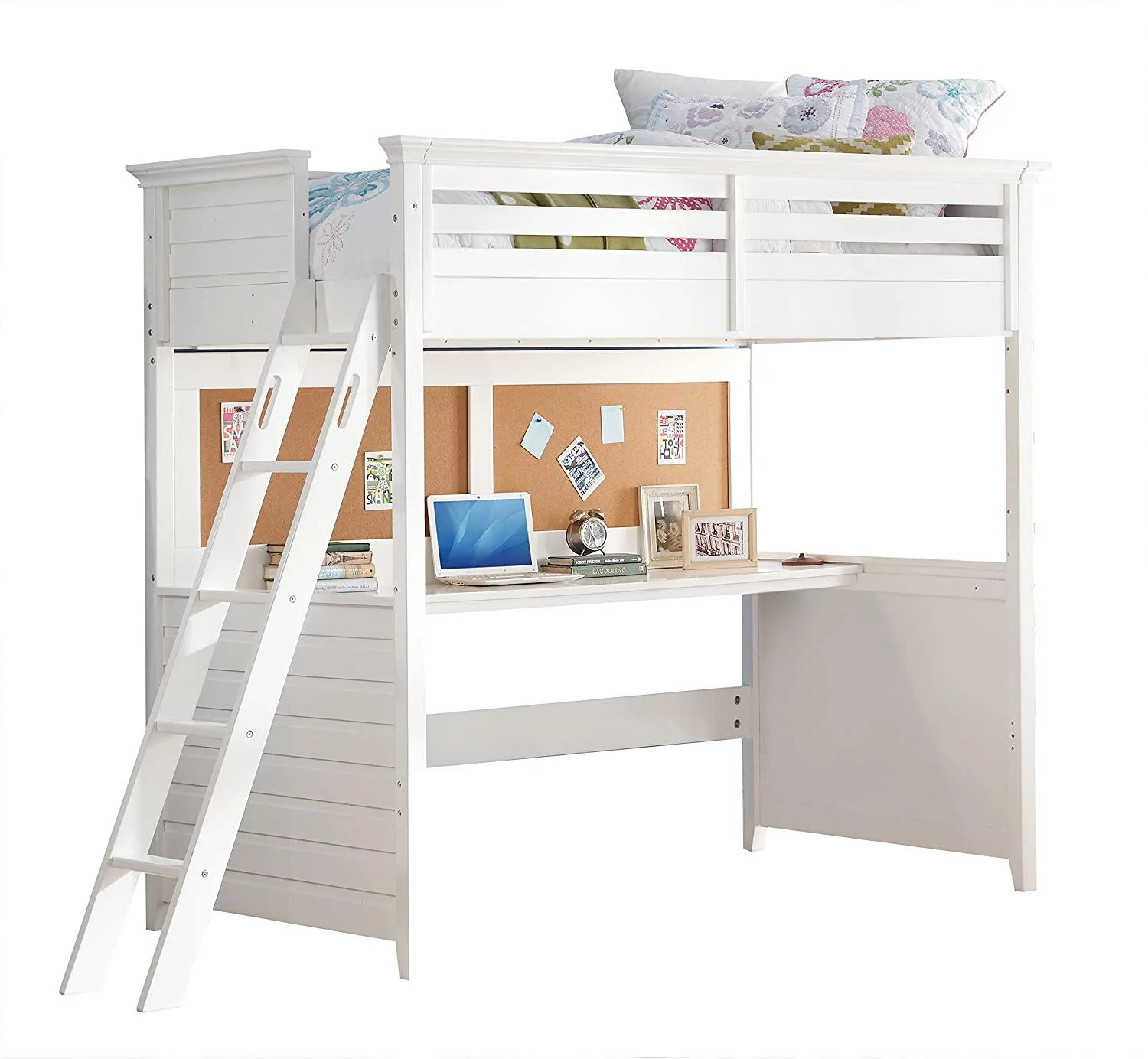 Transitional White Twin Loft Bed w/ Desk & Cork-Board Panel by Acme Lacey 37670