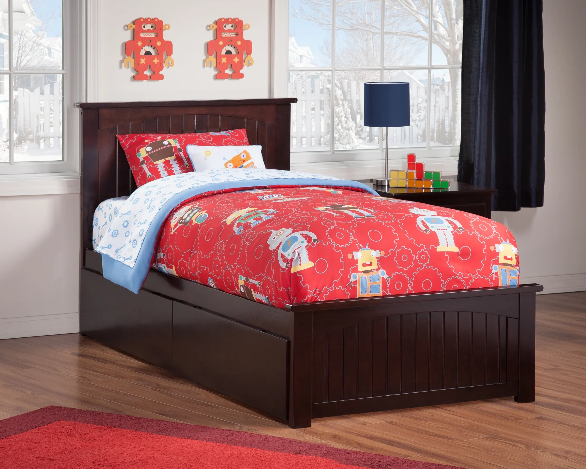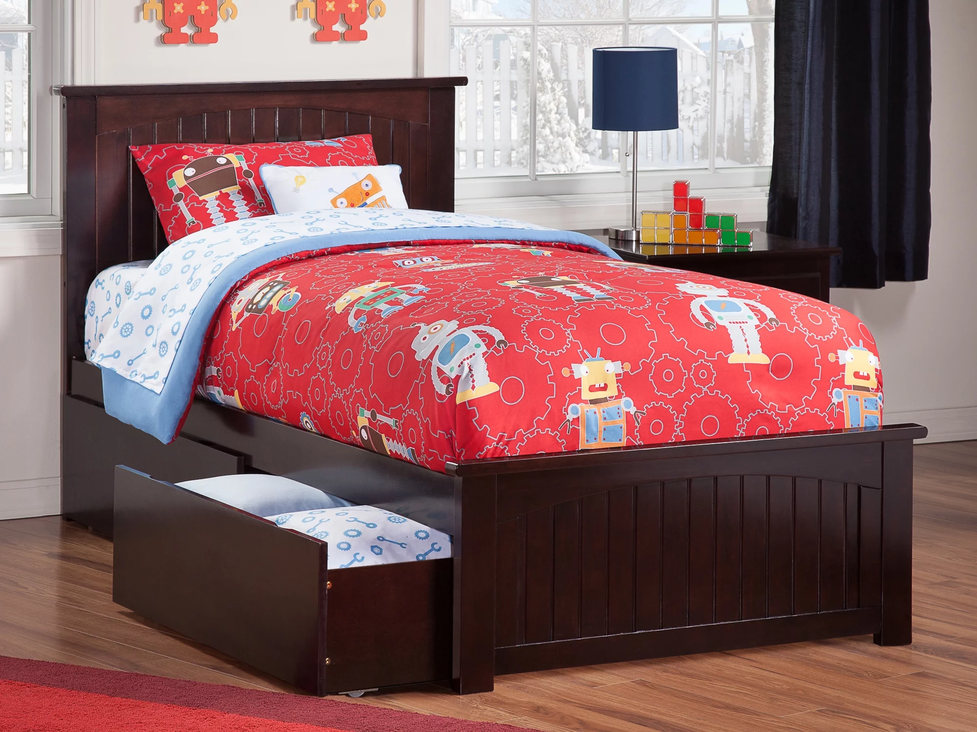 AFI Nantucket Twin Platform Bed with Matching Footboard and 2 Drawers in Espresso