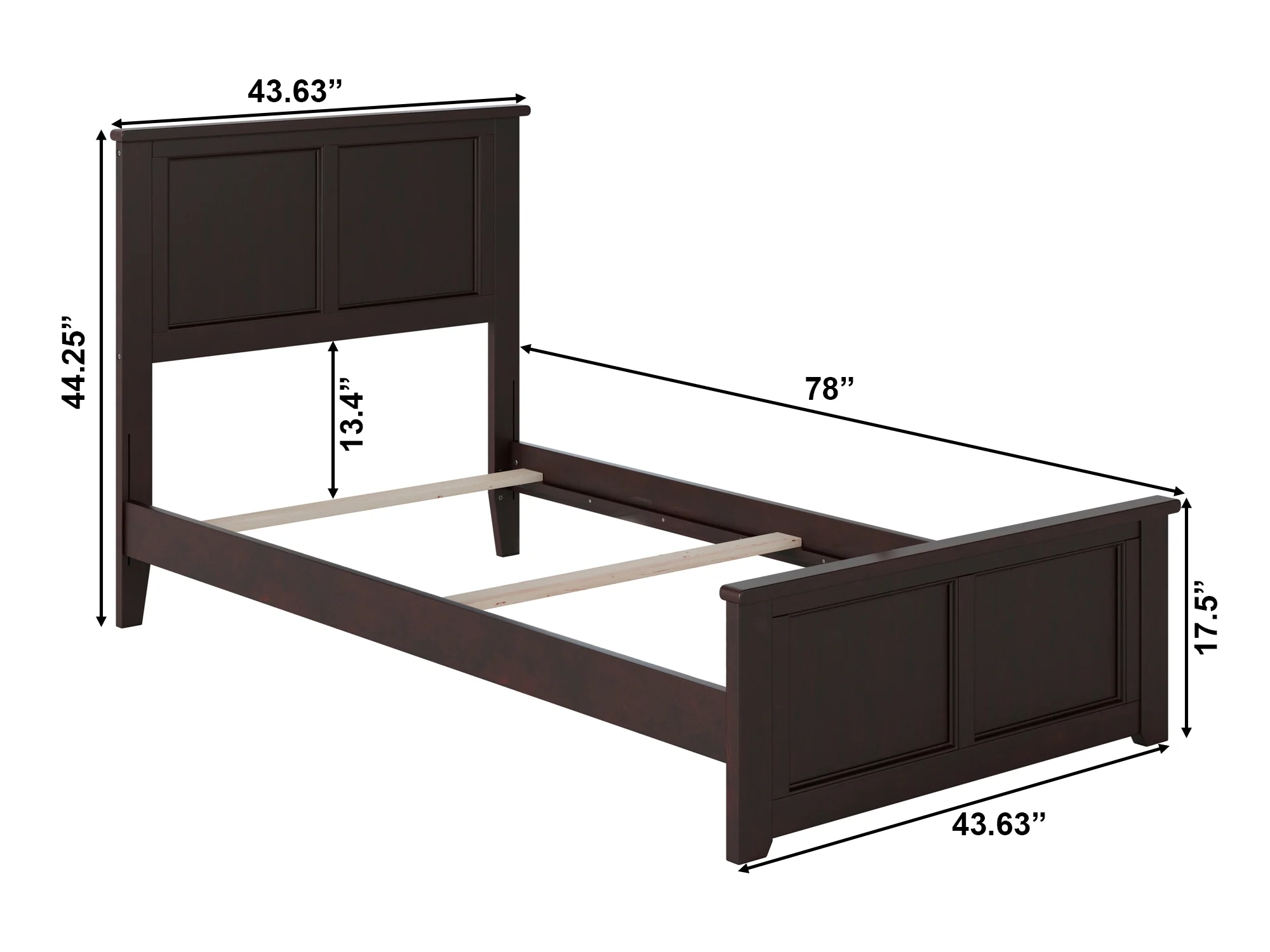AFI Madison Twin Wood Traditional Bed with Matching Headboard Footboard Set in Espresso