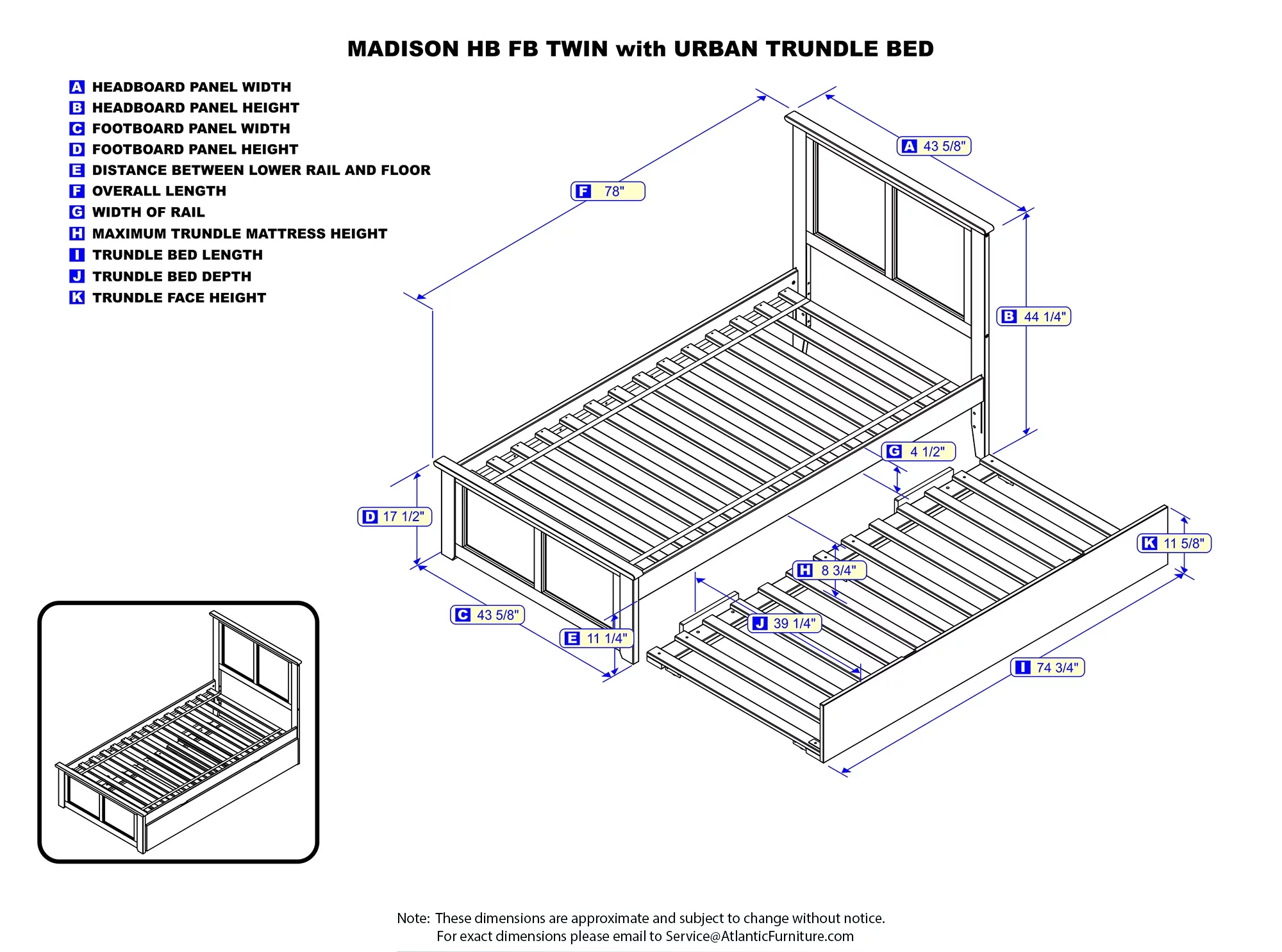 Madison Platform Bed with Matching Foot Board with Twin Size Urban Trundle Bed in Multiple Colors and Sizes