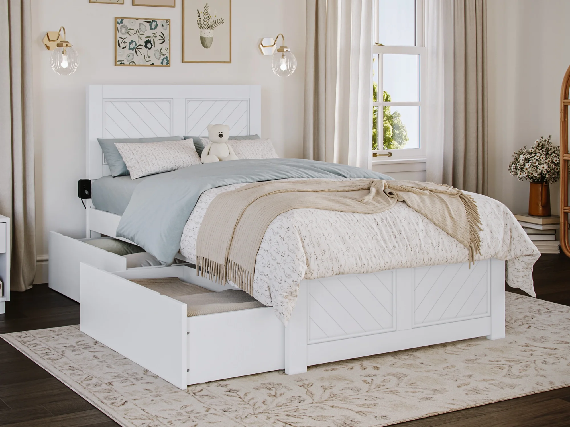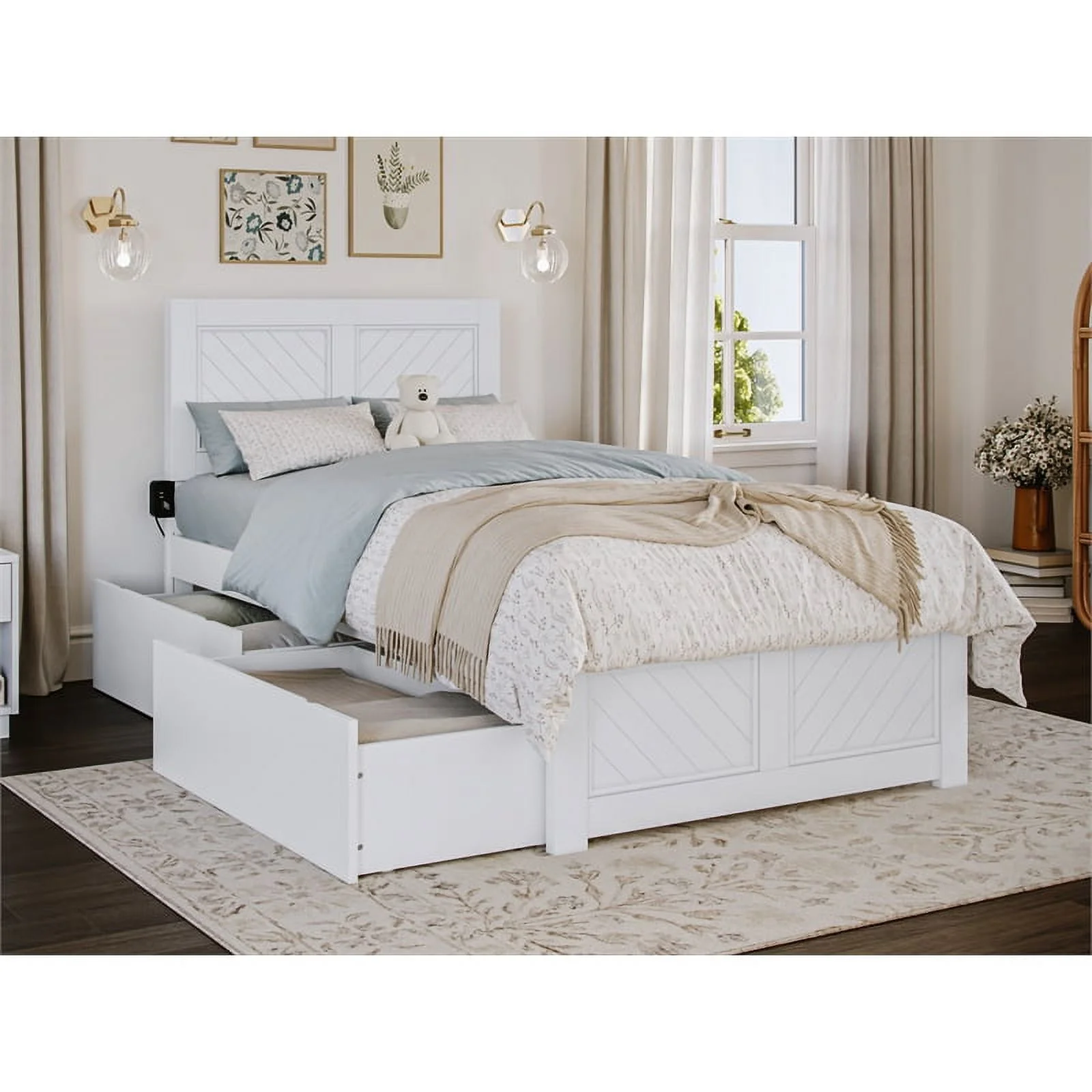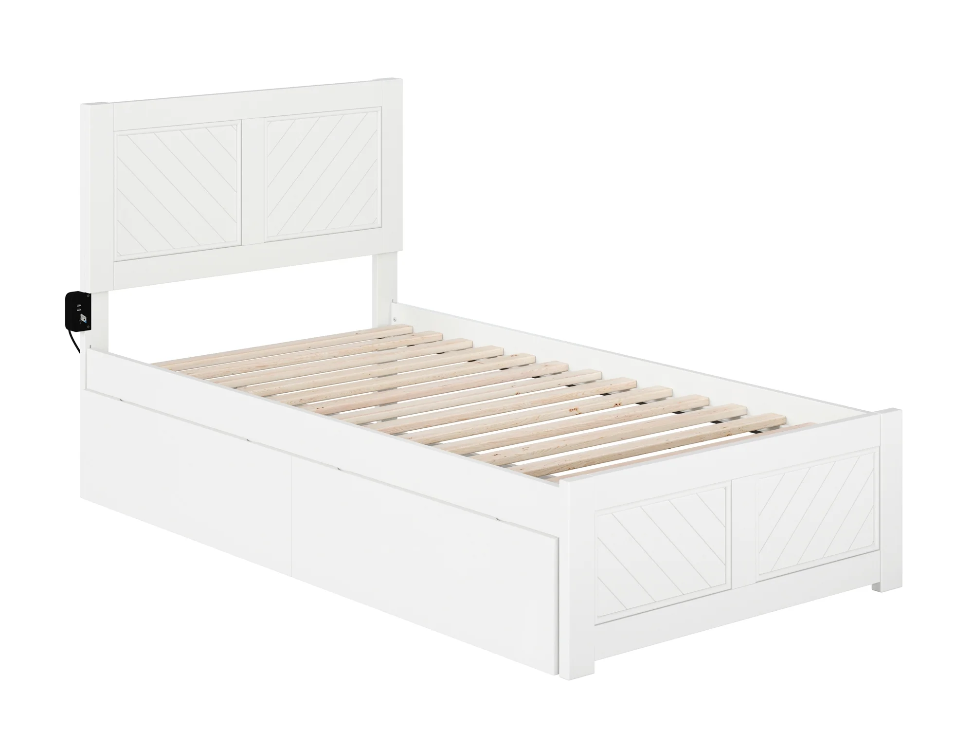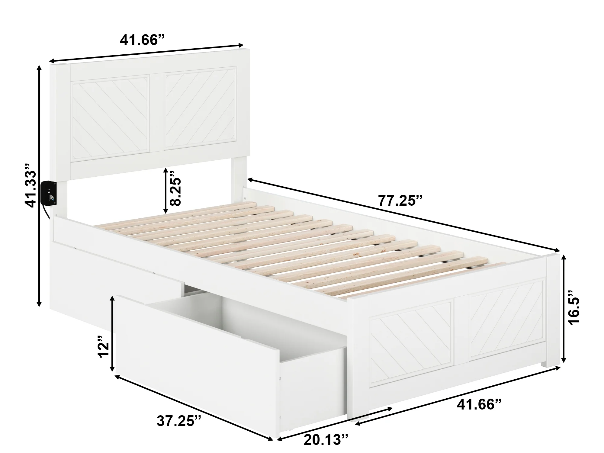 AFI Canyon White Solid Wood Platform Bed with Matching Footboard & Storage Drawers, Twin
