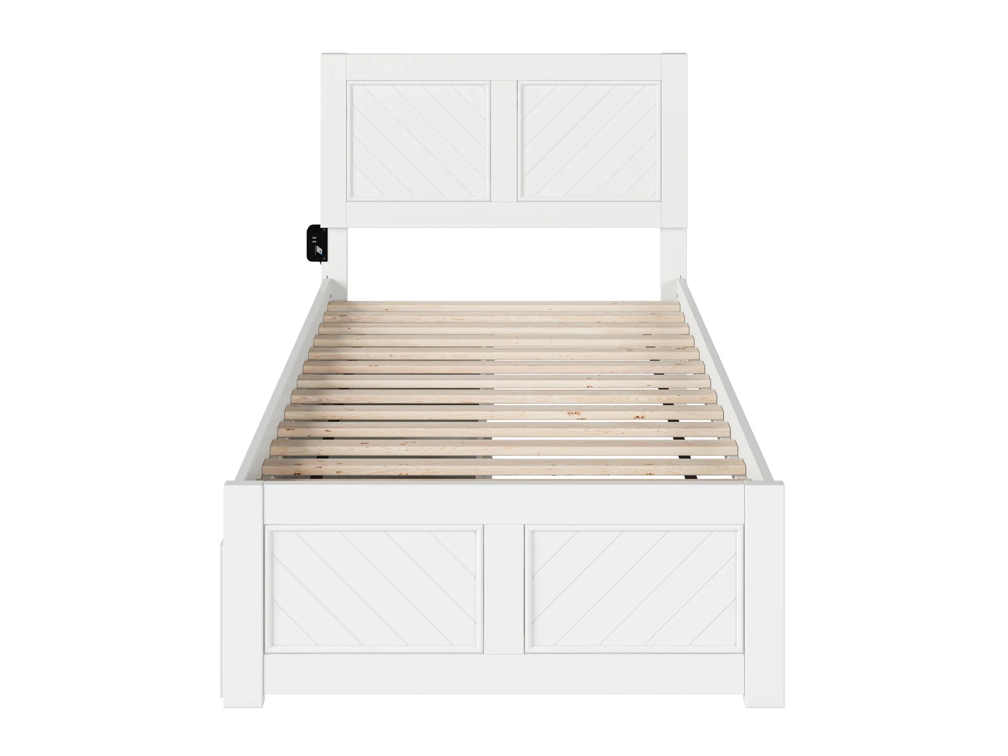 AFI Nantucket Twin Size Platform Bed with Matching Footboard & Twin Trundle in White
