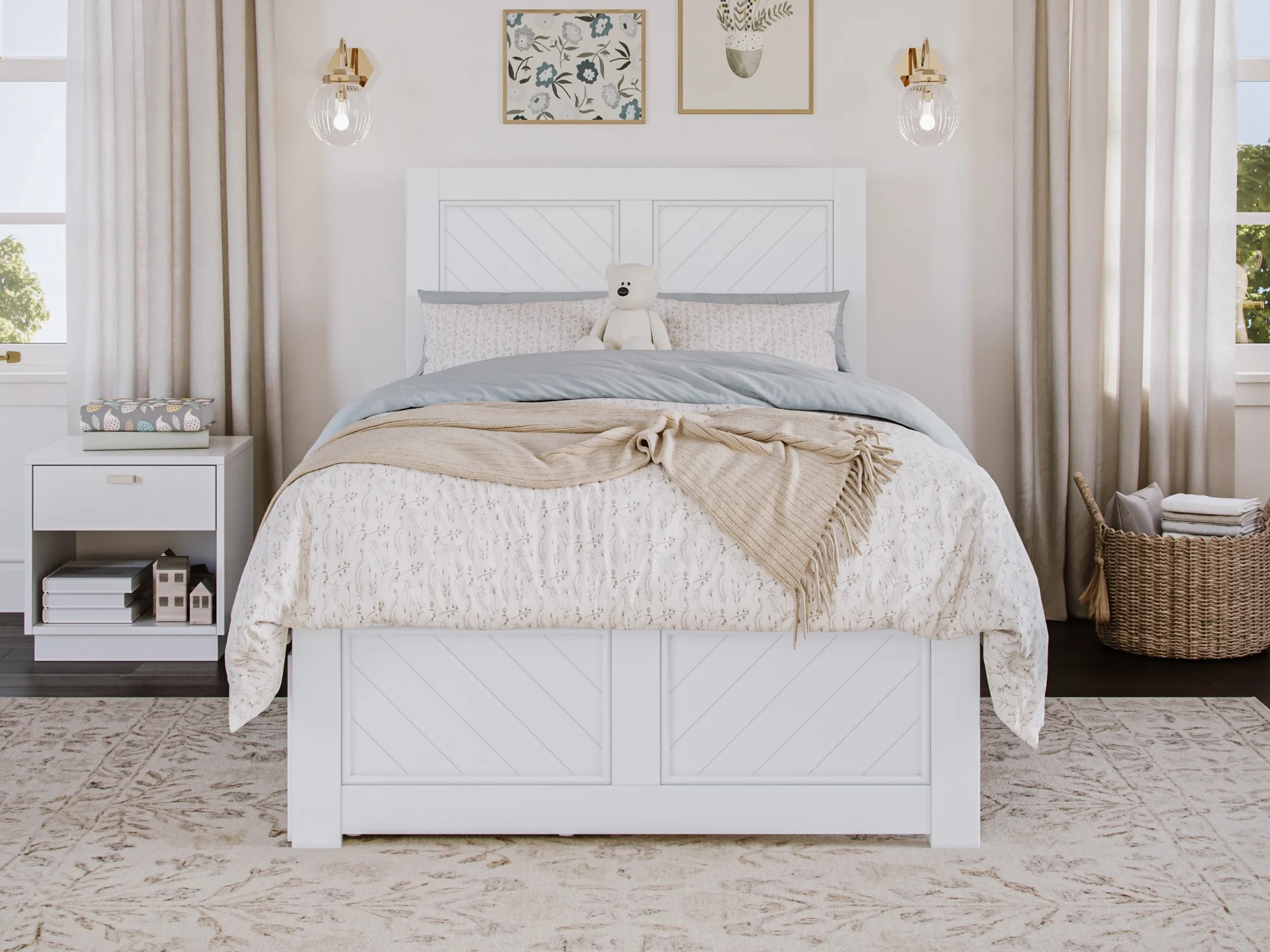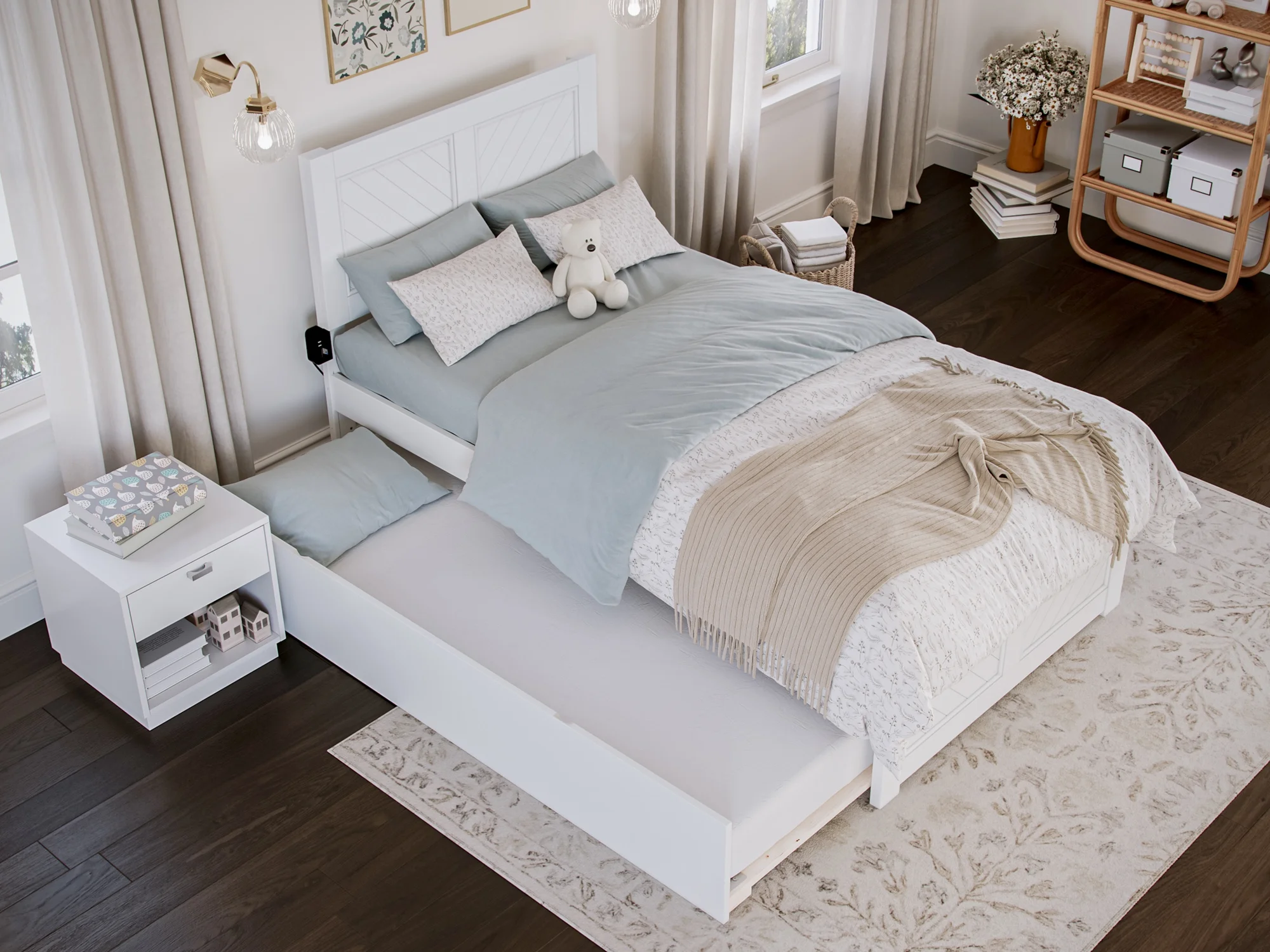 AFI Canyon White Solid Wood Platform Bed with Matching Footboard & Twin Trundle, Twin