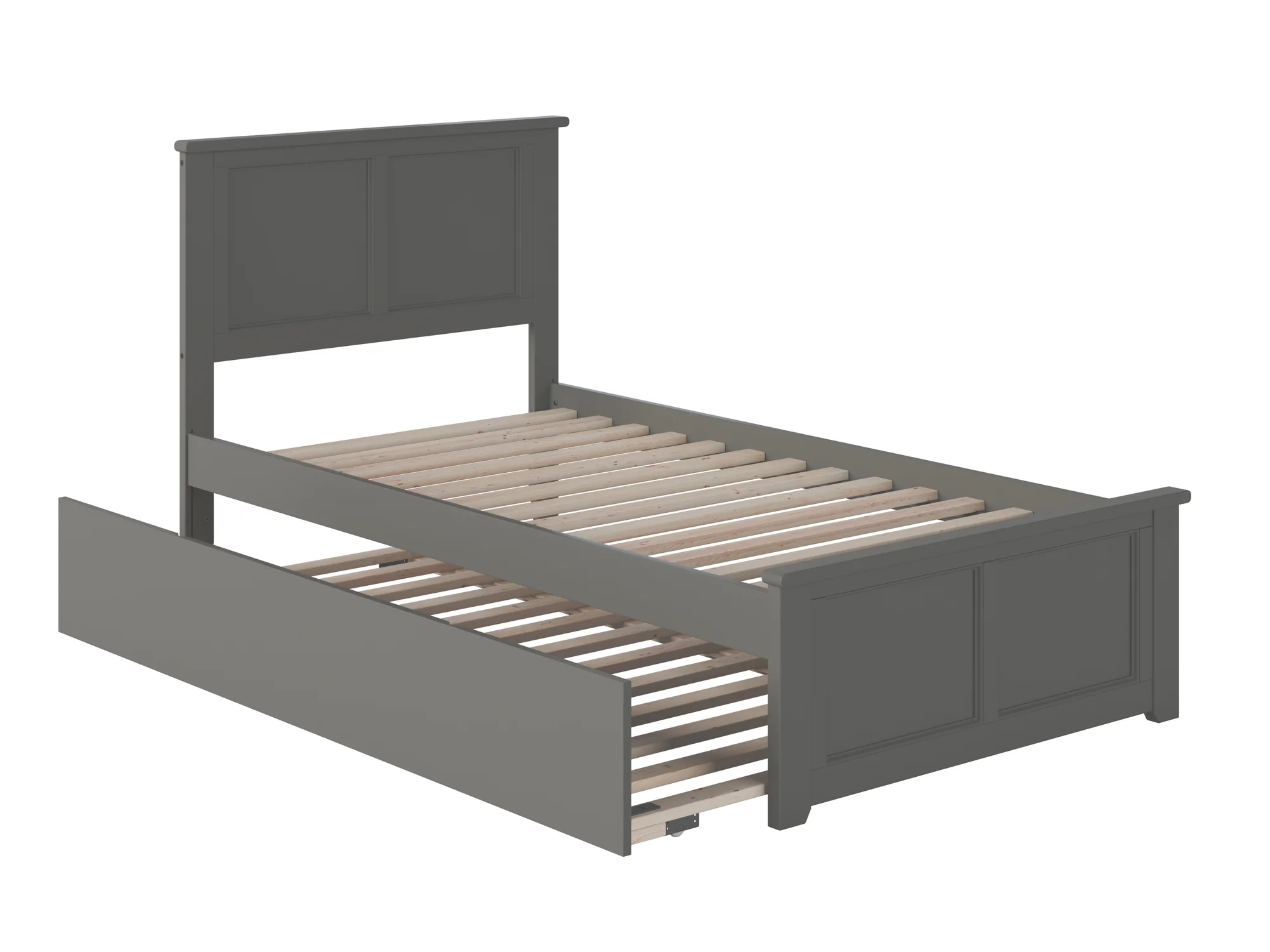 AFI Madison Twin Wood Platform Bed with Matching Footboard & Twin Trundle in Grey