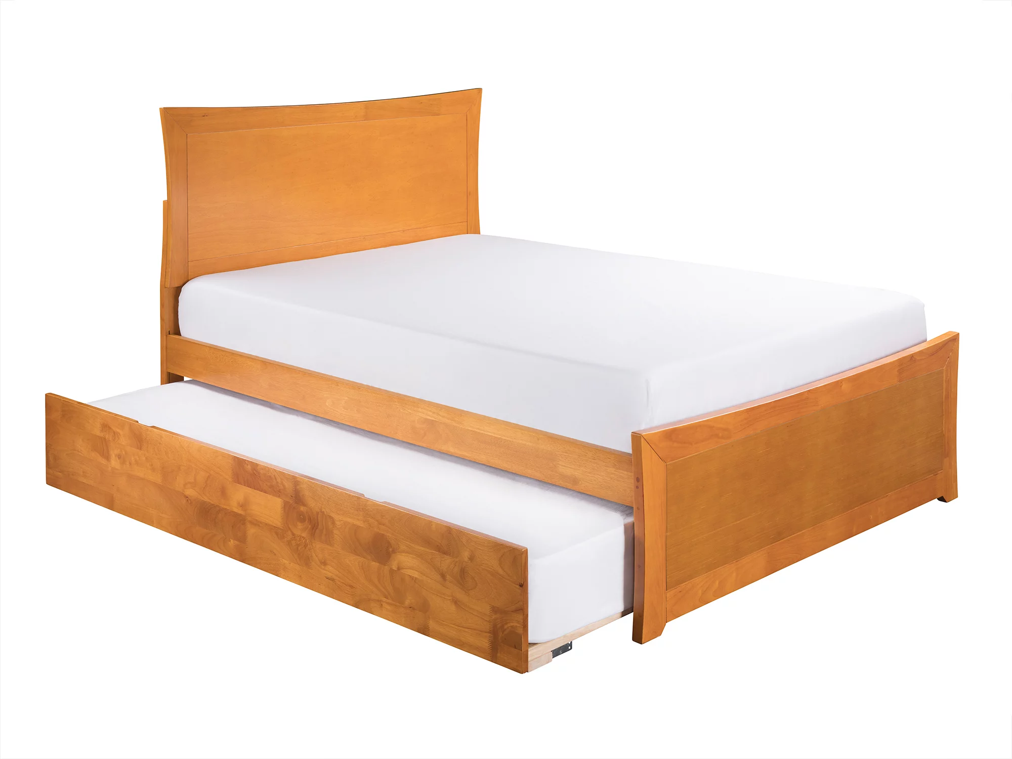 AFI Metro Full Size Solid Wood Platform Bed with Matching Footboard and Twin Trundle in Caramel Latte