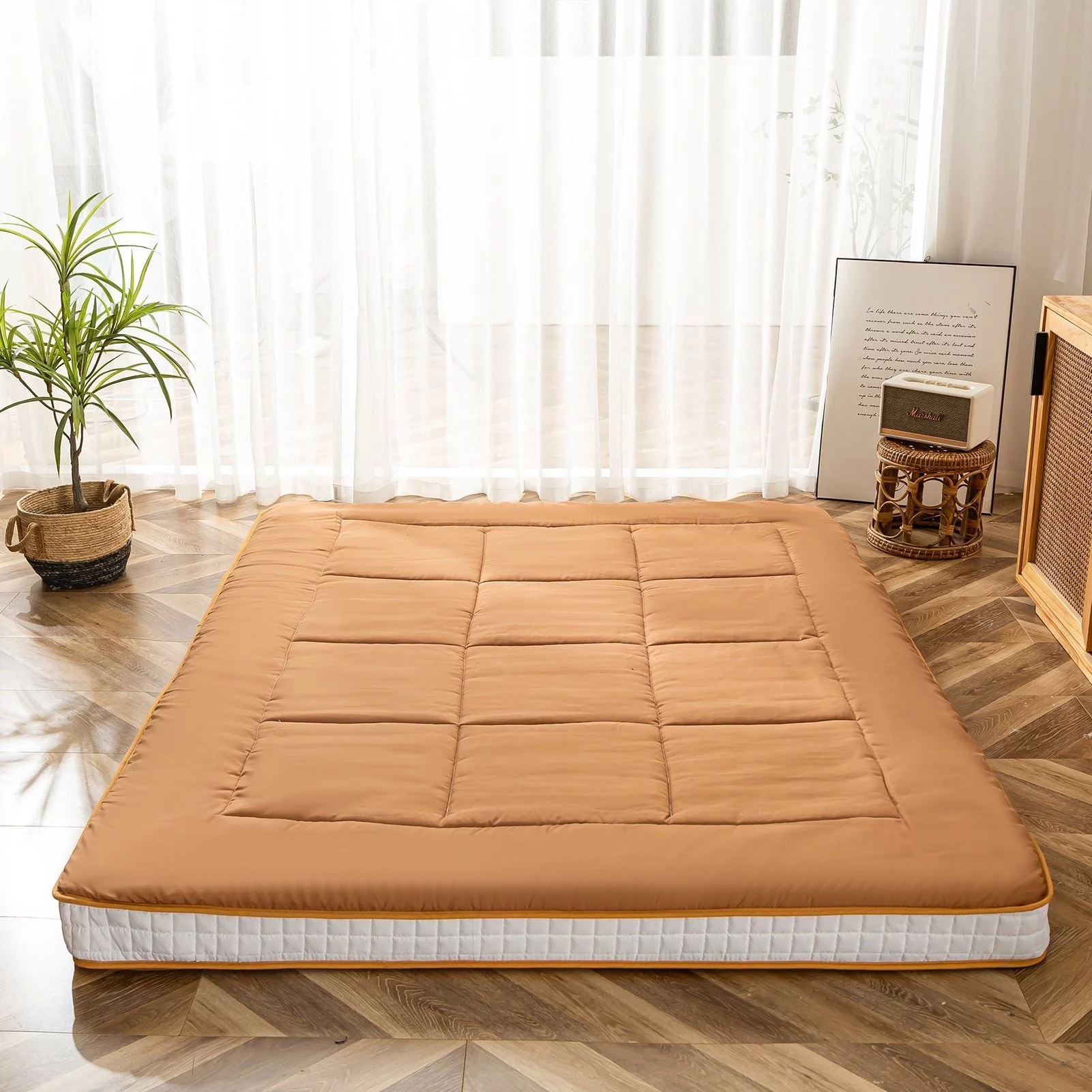 COSMOGO Futon Mattress, Padded Japanese Floor Mattress Quilted Bed Mattress Topper Light Brown - Queen