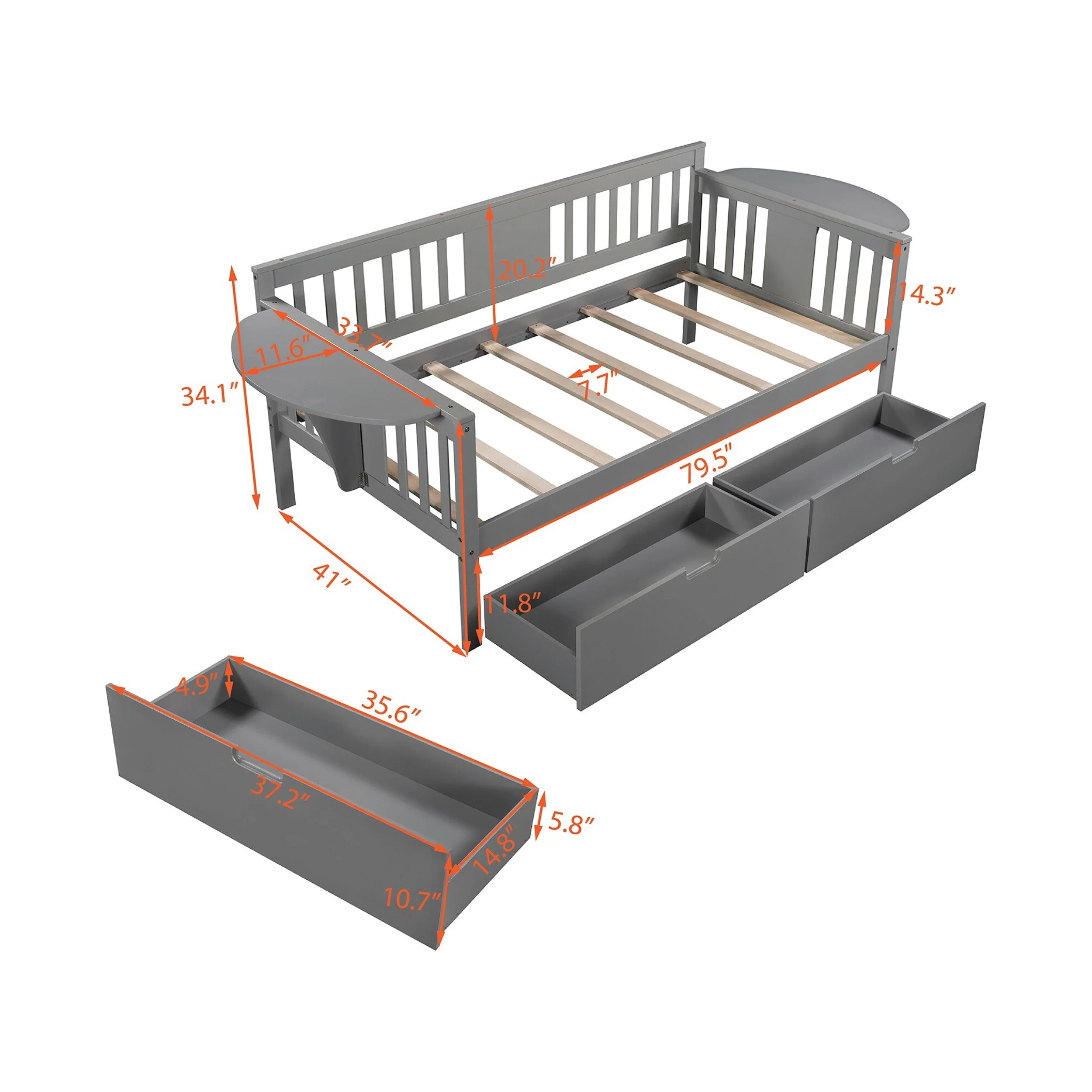 Unbranded Nica Twin size Daybed with Two Drawers, Wood Slat Support Grey 79.5"x 41"