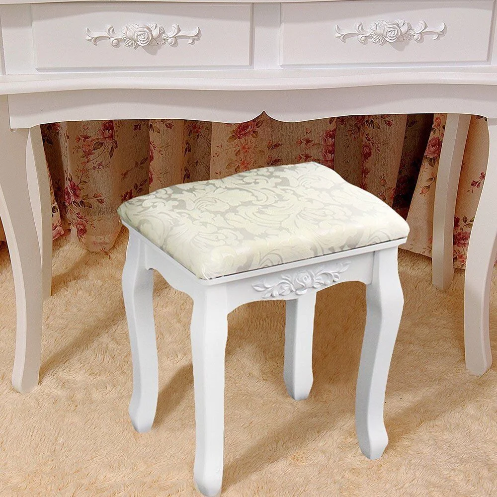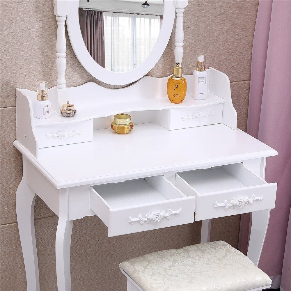 Led Lights Makeup Vanity Set Dressing Table With Stool Mirror With 4 Drawers