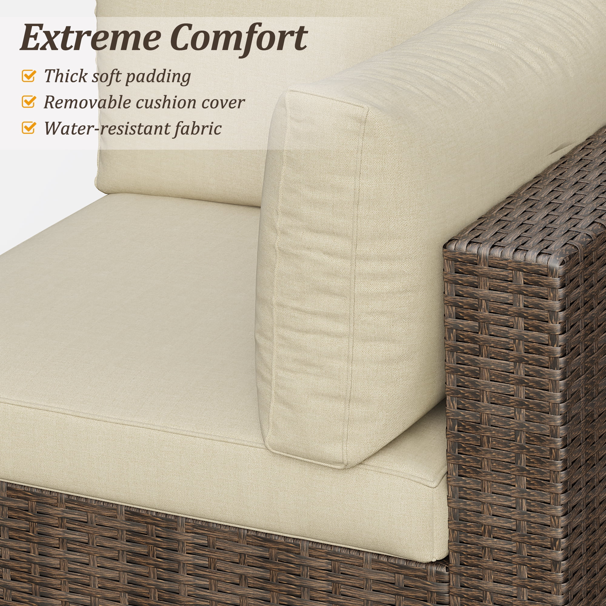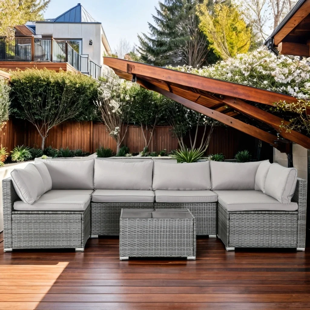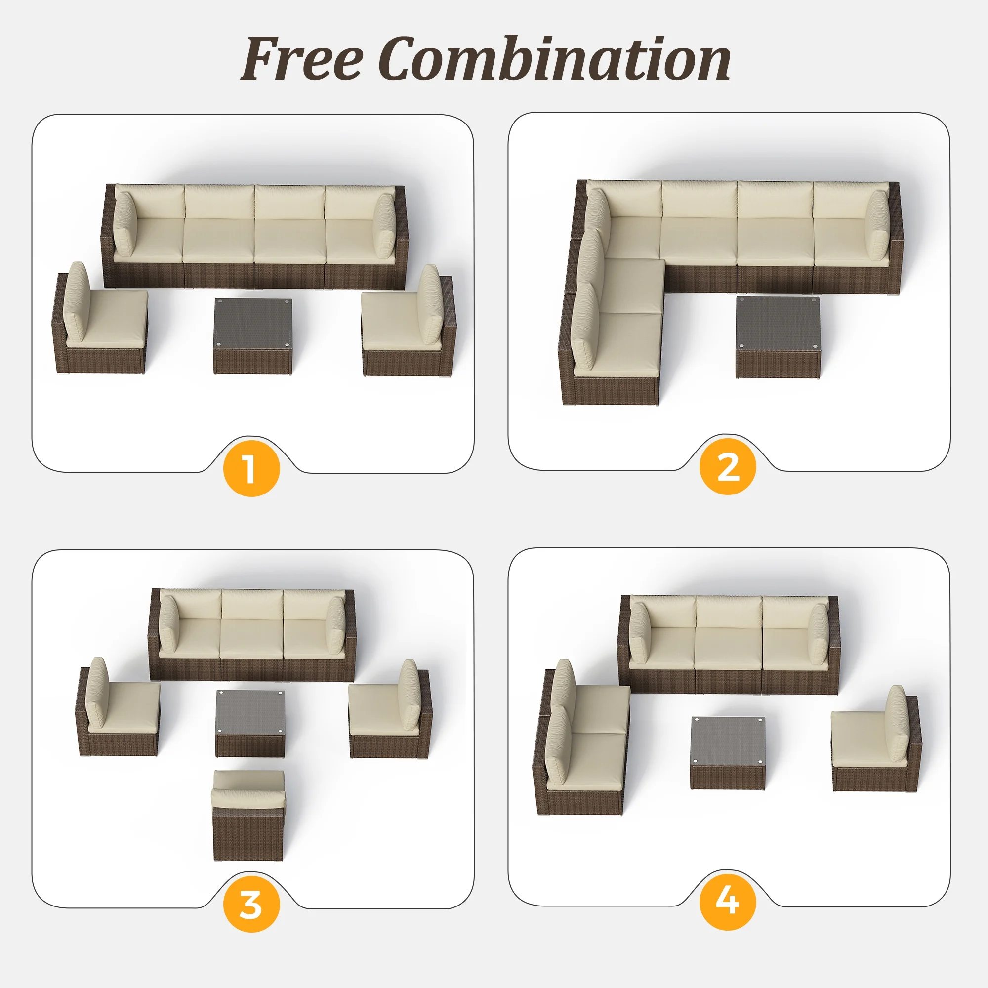 Royalcraft 7 Pieces Outdoor Sectional Sofa Set All-Weather Rattan Conversation Set with Table, Beige
