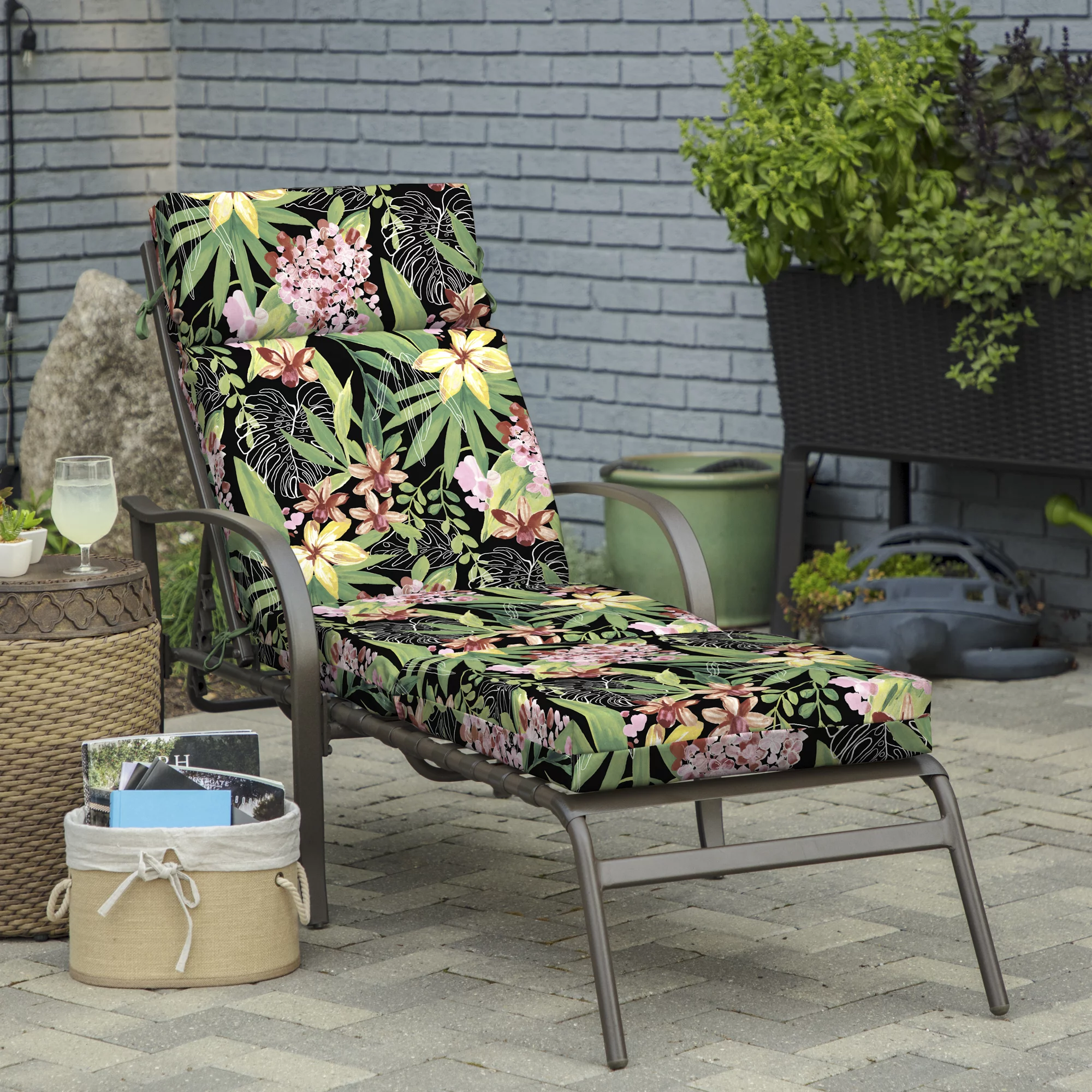 Better Homes & Gardens Black Tropical 72 x 21 in. Outdoor Chaise Lounge Cushion with Enviroguard
