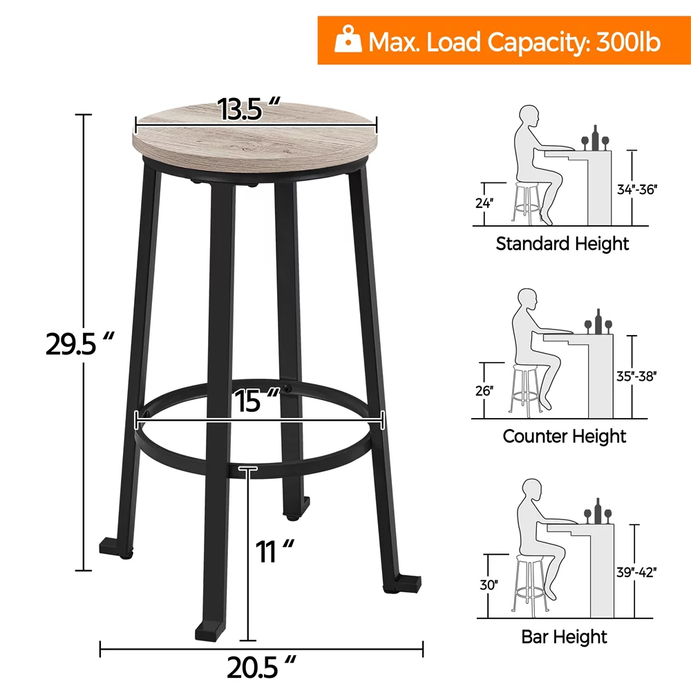 Topeakmart 2pcs 29.5''H Backless Metal Frame Bar Stools with Round Top, Gray