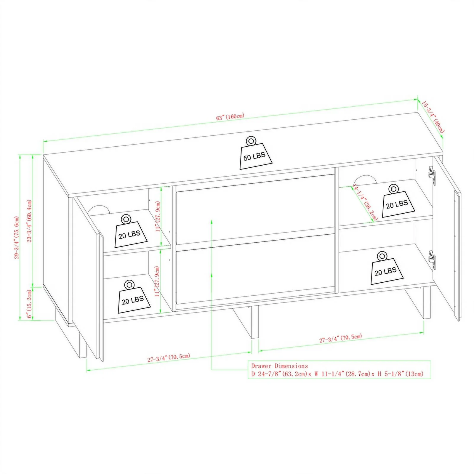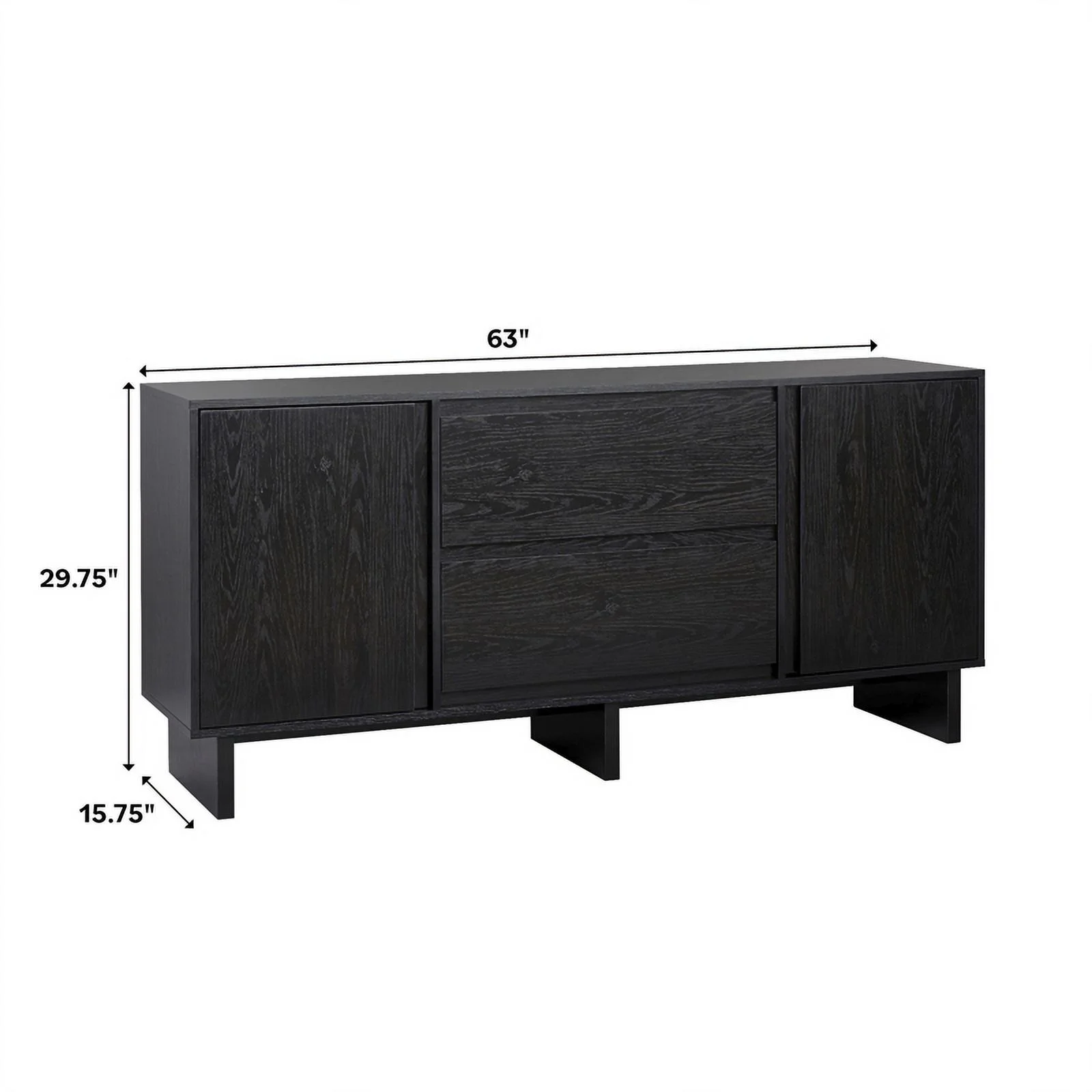 Pemberly Row Modern Beveled 2-Door 2-Drawer Wood Sideboard 63" - Black