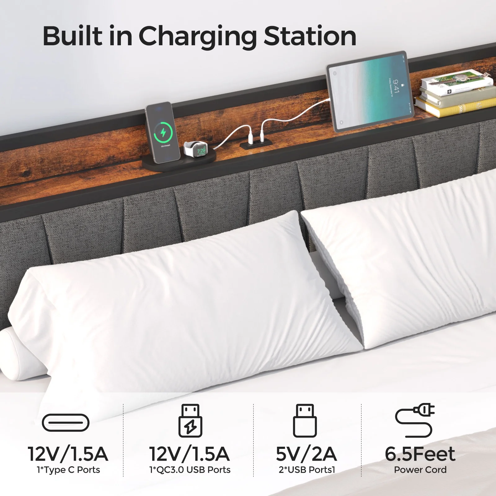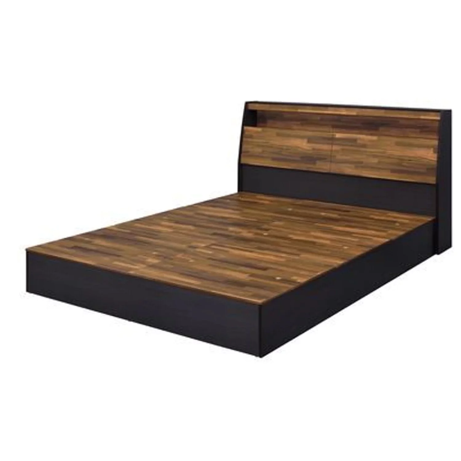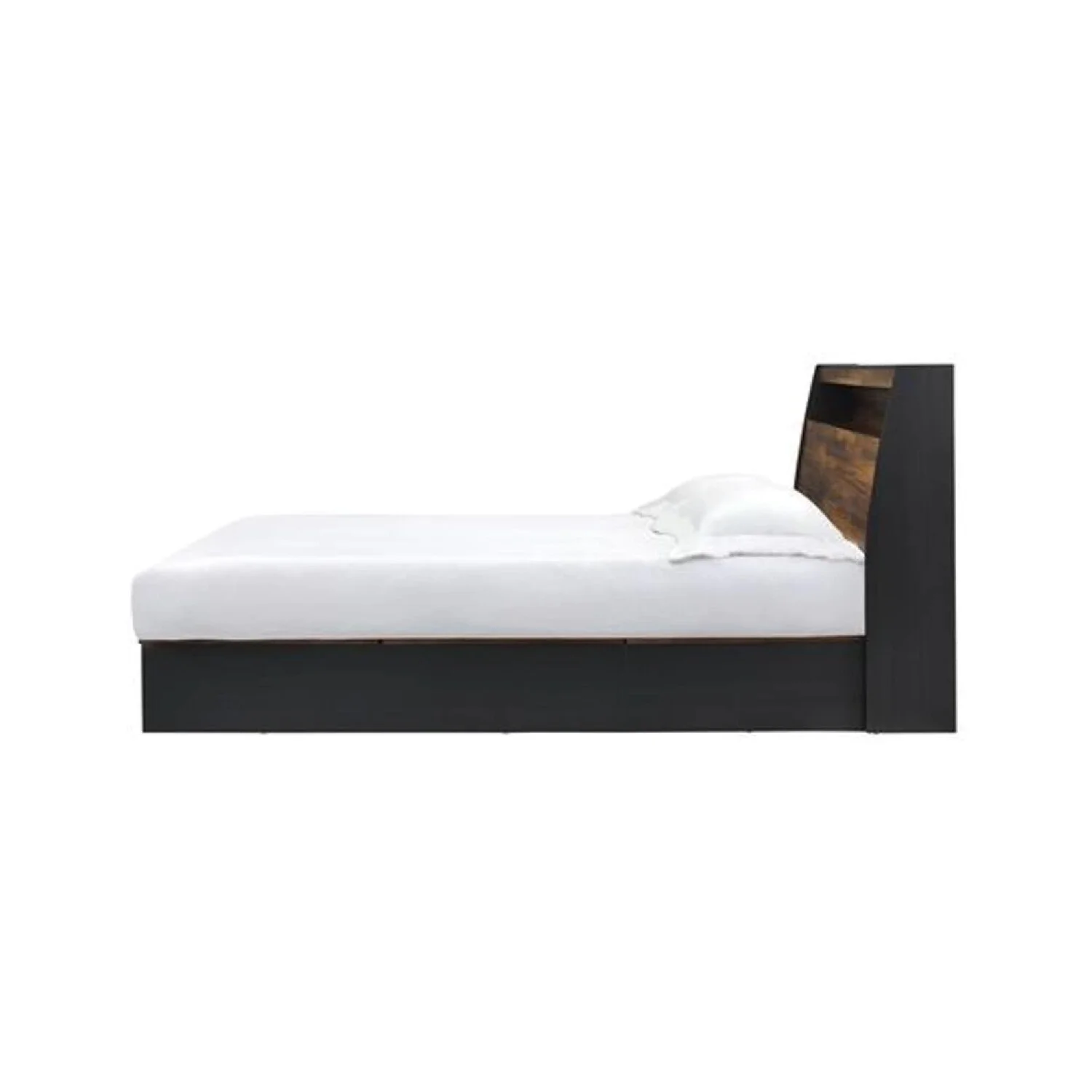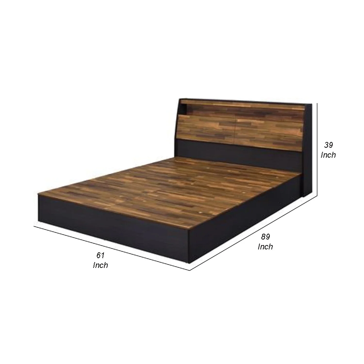 Benjara Queen Bed with 6 Under Compartments and Storage Headboard, Brown and Black