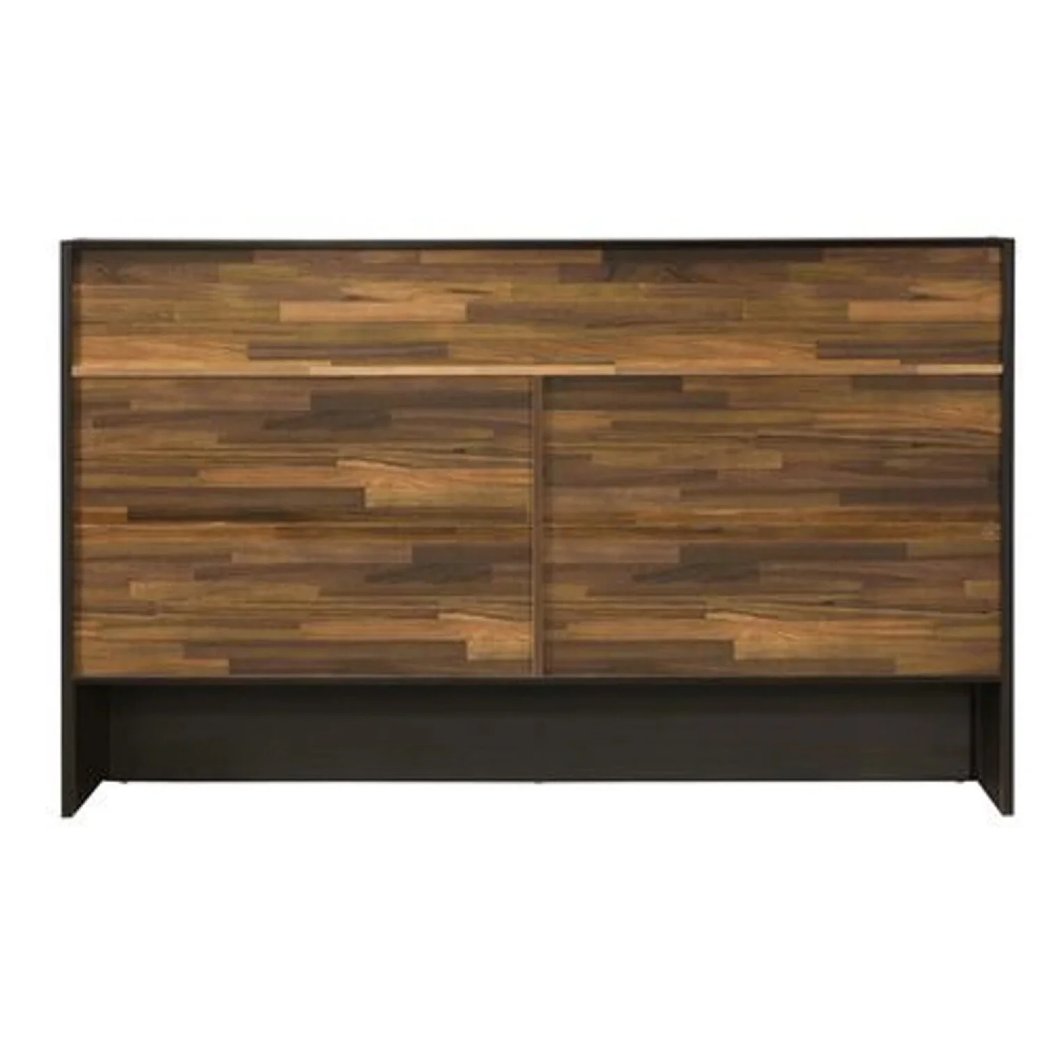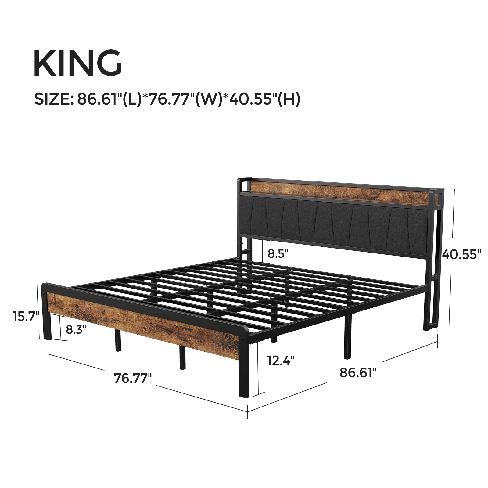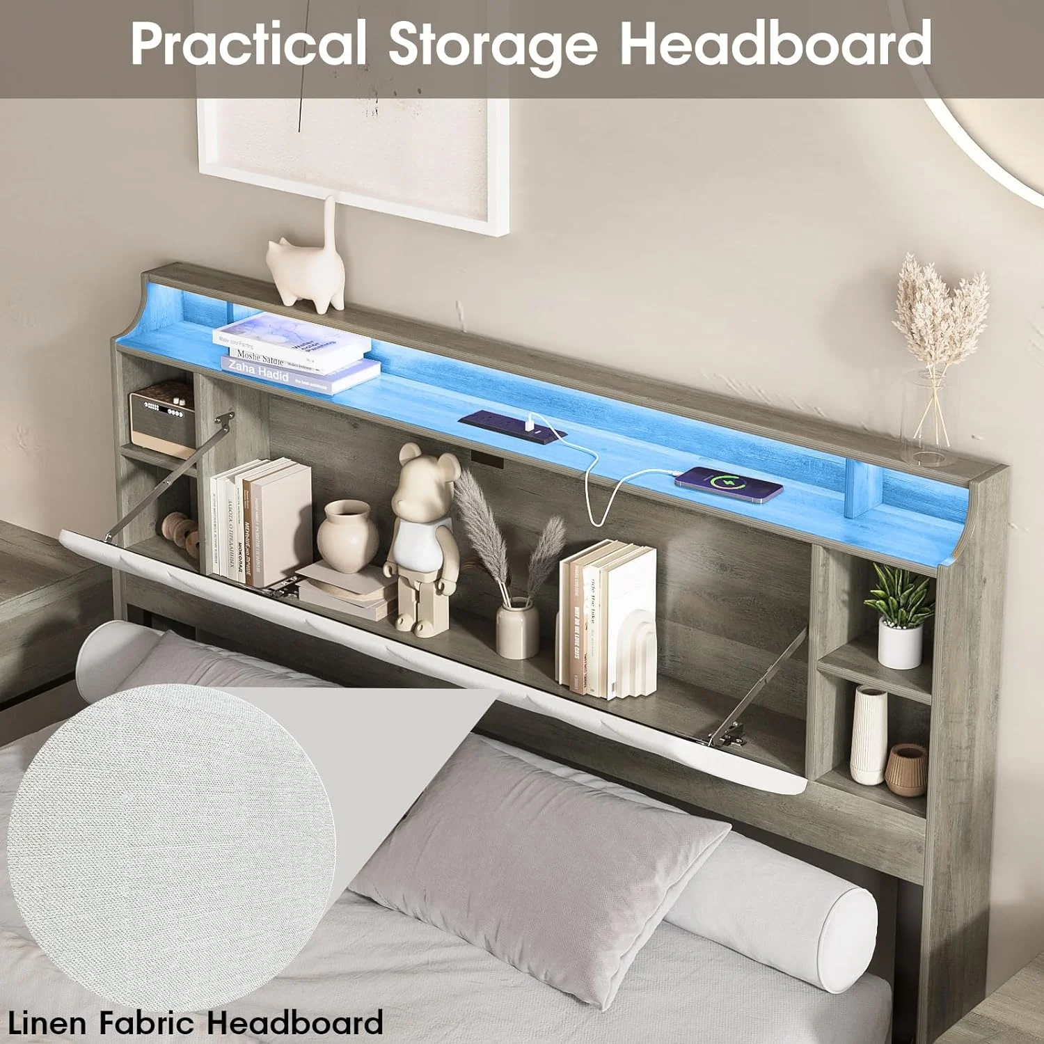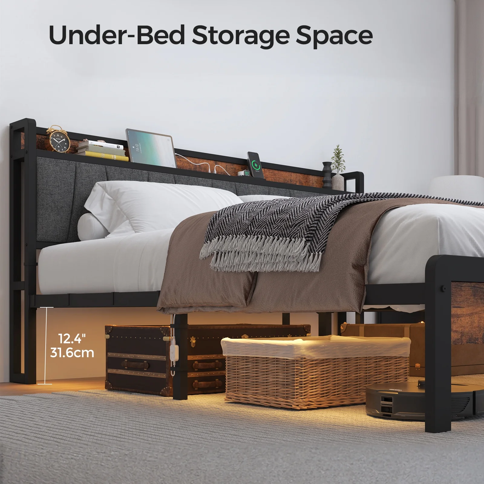 Benjara Queen Bed with 6 Under Compartments and Storage Headboard, Brown and Black