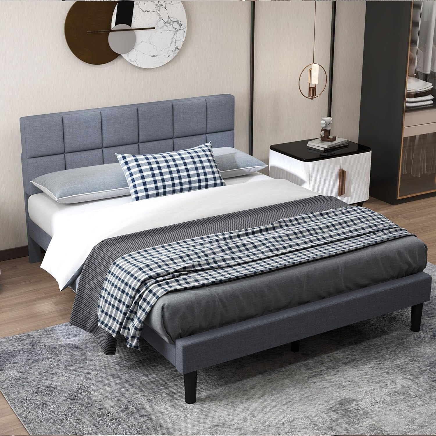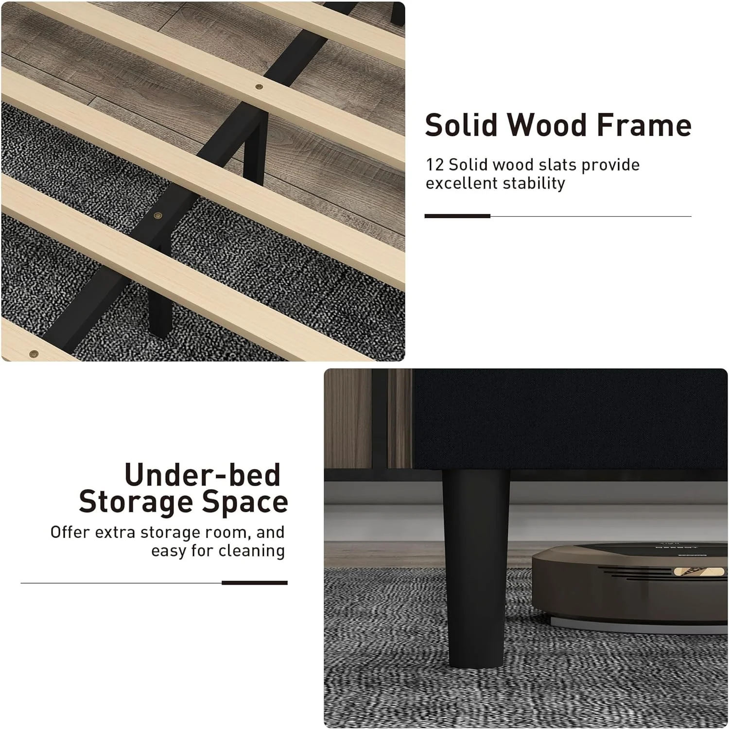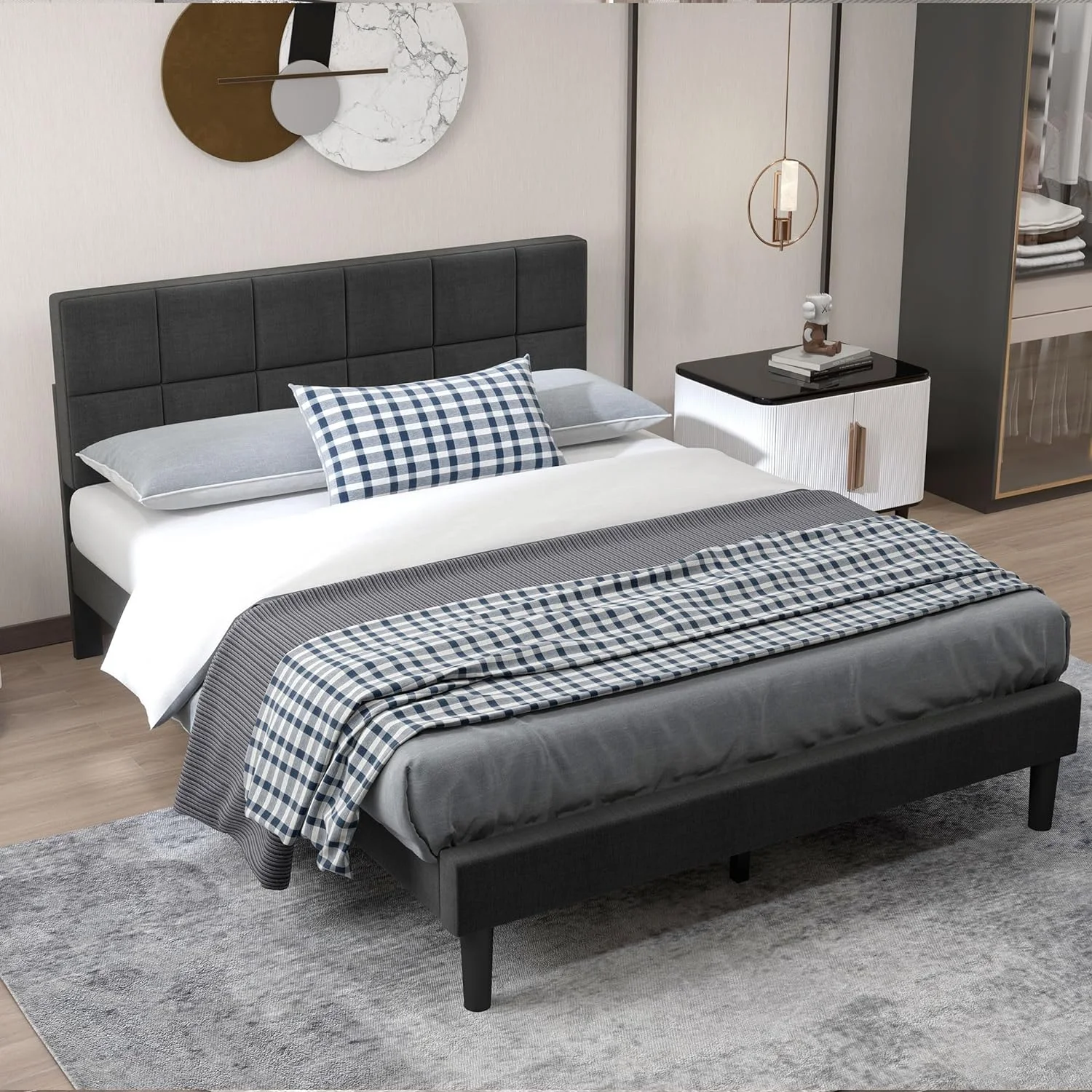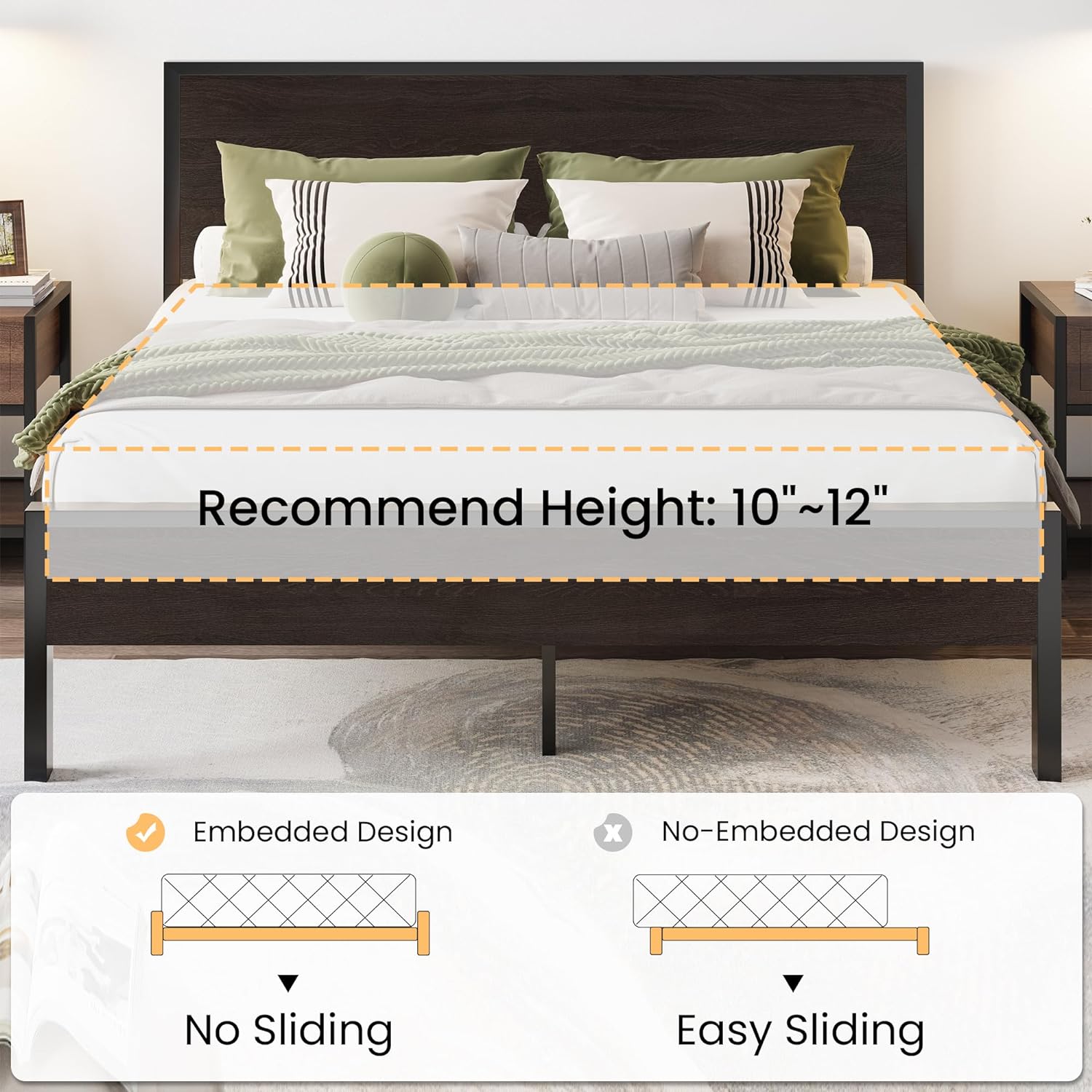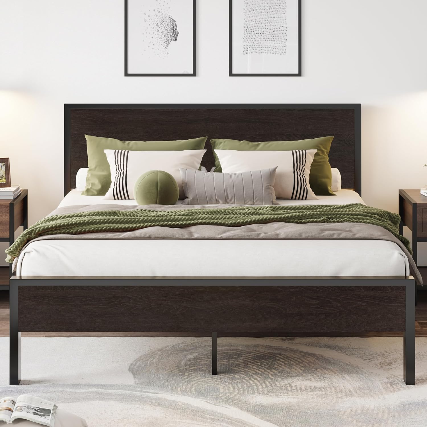 Docooler Modern Wooden Platform Bed with Headboard, Queen Stylish and Sturdy Furniture for a Cozy Bedroom