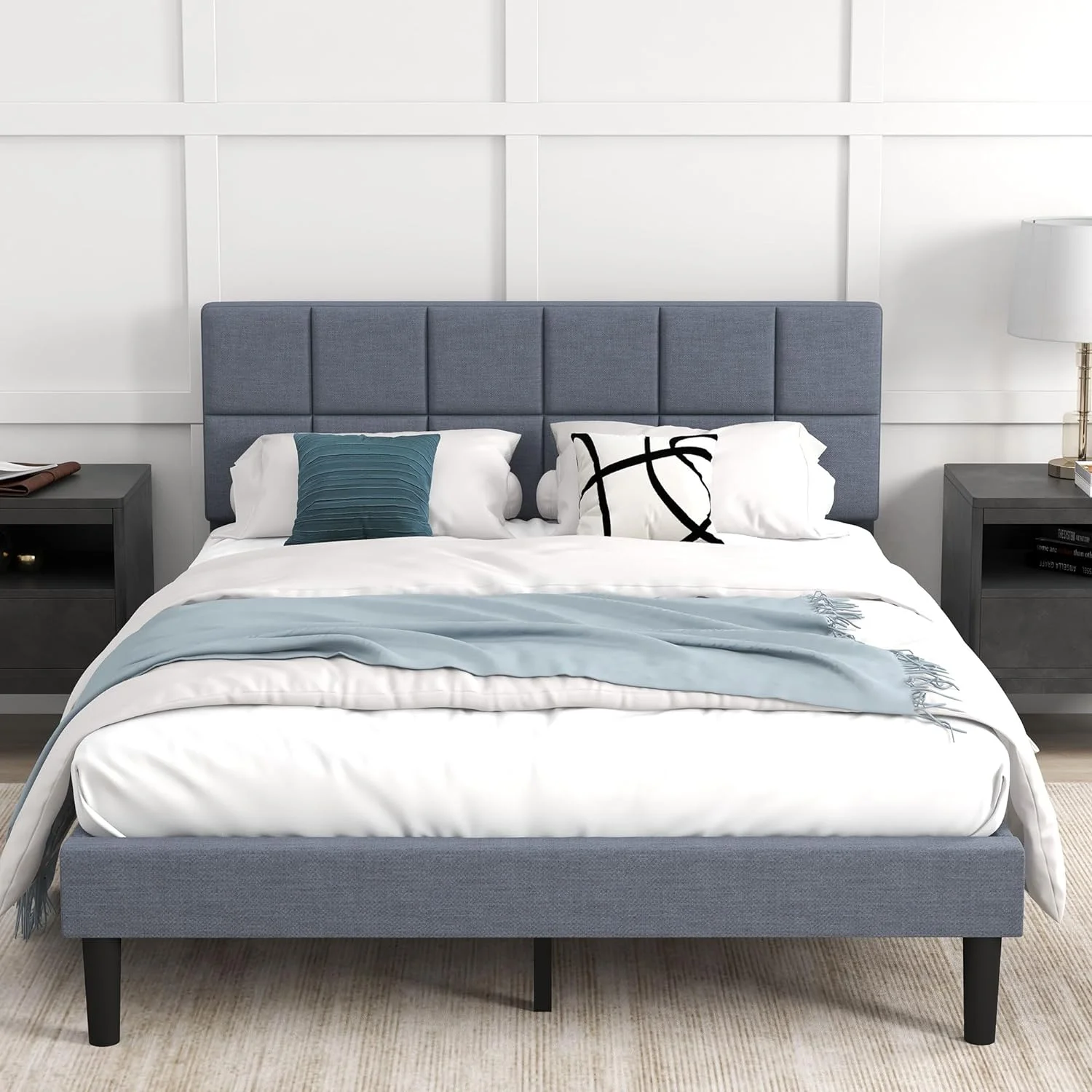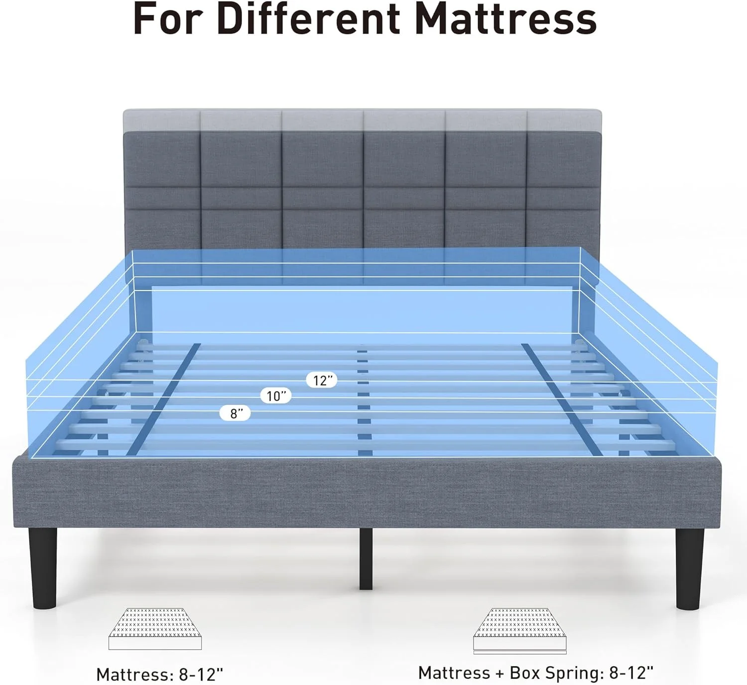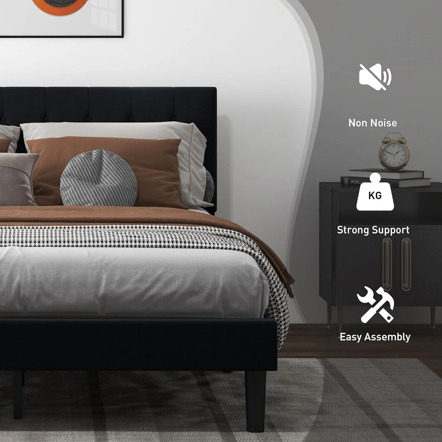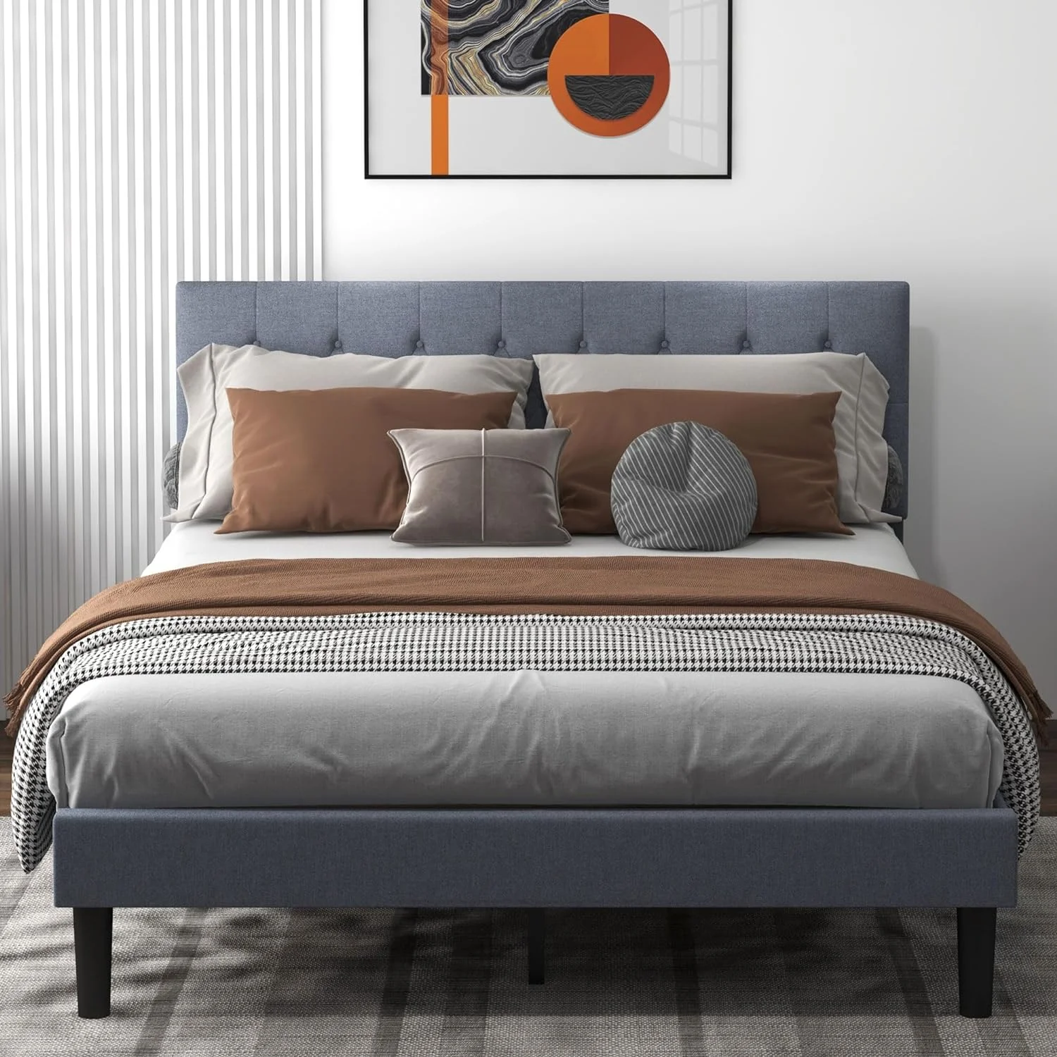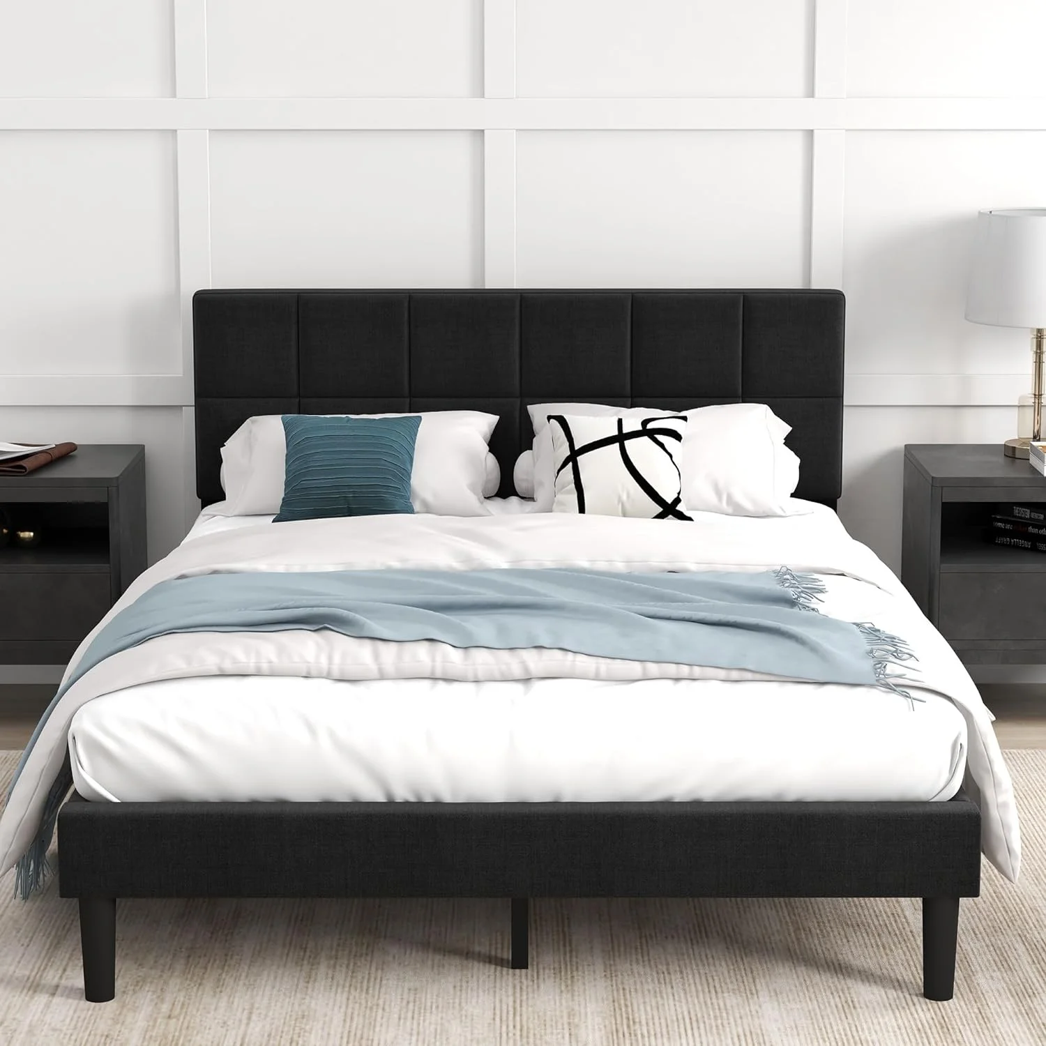 Docooler Modern Wooden Platform Bed with Headboard, Queen Stylish and Sturdy Furniture for a Cozy Bedroom