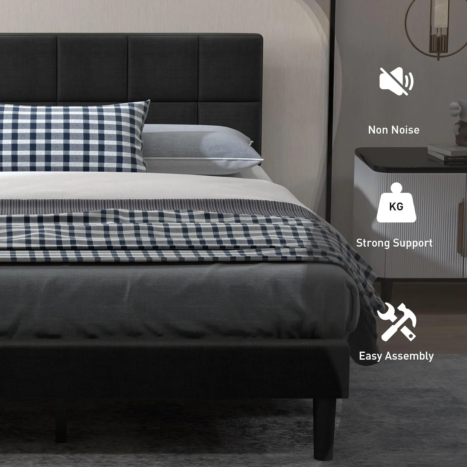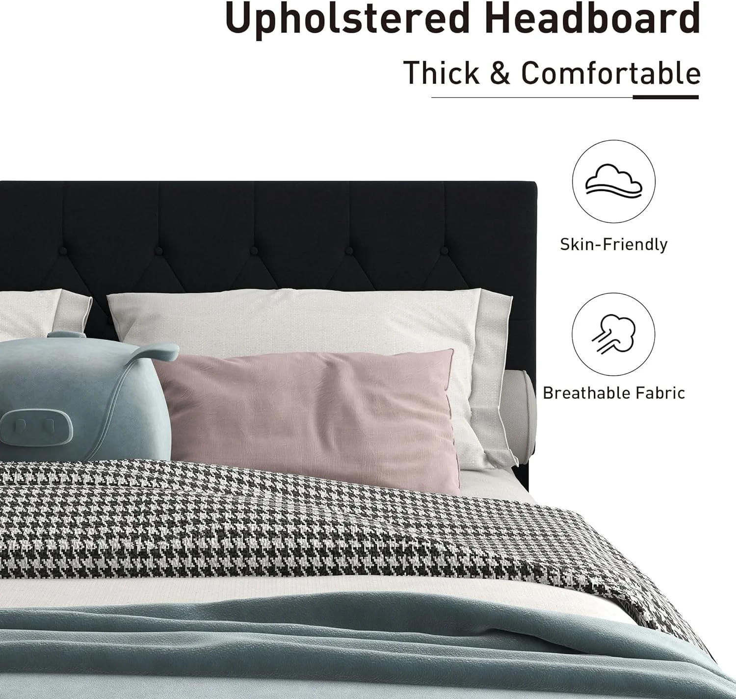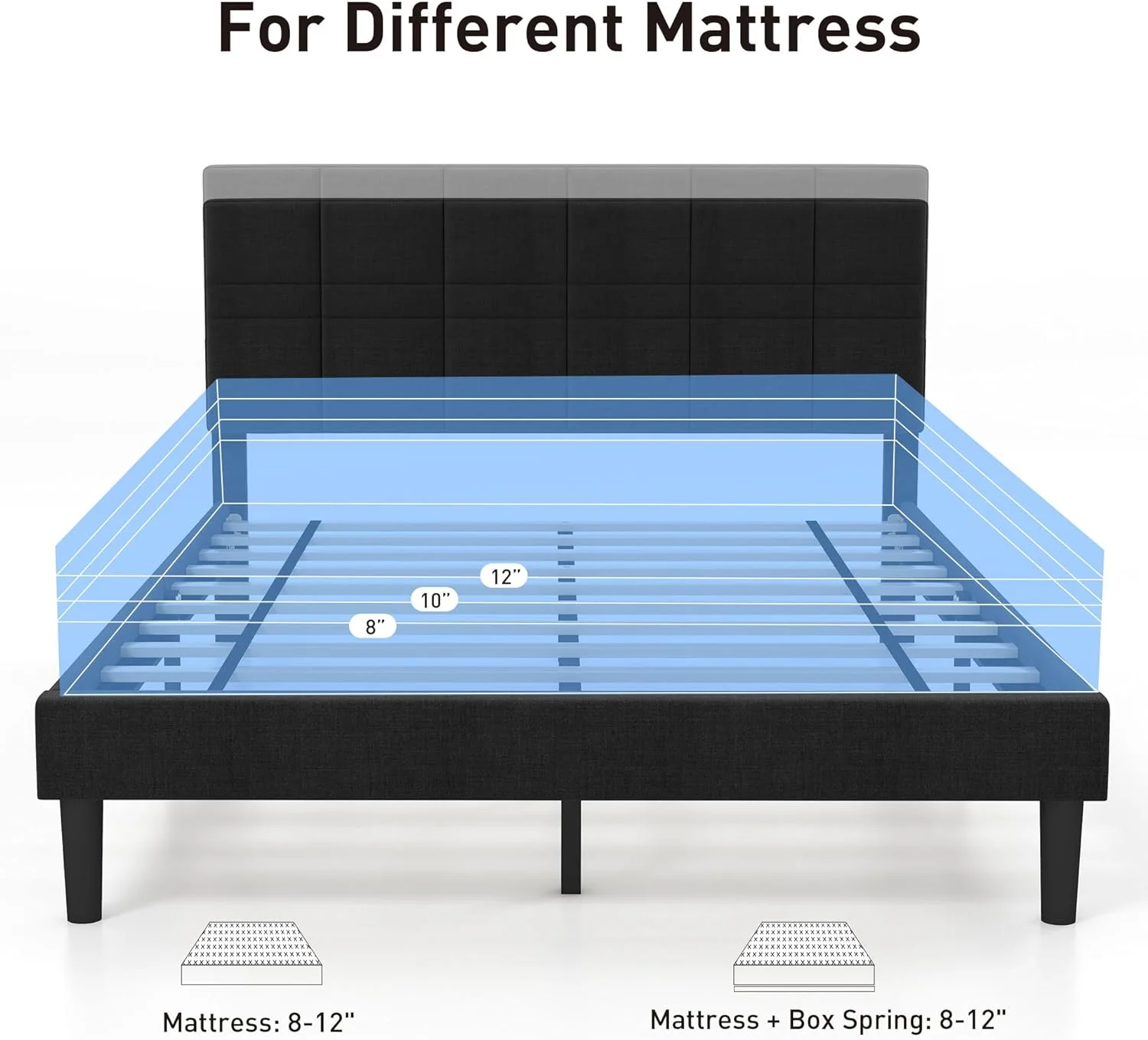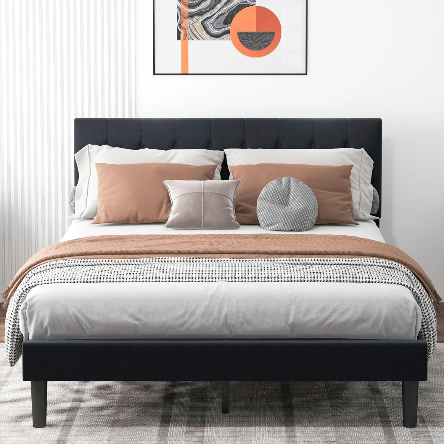 Docooler Modern Wooden Platform Bed with Headboard, Queen Stylish and Sturdy Furniture for a Cozy Bedroom
