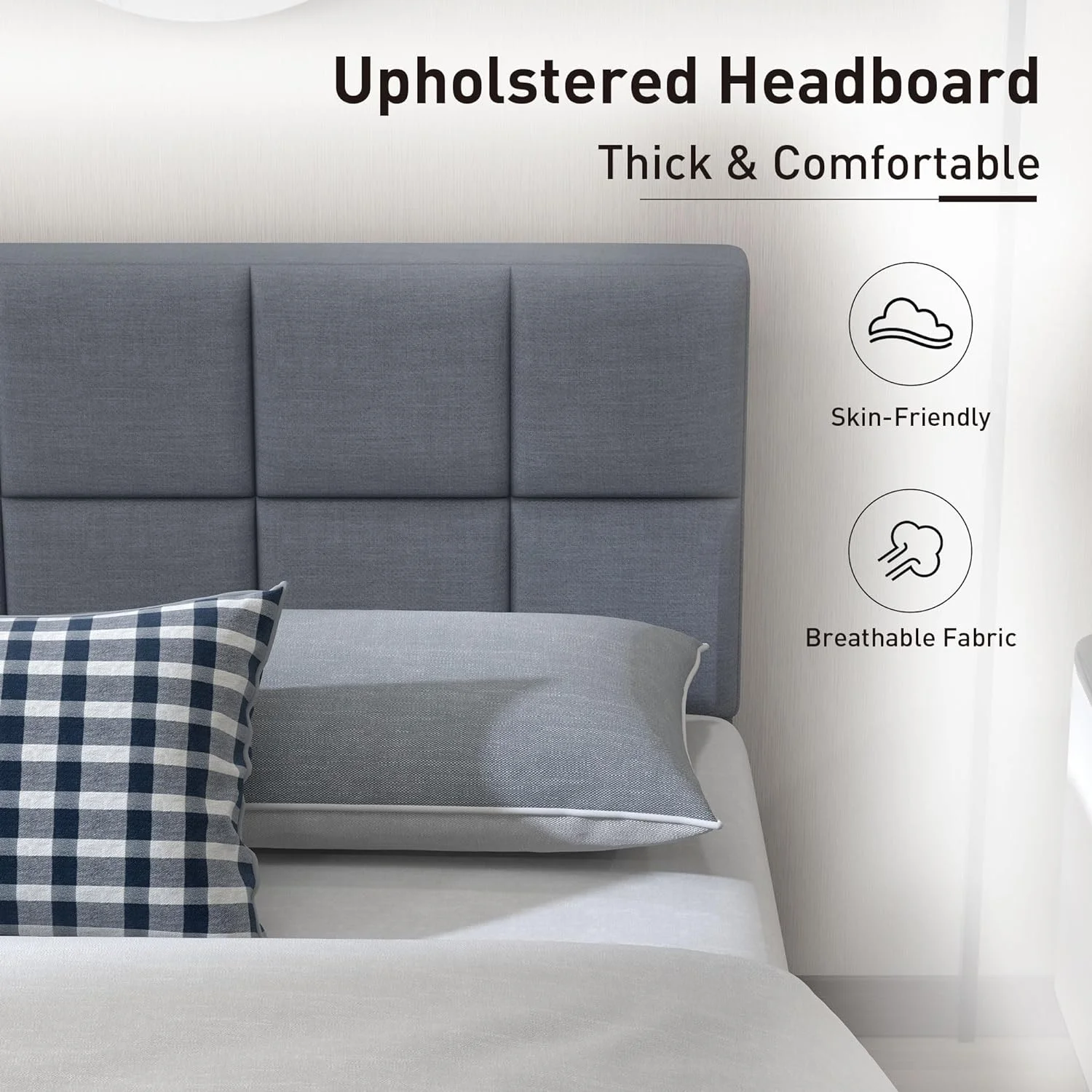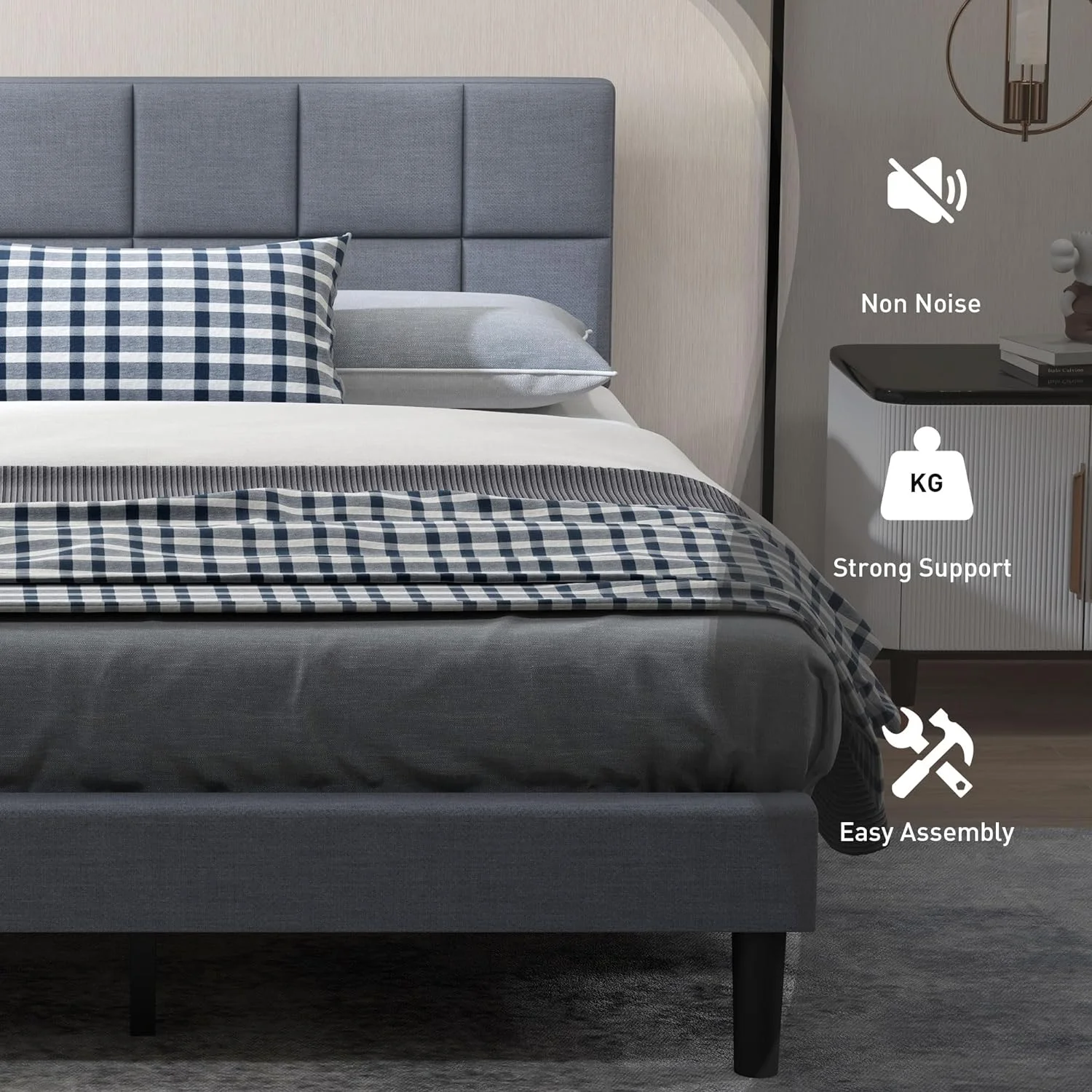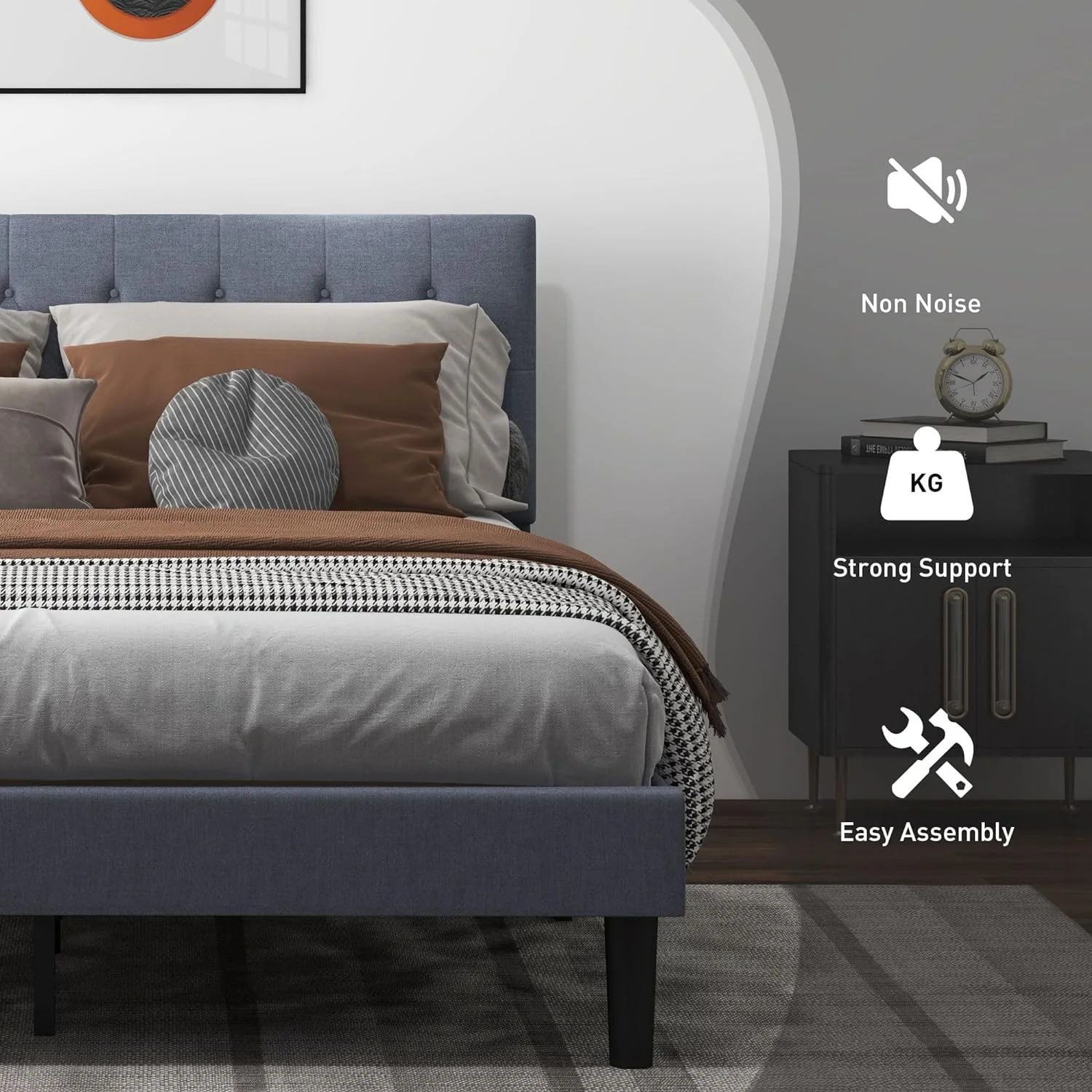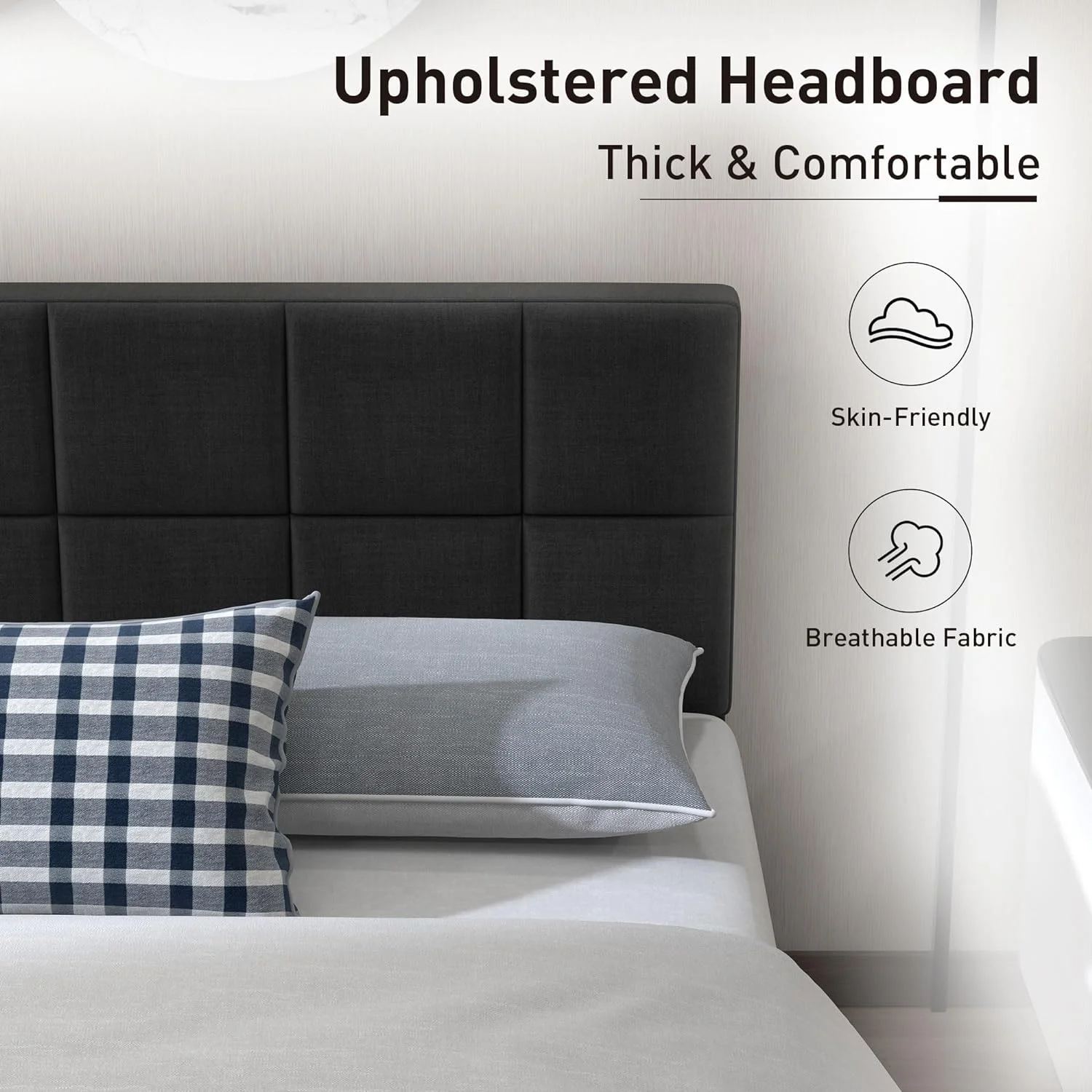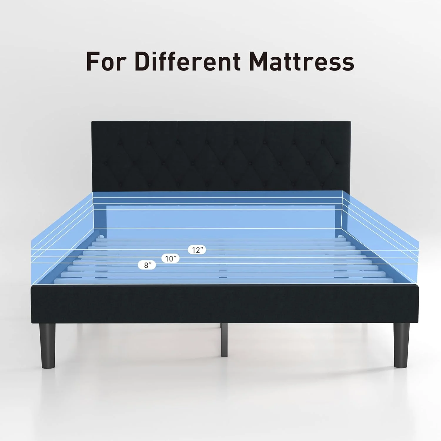 Docooler Modern Wooden Platform Bed with Headboard, Queen Stylish and Sturdy Furniture for a Cozy Bedroom