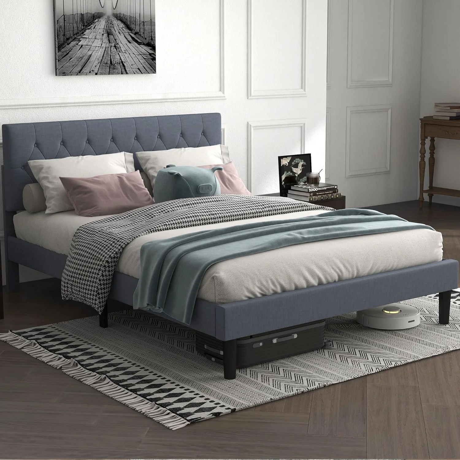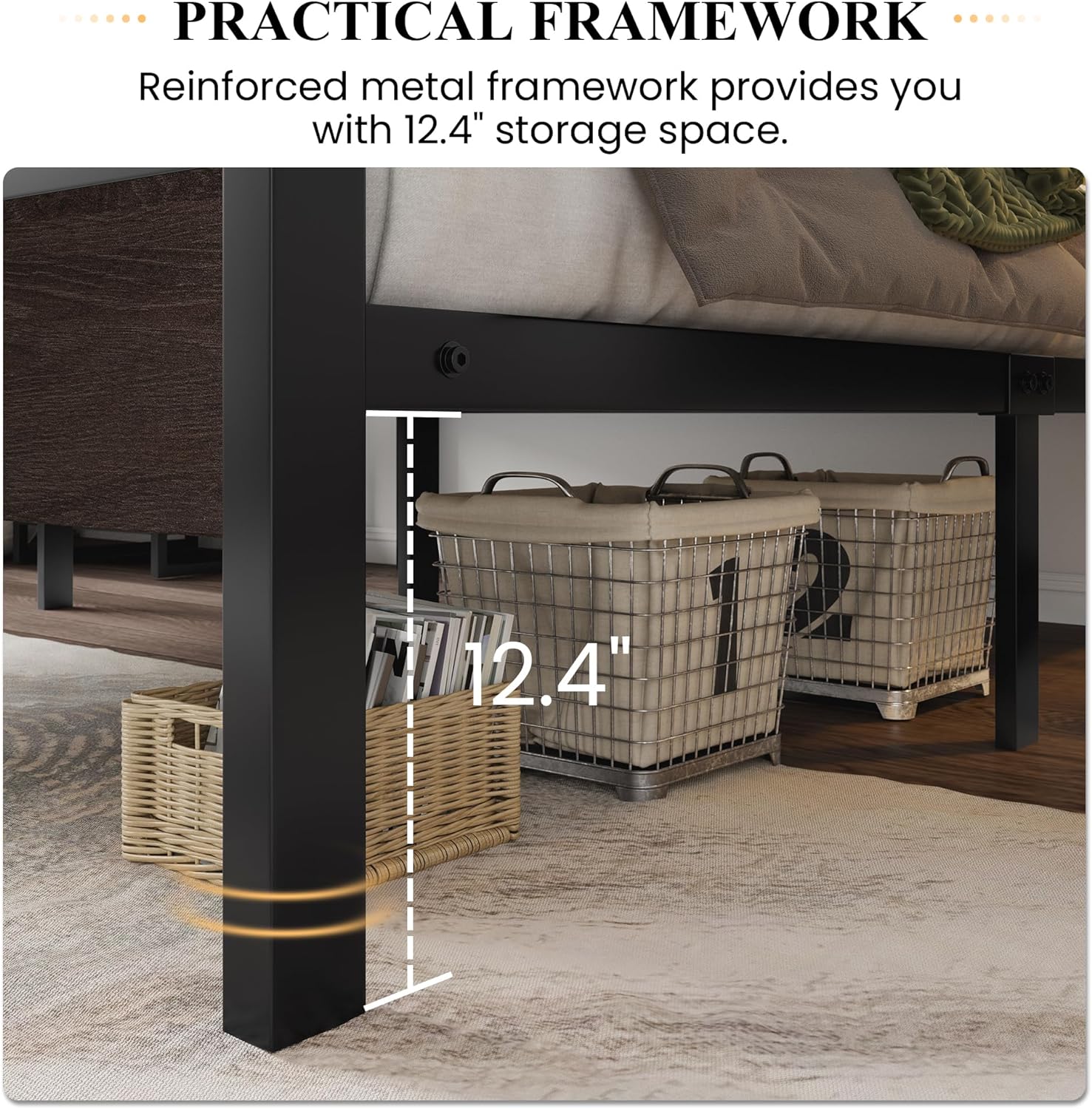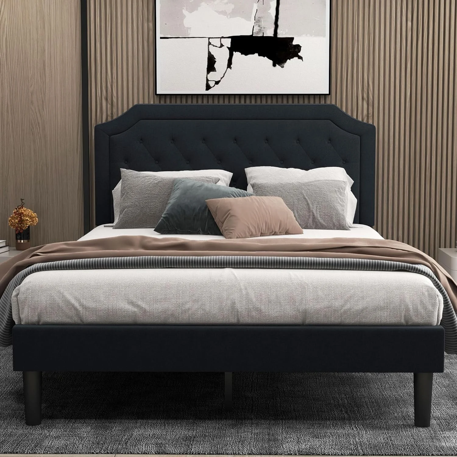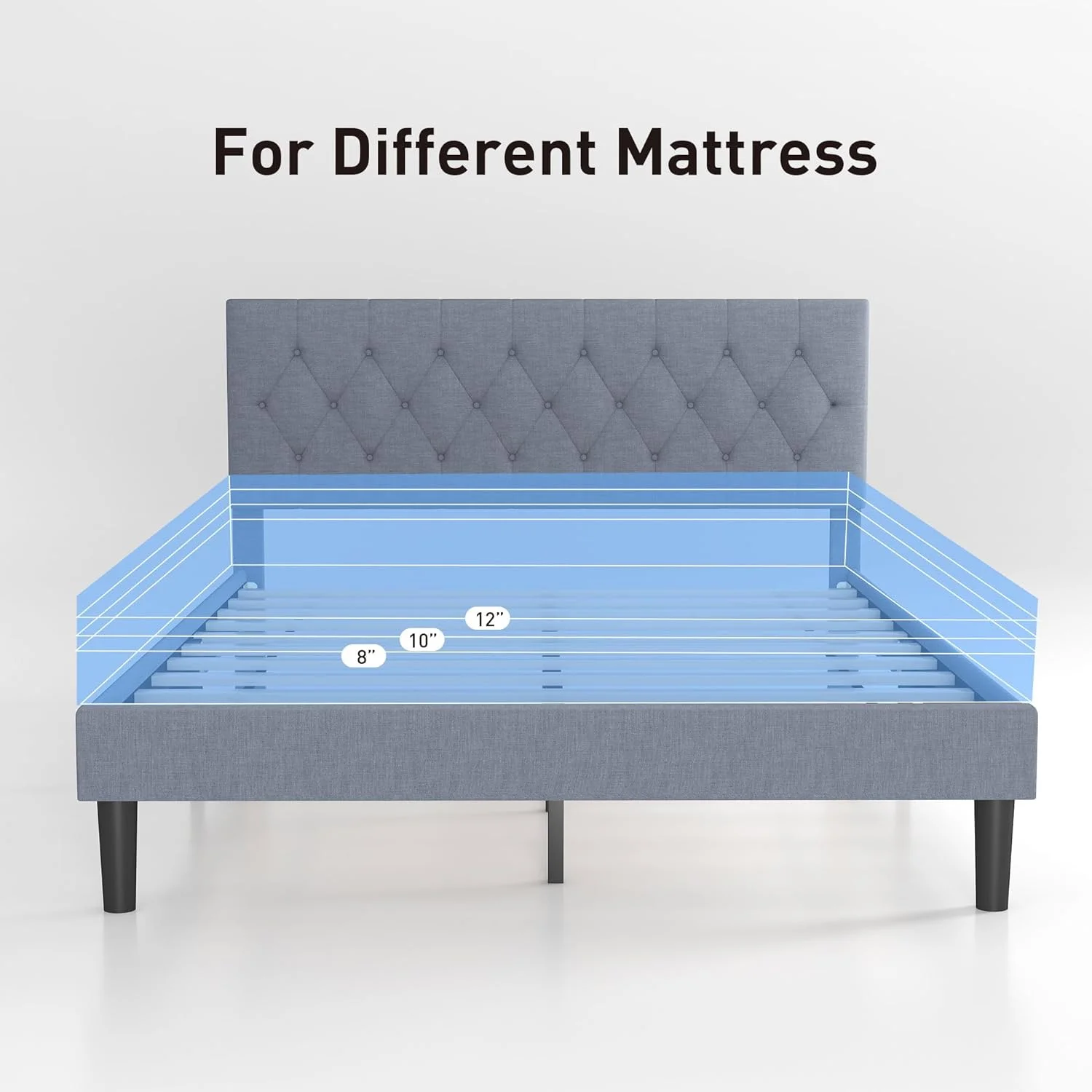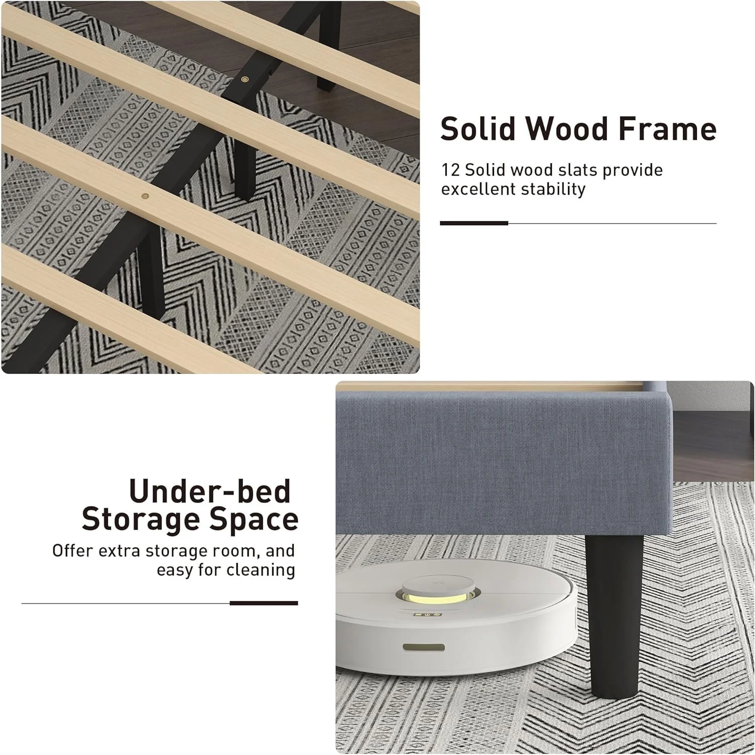 Docooler Modern Wooden Platform Bed with Headboard, Queen Stylish and Sturdy Furniture for a Cozy Bedroom