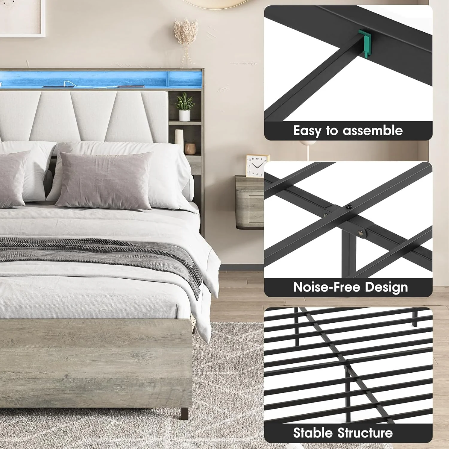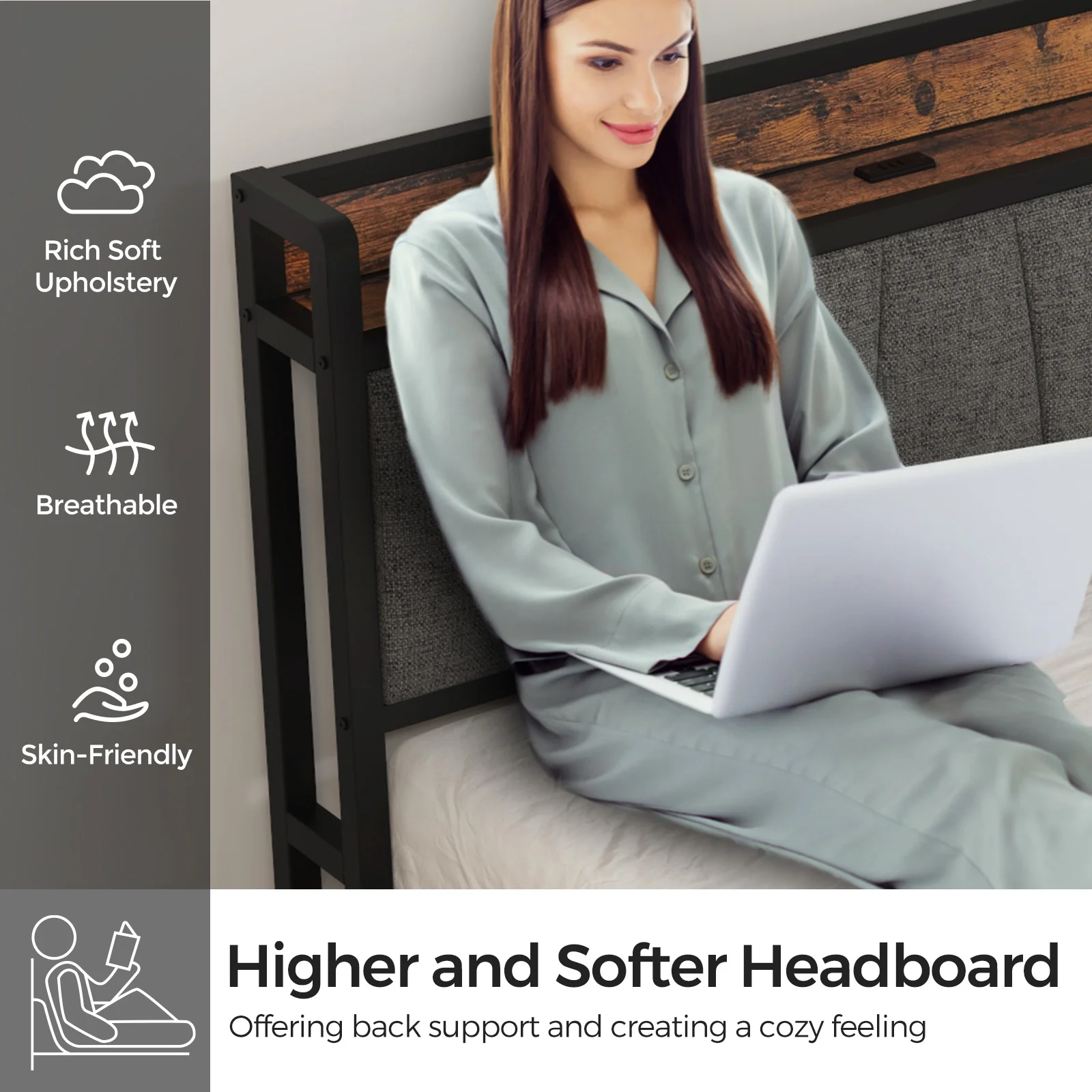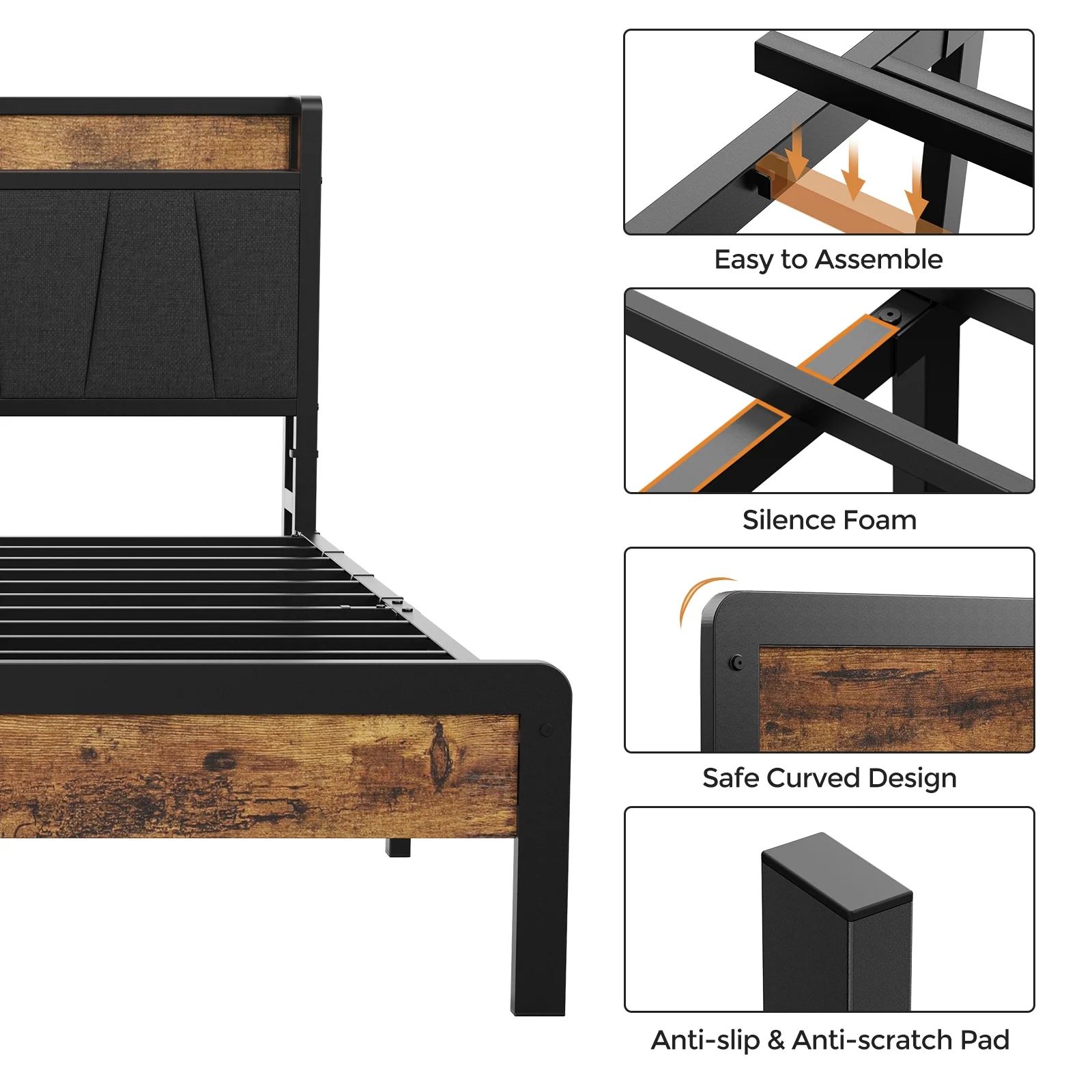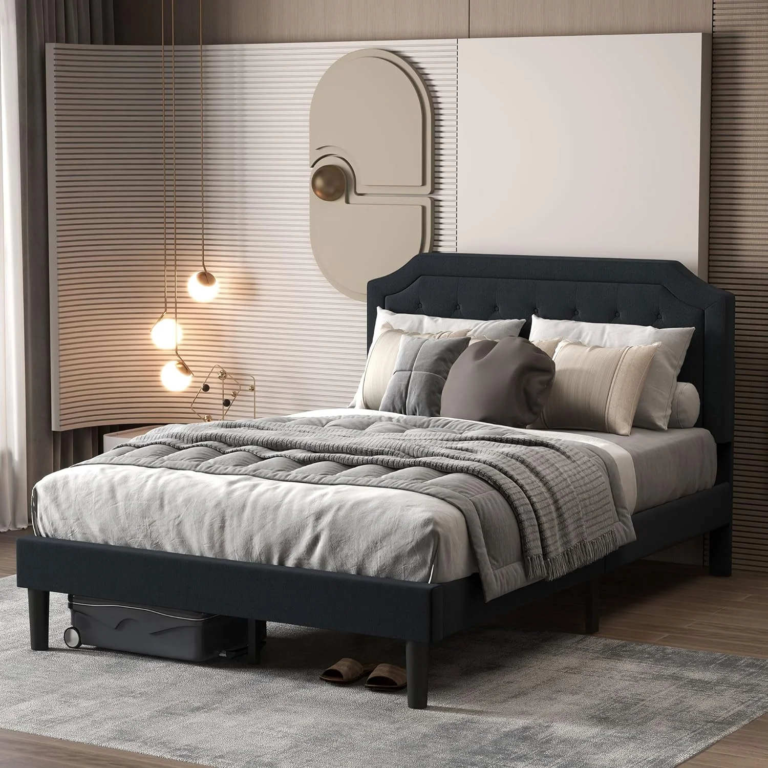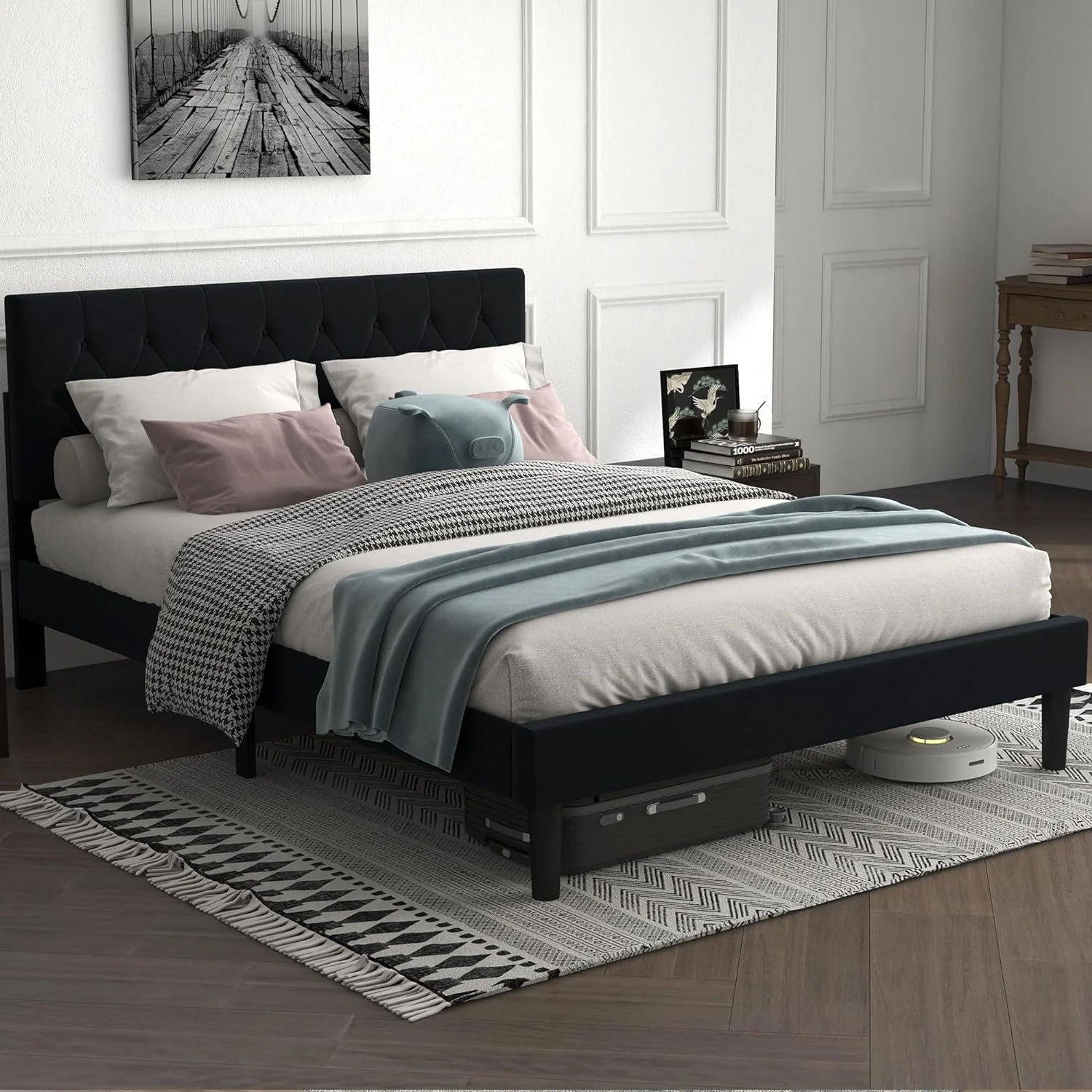 Docooler Modern Wooden Platform Bed with Headboard, Queen Stylish and Sturdy Furniture for a Cozy Bedroom