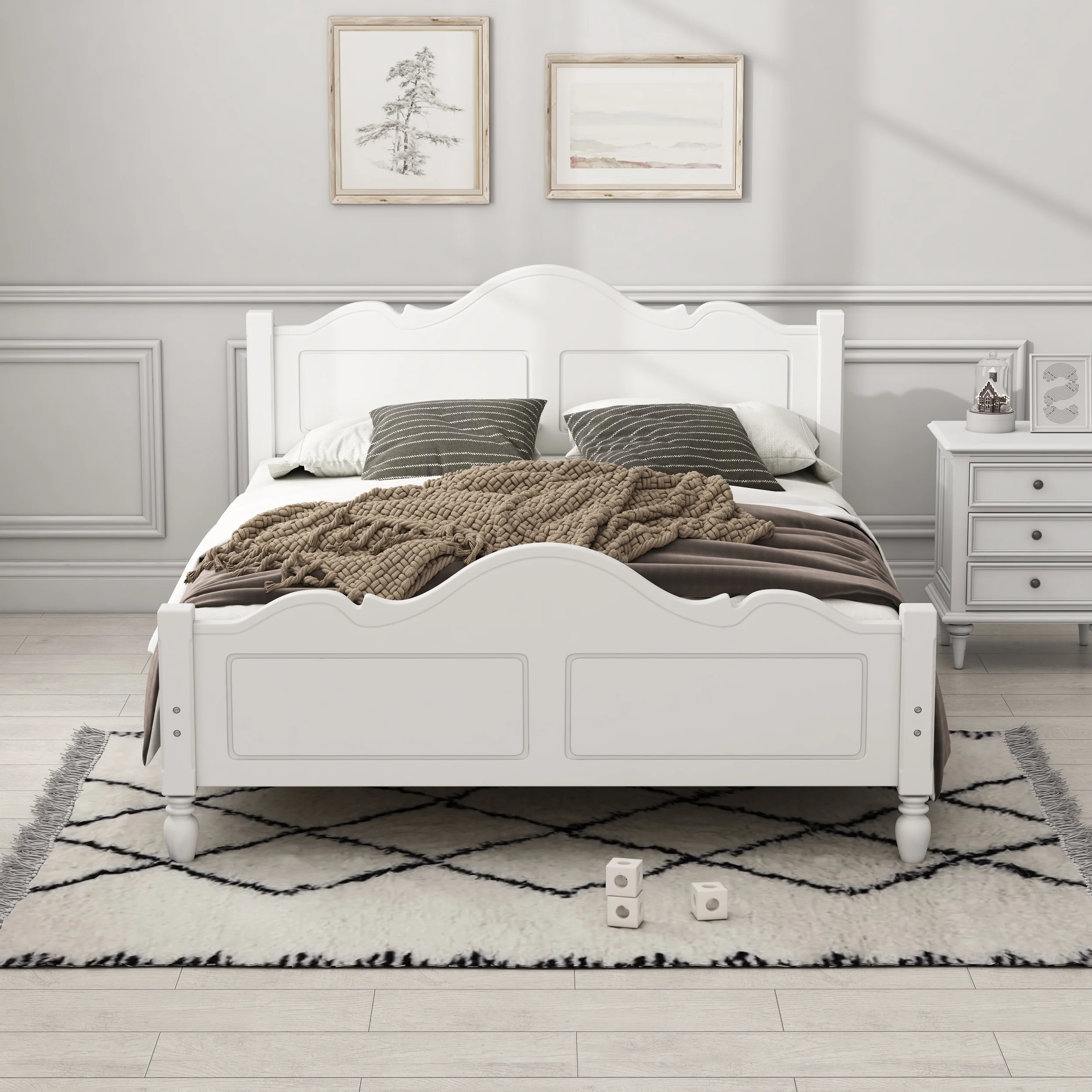 HomeRoots 35.4 x 63 x 82.3 in. Moma Wood Platform Bed with Two Nightstands, White - Queen Size