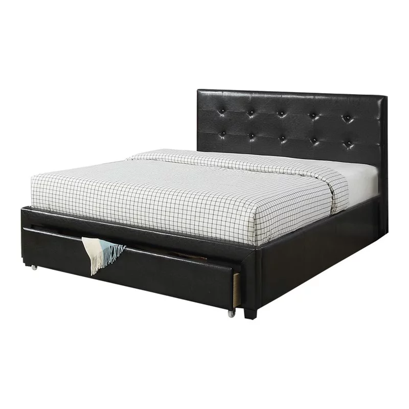 Bedroom Furniture Black Storage Under Bed Queen Size bed Faux Leather upholstered
