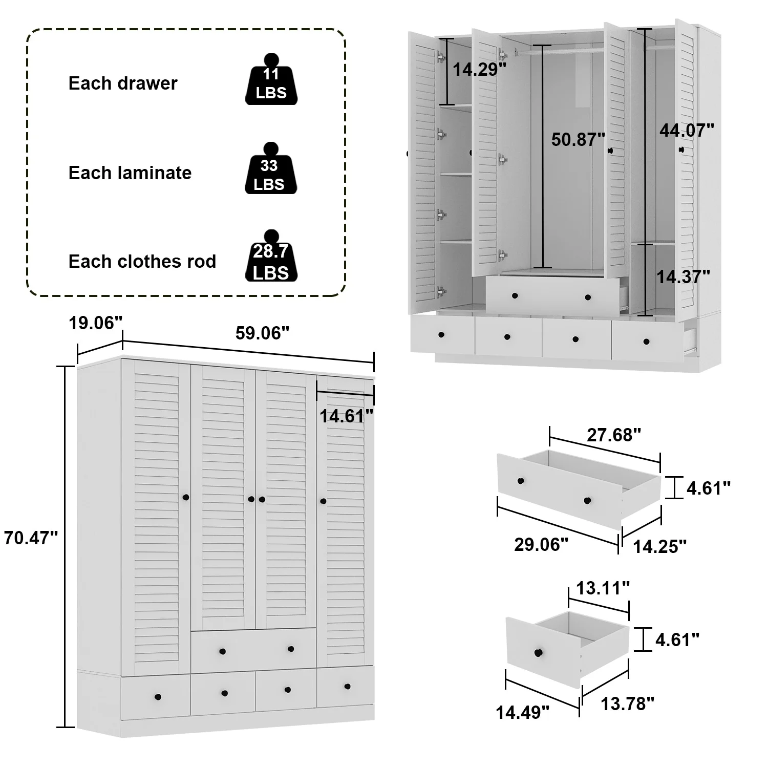 Bedroom Armoire Closet Armoire Wardrobe Closet Clothing Rod Drawer White