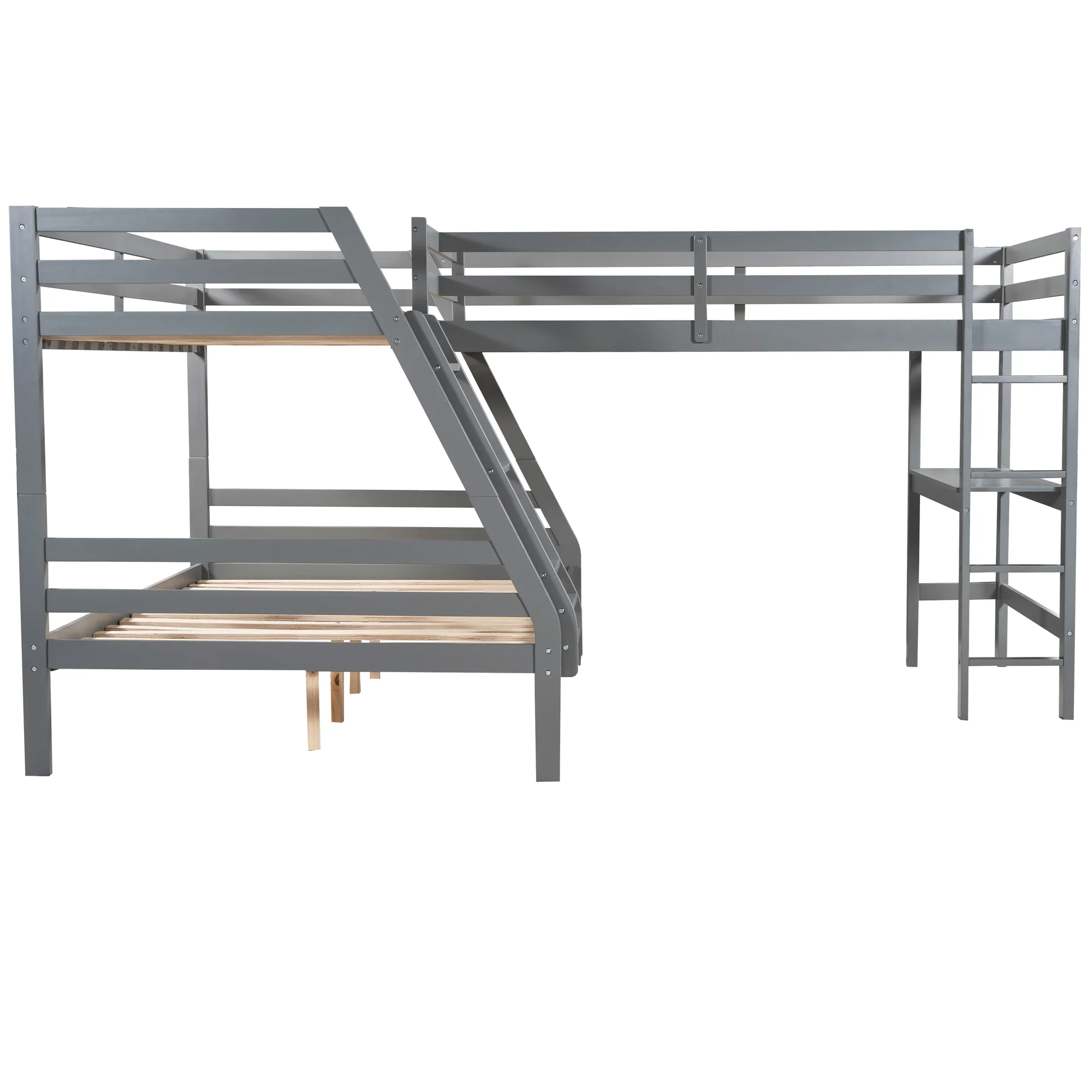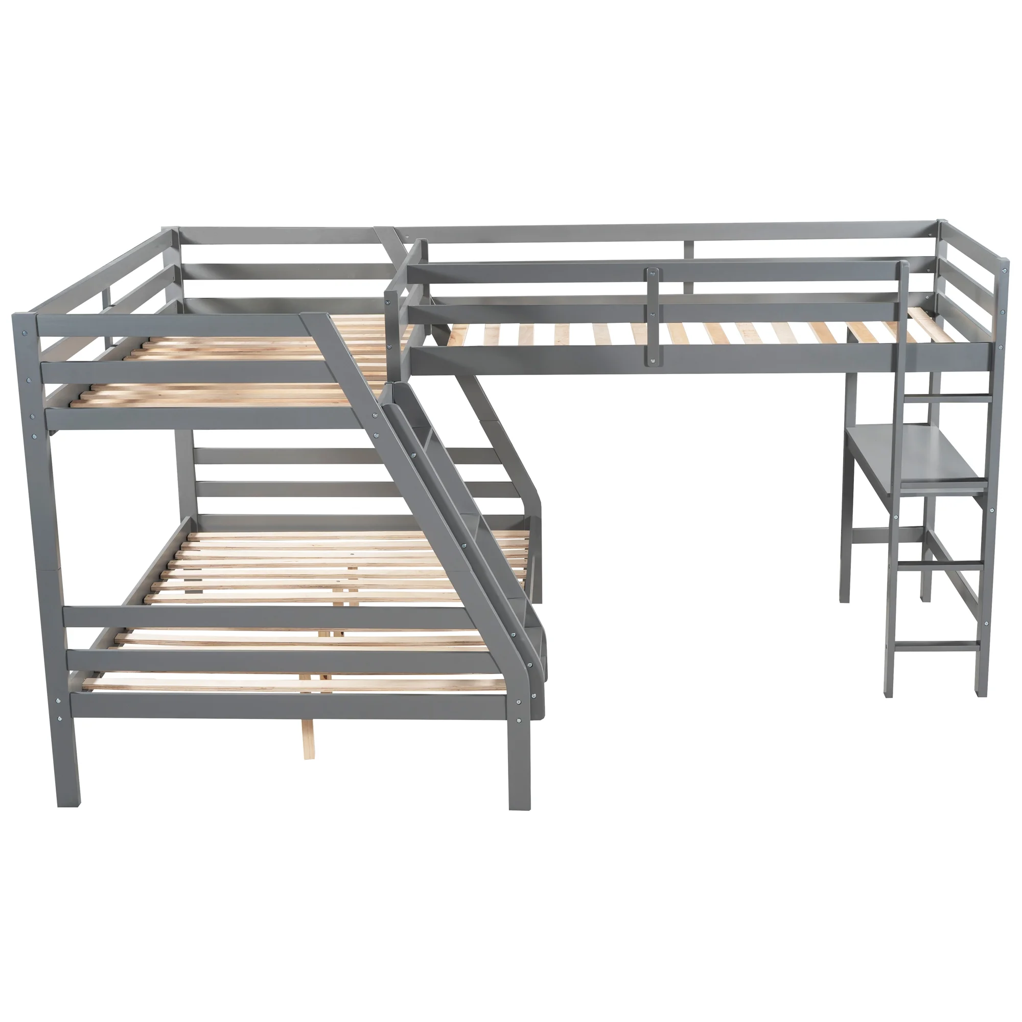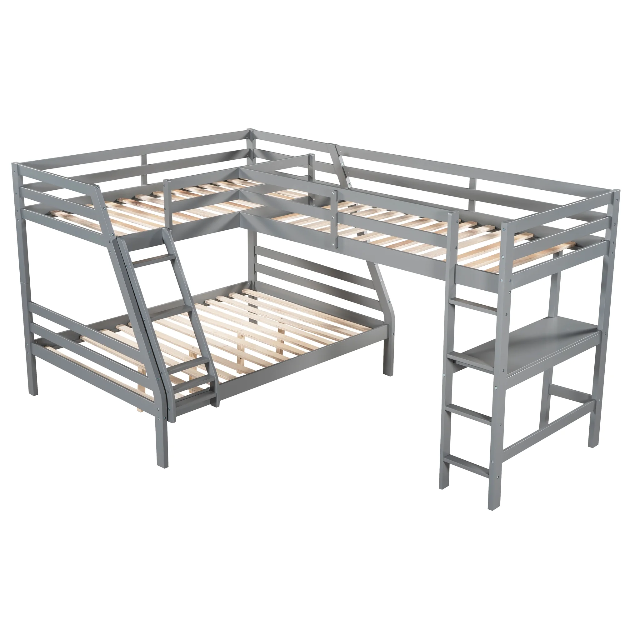LANTRO JS L Shaped Twin over Full Bunk Bed and Twin Size Loft Bed with Built in Desk,Gray